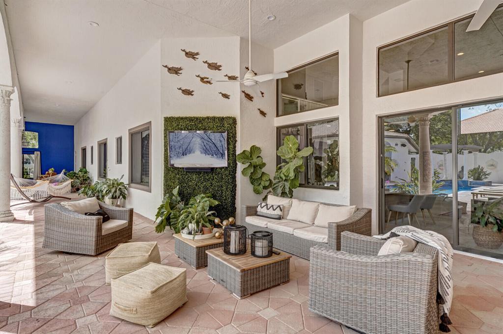 Resort living at its finest, this one-story 6 bedroom 6.5 bath home located on a corner Lot in the gated community of Cypress Head, sits on almost an acre of land including green space and grand interior courtyard with newly surfaced pool and spa, double wide porte-cochere and 2 Garages with room for 4 cars. The property offers over 10,000 square feet of total living space with multiple outdoor entertaining areas and a split bedroom floor plan with additional family room. Perfect work from home situation, 2 home offices and bonus room intended for home gym. Expansive kitchen with updated appliances. Open floor plan and newly updated built-in bar and TV wall unit accentuate the 14 foot ceilings and 8 foot doors. All bedrooms are on suite baths, 3 of which have been fully renovated.