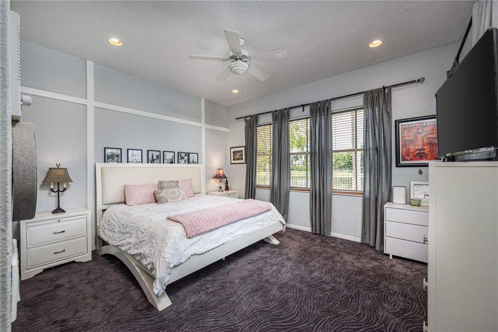 This house has the best location! Located on a cul-de-sac, you have a quiet neighborhood surrounded by a beautiful lake. This pie shaped lot gives you the space to have your dream backyard with complete privacy. Enter the house to the 4th bedroom/office with glass french doors. Keep going into the large great room with a massive updated kitchen featuring floor to ceiling custom cabinetry, stainless steel appliances including a built in double oven, and a gigantic island. Enjoy the beautiful wood floors throughout the living areas and beautiful newer carpet in the master and one of the guest rooms. This house has everything and is ready for you!