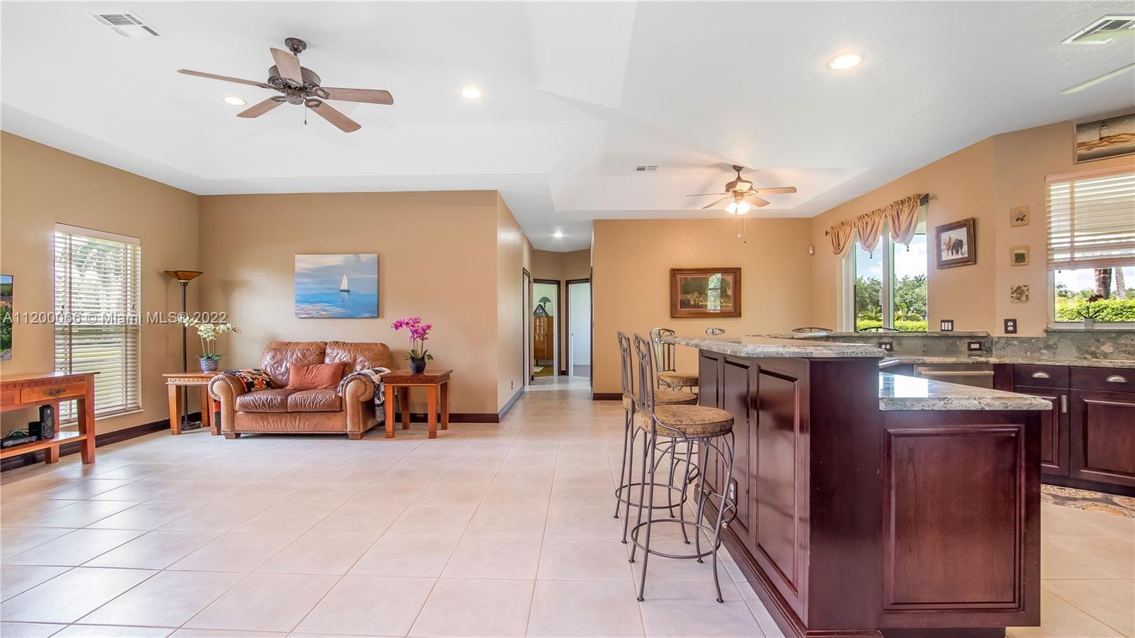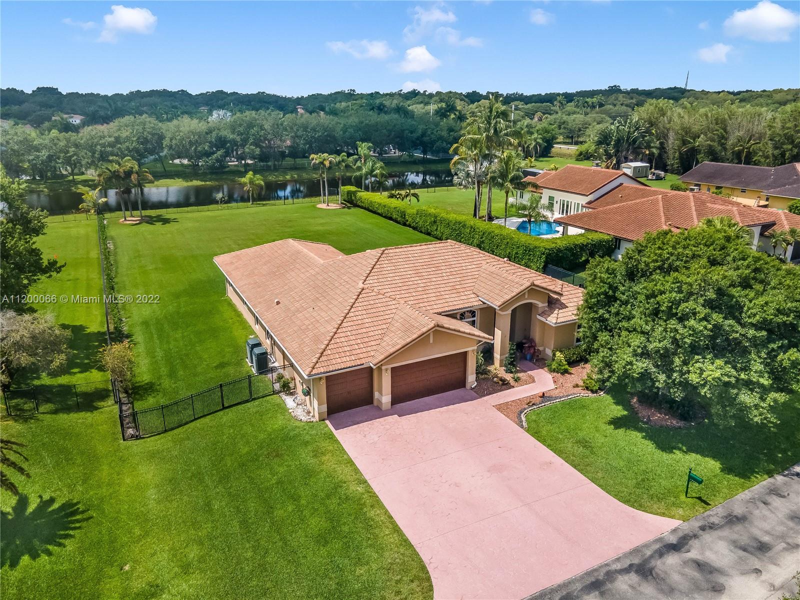 CALL THIS BEAUTIFUL home in Davie on 1.02 acres in desirable Kapok Estates HOME! Undeniable curb appeal when you pull up to this well maintained home. A fabulous floor plan allows flow from room to room making this PERFECT for entertaining with both living & family rooms. Split floor plan features 4 bedrooms & 3 baths. Large master with tray ceiling, built in shelving, 2 closets, hardwood floors & a beautiful master bath with his & hers vanities, soaking tub & separate shower! The granite kitchen is STUNNING with SS appliances, TONS of cabinetry, a huge snack bar & multiple pantries for even more storage! Kids & pets will love the fully fenced waterfront lot with room for a pool! IMPACT WINDOWS, NEWER ROOF & A/C's in an A+ SCHOOL SYSTEM located in a great neighborhood with just 38 homes!