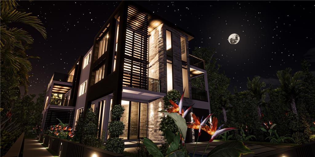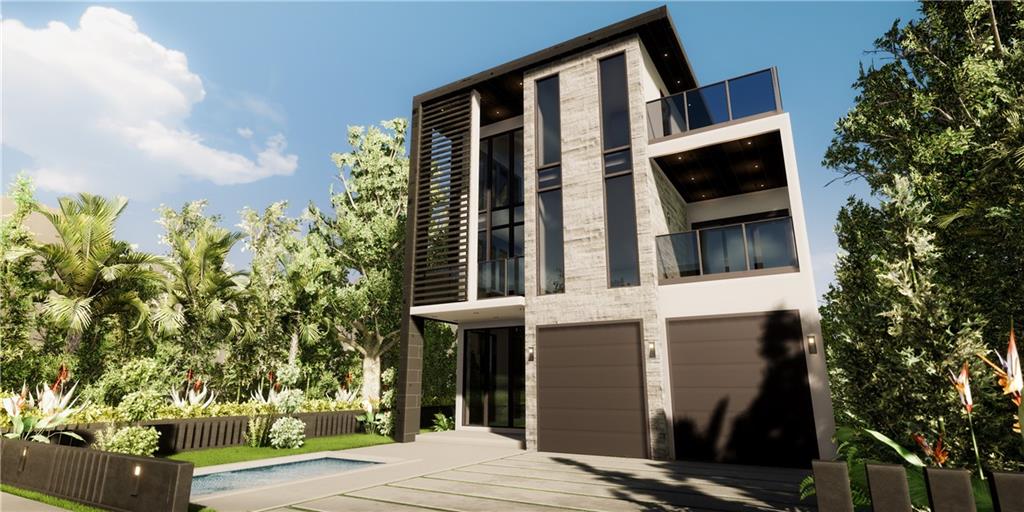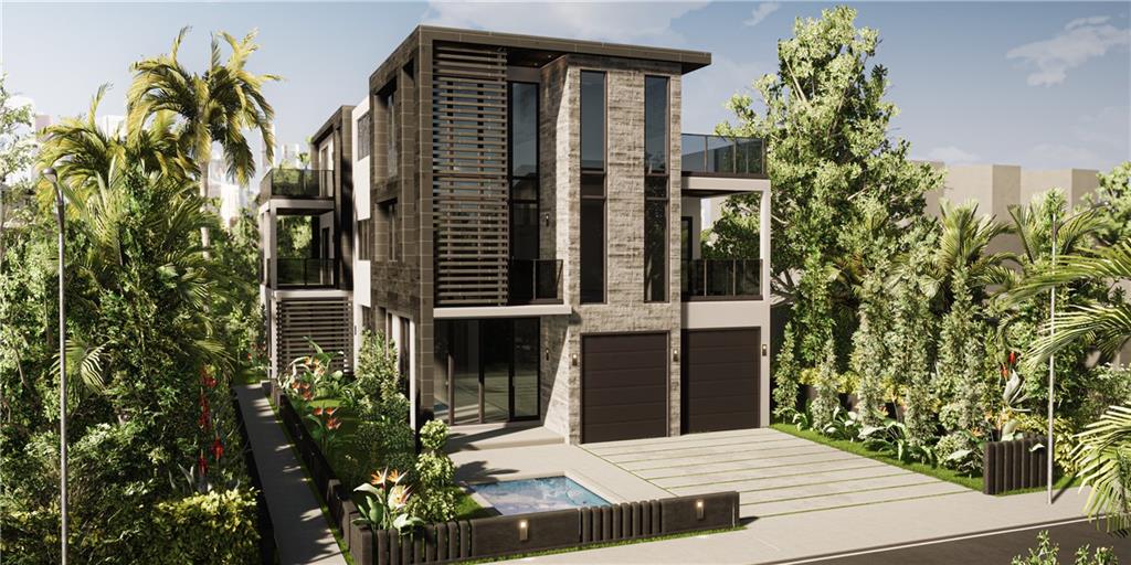 Steps to Las Olas in Colee Hammock, this is a newly constructed modern home with an elevator and pool. Features include high ceilings, walls of glass, multiple terraces, modern high-end kitchen, smart home system, luxury baths, and generously sized rooms. The main living floor opens to a second outdoor living room terrace with treetop views of the surrounding neighborhood. The walled gardens feature an in-ground pool. Off street parking for two cars adjoins a large two car attached garage.