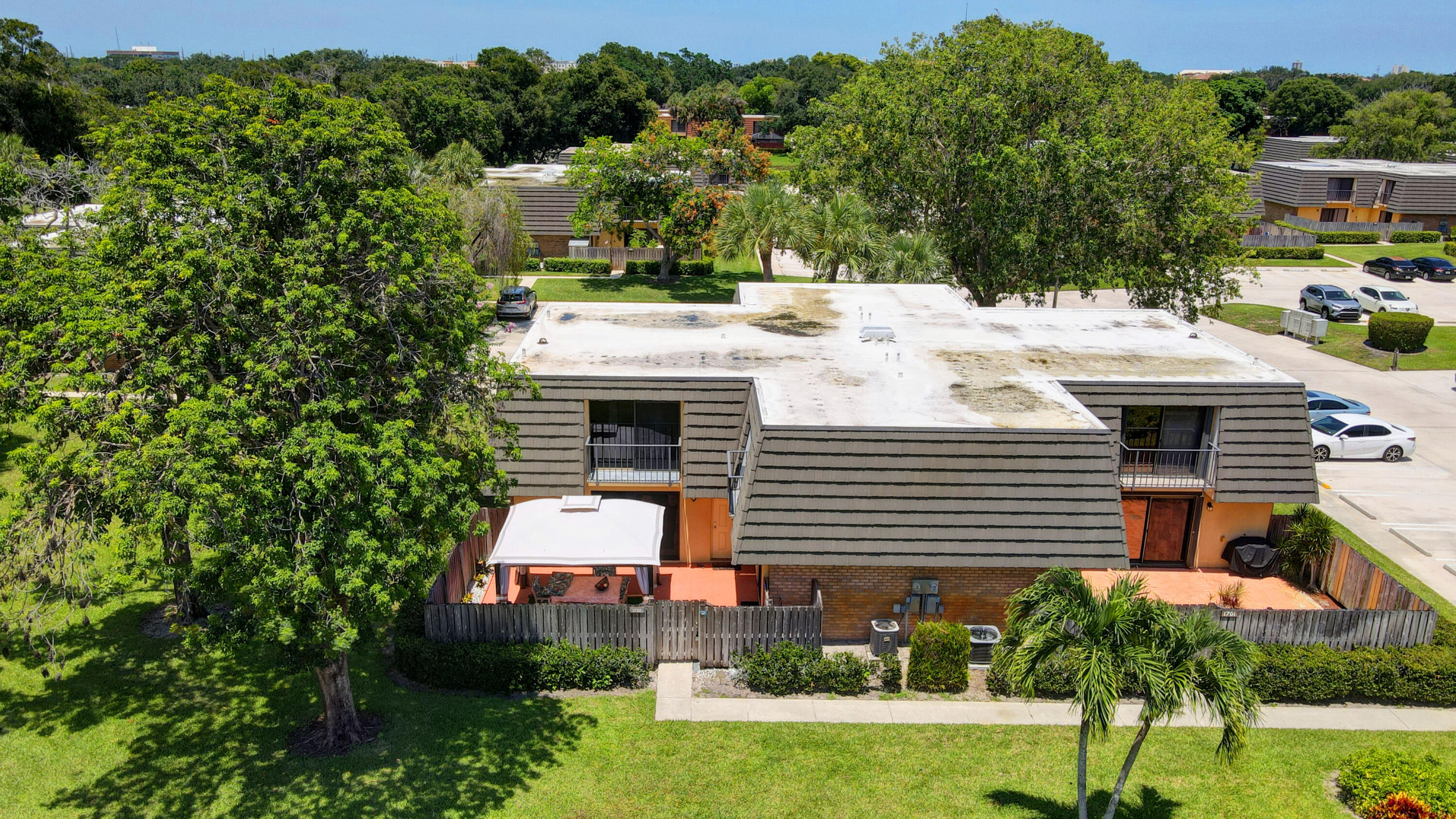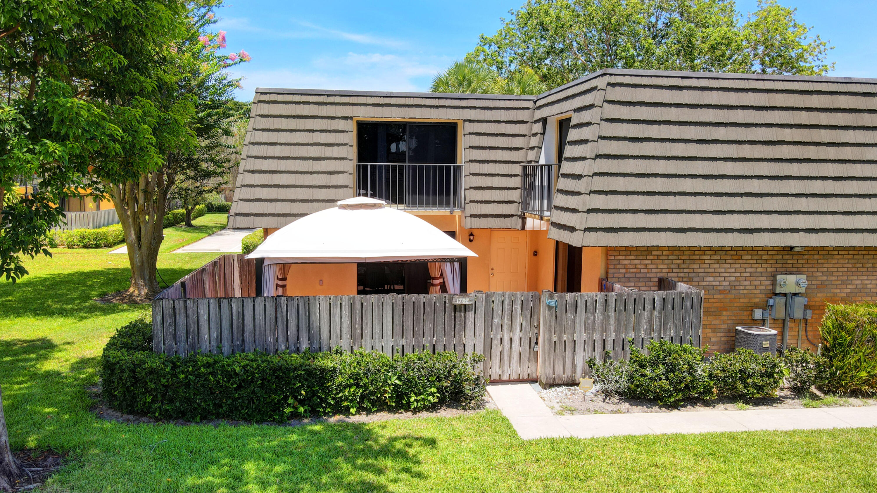 A fenced in private courtyard overlooked by 2 bedroom balconies awaits the savvy buyer of this contemporary townhouse located off residential Village Blvd. Surrounded by green space, the property is close to shopping, ball parks, the VA Med. Ctr, Singer Island and trendy north WPB. The master suite has an upgraded vanity and an extra large, glass walk in shower, plus a walk in closet. There's also a full bath for the 2nd bdrm. Courtyard canopy conveys if wanted.