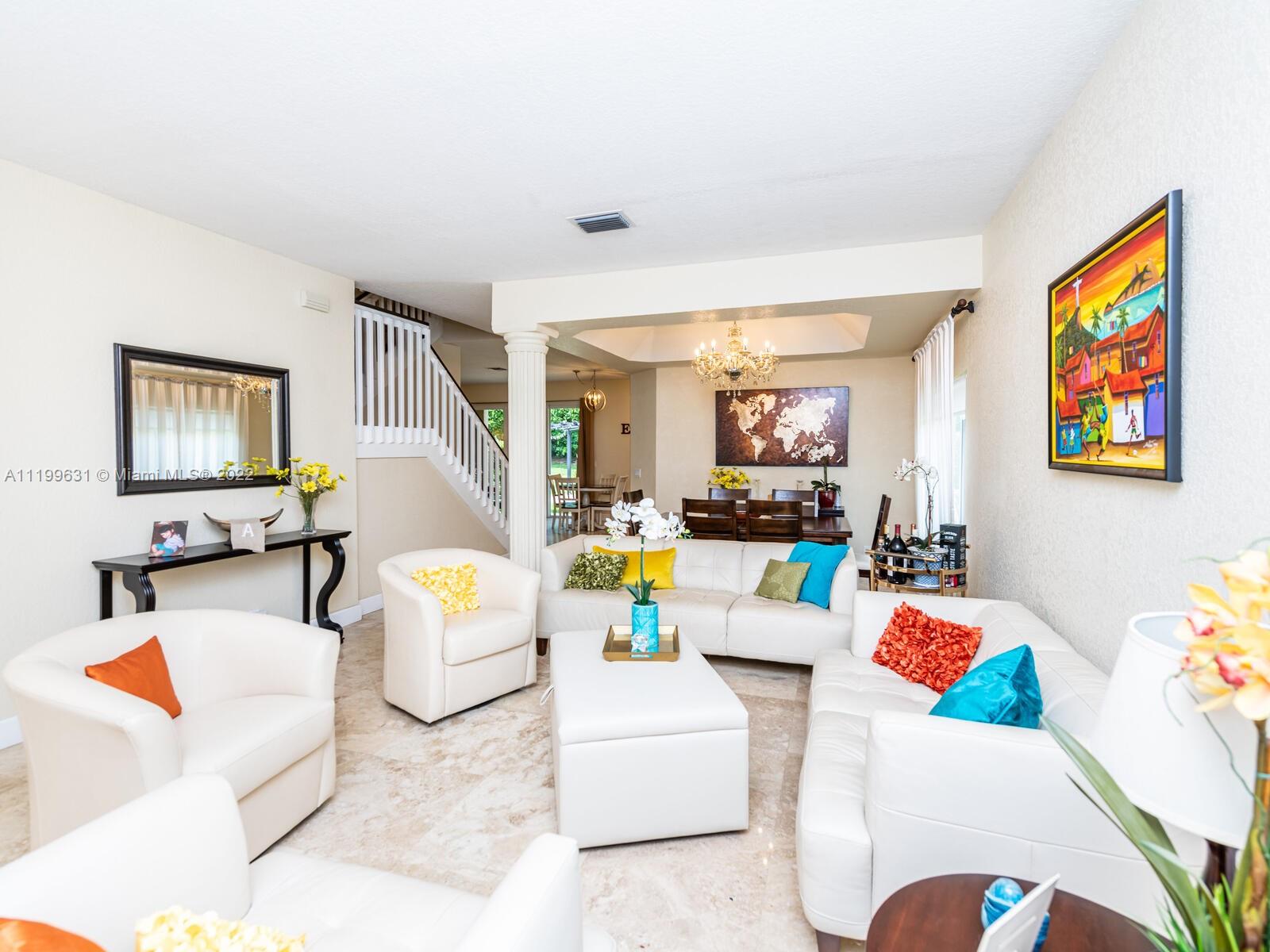 Spacious 2 story home in the desirable 24 hr gated community of Emerald Estates. This 4 bedroom/2.5 bathrooms features beautiful marble flooring downstairs, hurricane impact windows and doors throughout the house, newer air conditioner & hot water heater, kitchen has granite counter tiles w/stainless steel appliances. 2 car garage. Convenient to shopping, restaurants, and major highways. HOA fees include maintenance of lawn, tree trimming, fertilization, community pool, fitness center, kid's play area, basic cable & wifi. A+ Rated Schools.