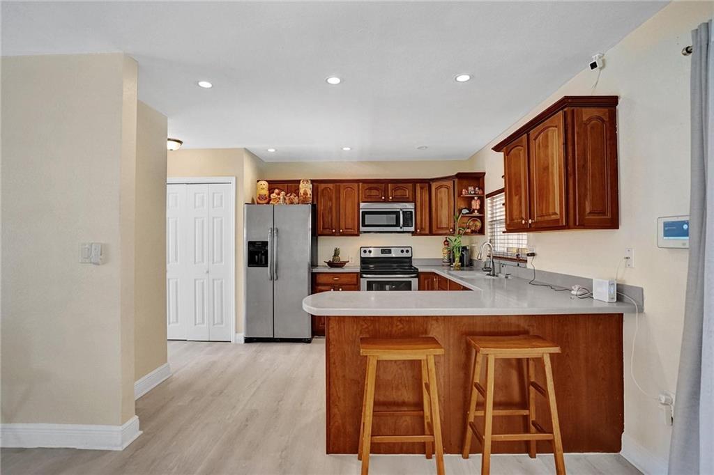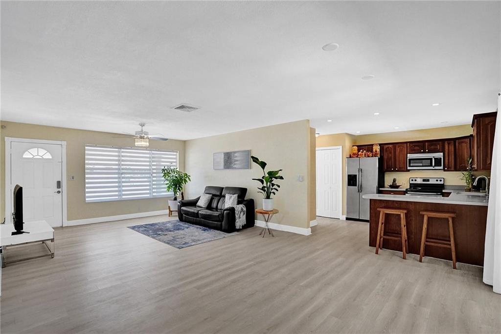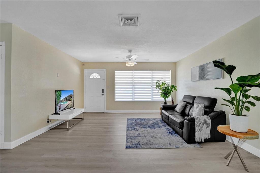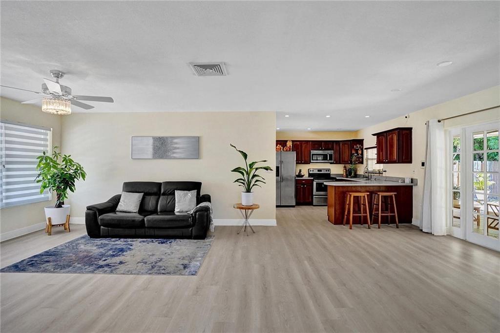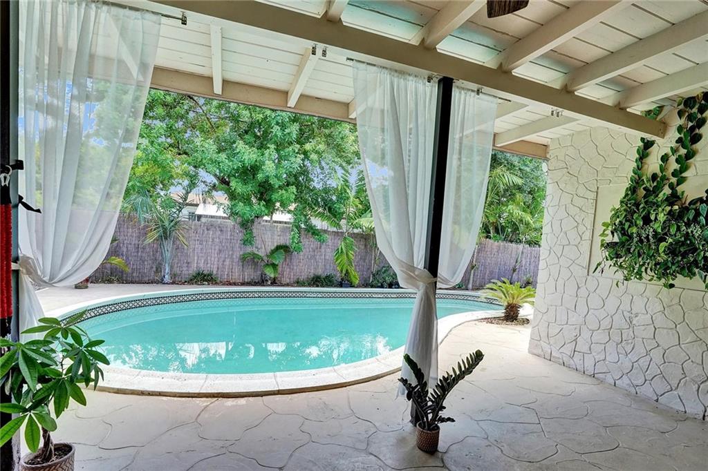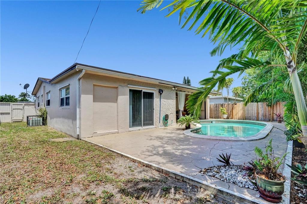 Welcome Home! Brand New Shingle Roof! Brand New A/C 06/2022. No HOA! This beautiful 3 bedroom plus den awaits your family. Nice open floor plan. Split bedrooms. New Laminate throughout home. Upgraded kitchen with stainless appliances. Both bathrooms have been updated. This home also features an extra room which can be 4th bedroom (no closet), office, workout room, play room ect. Master bedroom overlooks very inviting pool area. Cabana bathroom leading to pool. Go out the french doors and relax on your private covered patio. Hurricane Shutters, Fenced yard. Freshly painted. Newer hot water heater. Neat and clean. Don't miss this one. Call today! Showings start Wednesday, June 22.