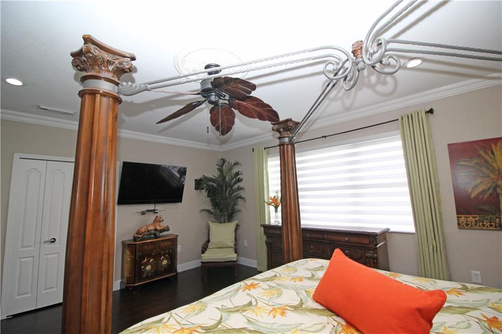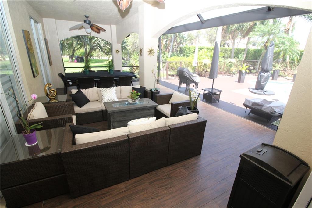 MAGNIFICENT 2 STORY 4 BEDROOM + DEN (COULD BE 5 BED) 3.5 BATHROOMS. EXTRA LARGE LOT IN DESiRABLE MONARCH LAKE. This exquisite home offers 2 master bedrms, one downstairs with private bath and entrance, Zebra blinds, Alarm system, tropical landscaped lot full of palm, coconut, mango and avocado trees, recently remodeled throughout, double oven and gas stove in beautiful upgraded chef's kitchen, heated pool and jacuzzi, screened covered patio perfect for entertaining. SAVE up to 50% on your utility bill with 31 solar panels throughout and tankless hot water heater.