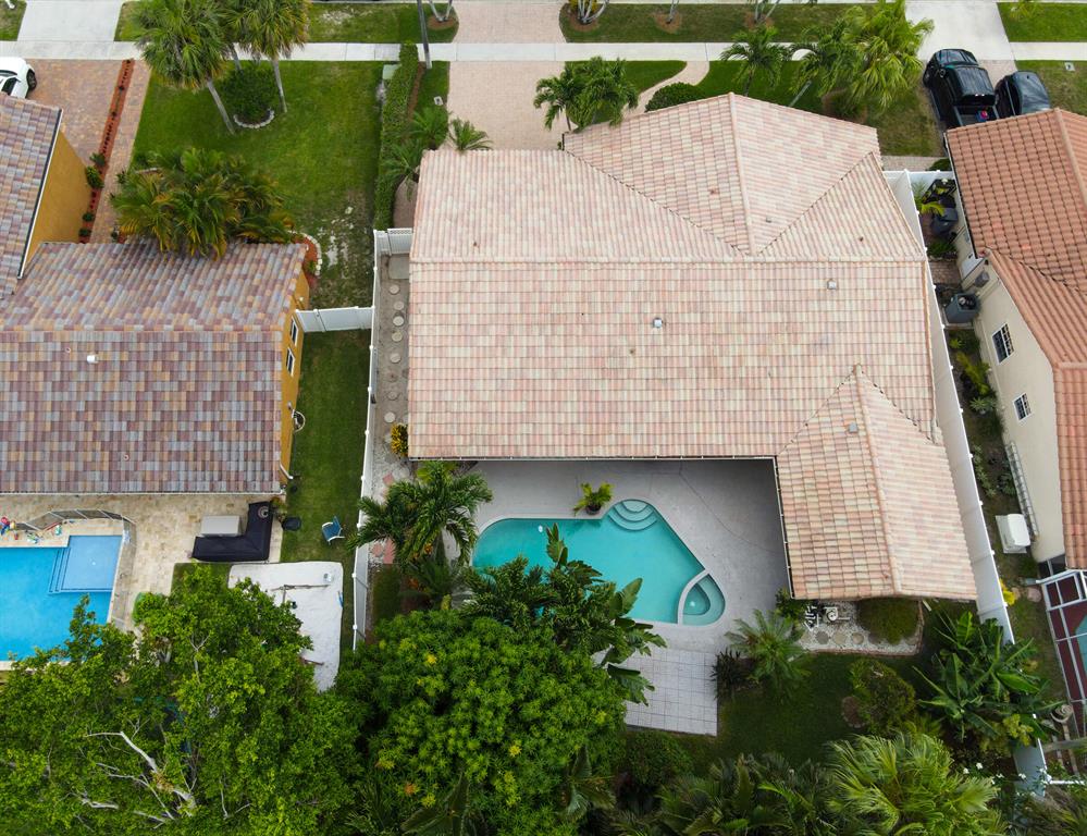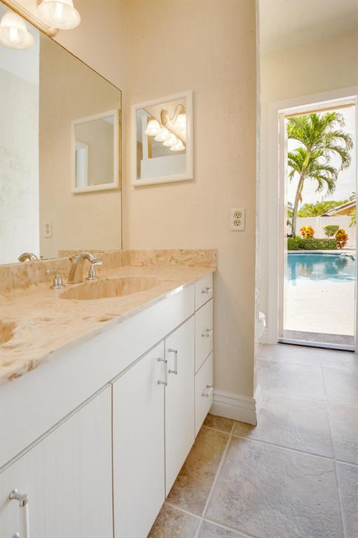 Spacious, spectacular 4 bedroom 2-1/2 bath home in Escondido within walking distance of house of worship. Stylish ceramic tile throughout, freshly painted interior, vaulted ceilings, and beautiful architectural details. Gourmet kitchen includes custom, white maple cabinets, gas stove, and newer appliances. Huge family room with custom white maple bar and French doors leading out to the large pool and lush landscaping. Plenty of room to entertain on the covered patio and take in the garden view. Large primary bedroom with French doors leading out to the outdoor oasis. Three additional, large bedrooms complete this perfect family home. Newer A/C and water heater. Escondido offers the lowest HOA fees in Boca Raton and includes a manned gate. Close to shopping, beaches, restaurants,etc
