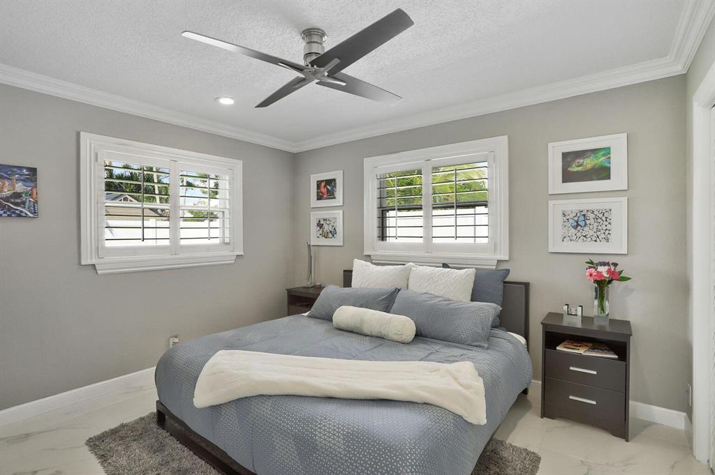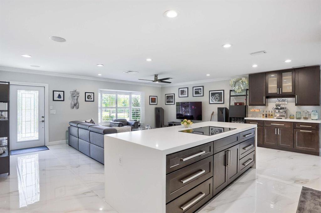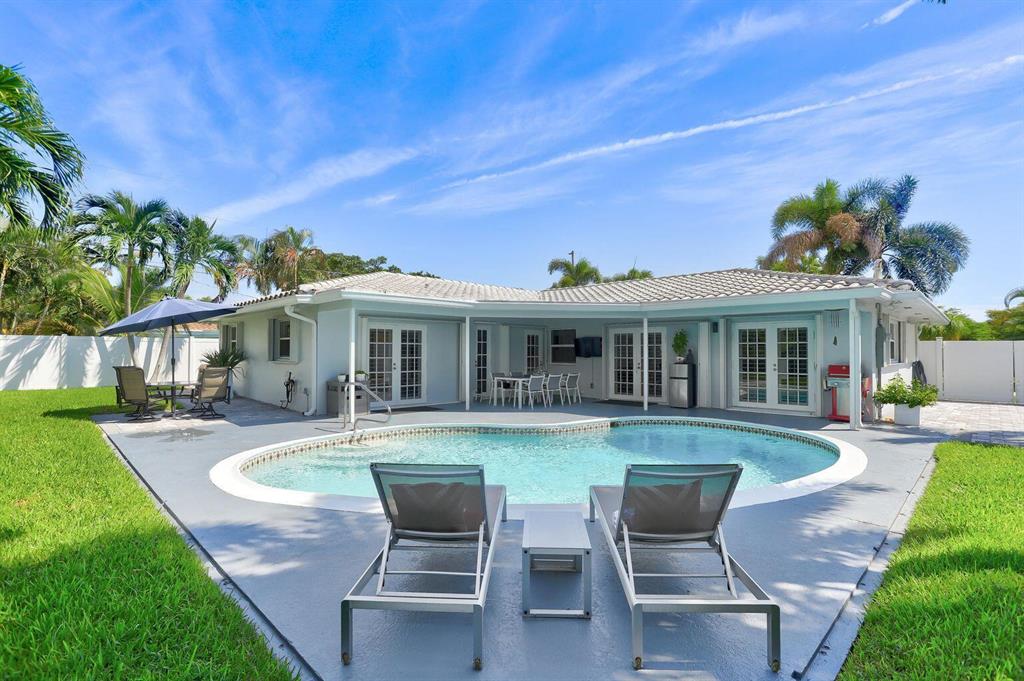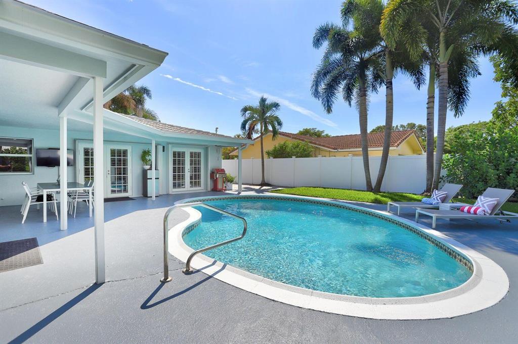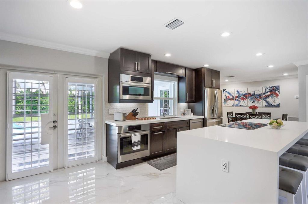 Live your ideal Florida lifestyle in this stunning pool home conveniently located near downtown Mizner Park & world-famous Boca Raton beaches. Fully renovated, Mediterranean-style home features resort-style outdoor space w/ heated pool & sundeck. Expansive outdoor space w/ covered terrace offers an idyllic spot for al fresco seating, dining & entertaining. Spectacular open kitchen features custom Shaker-style cabinetry, quartz counters, stainless steel appliances & seated center bar. Luxurious owner's suite features closet w/ custom built-ins, spa-like en suite bath & direct access to the pool deck.