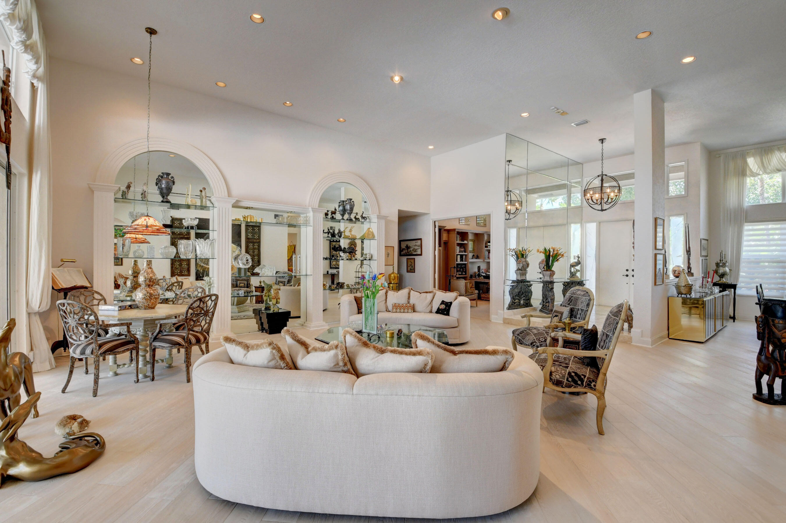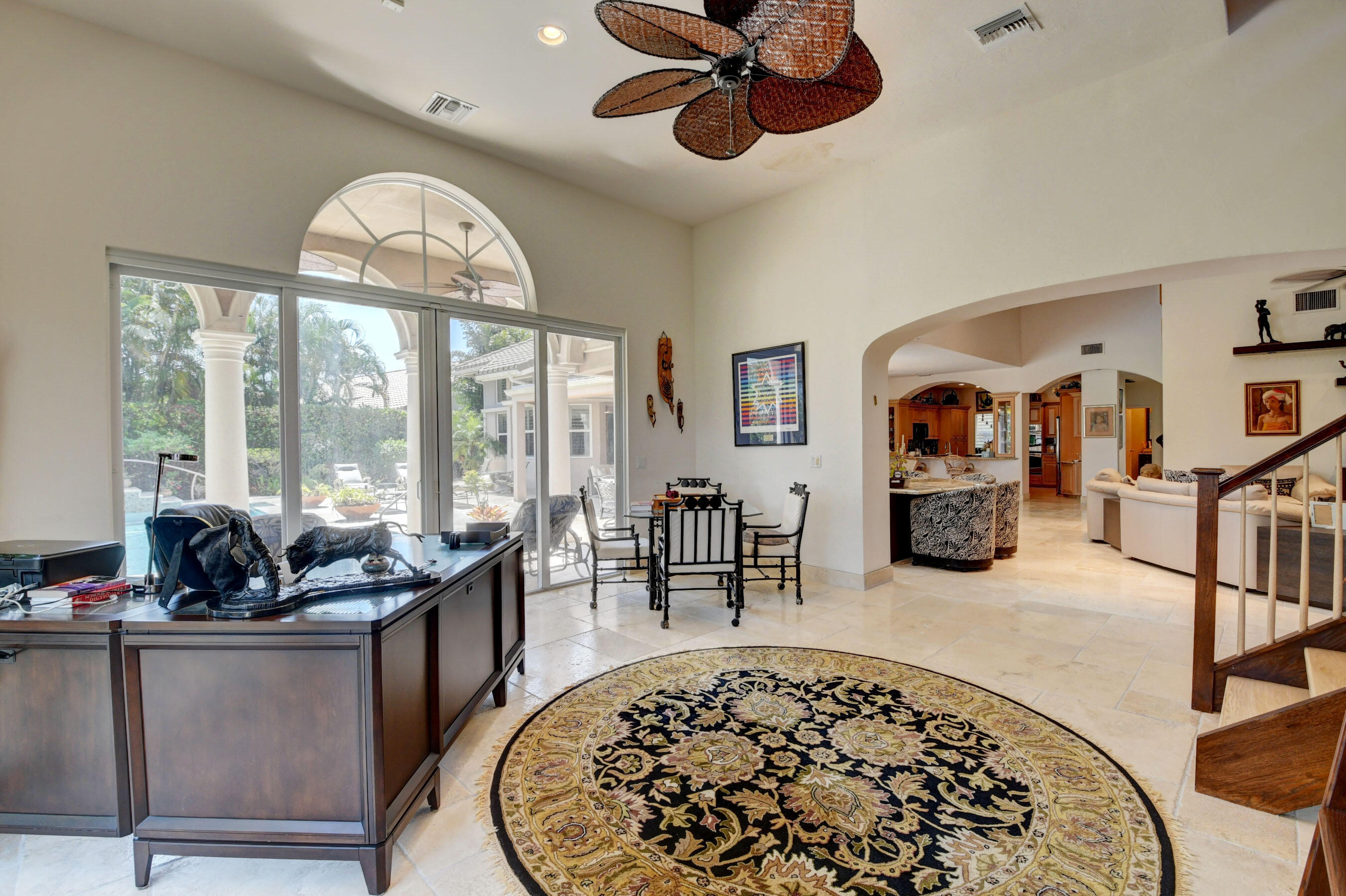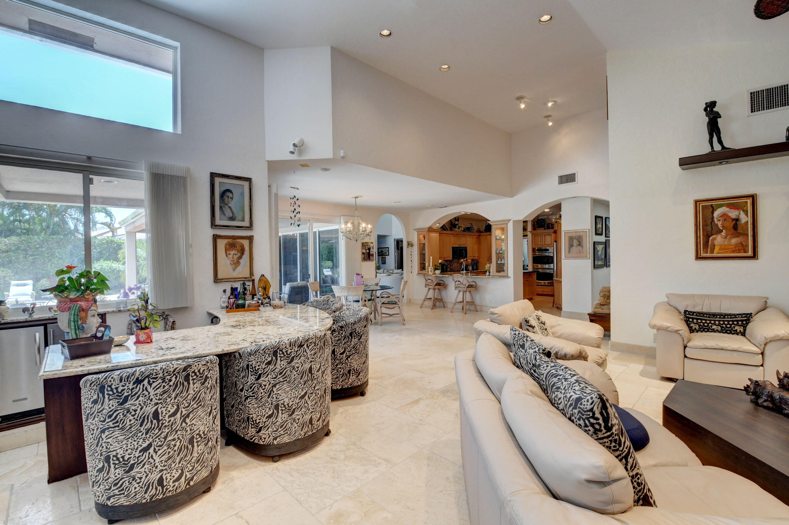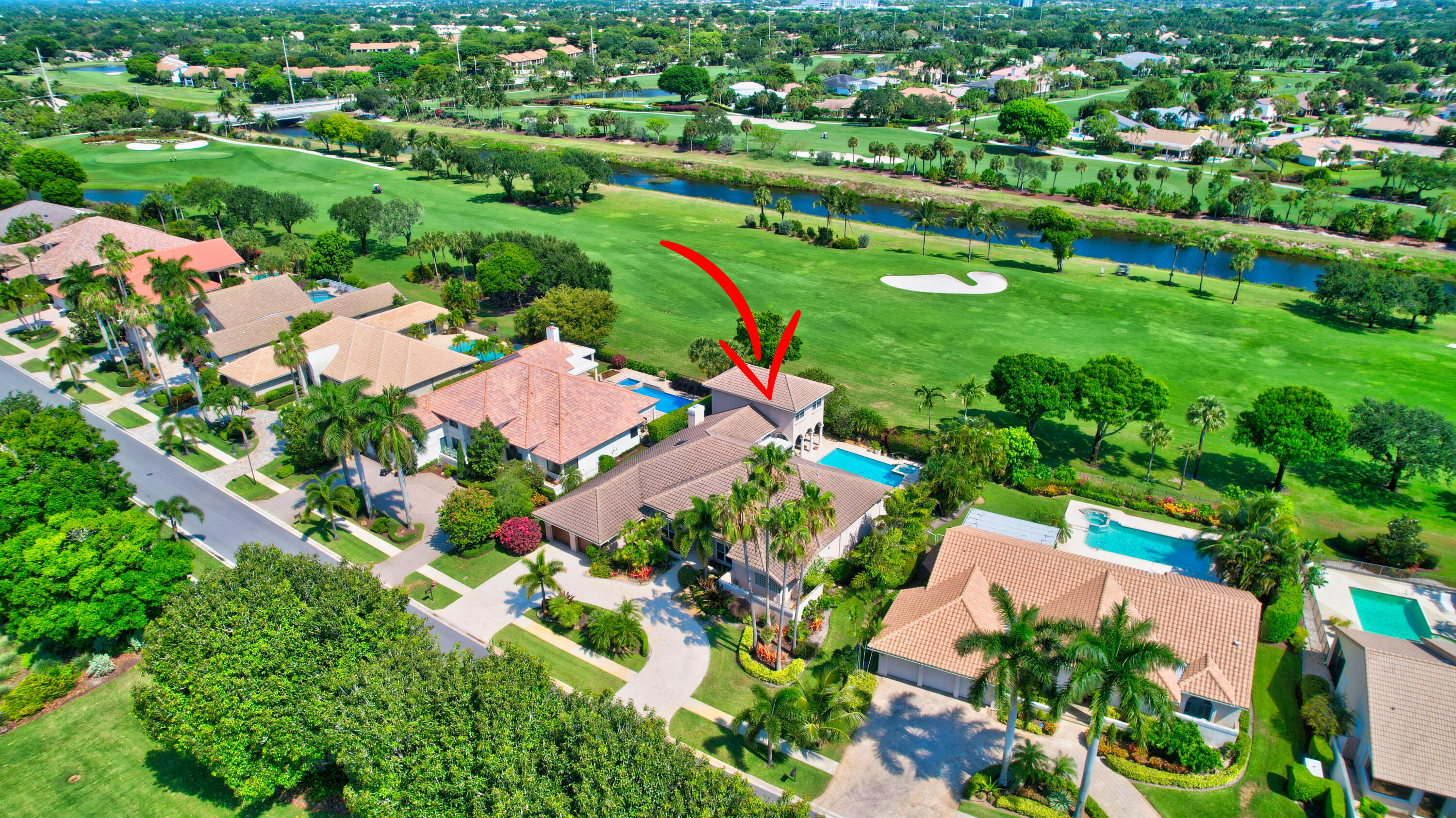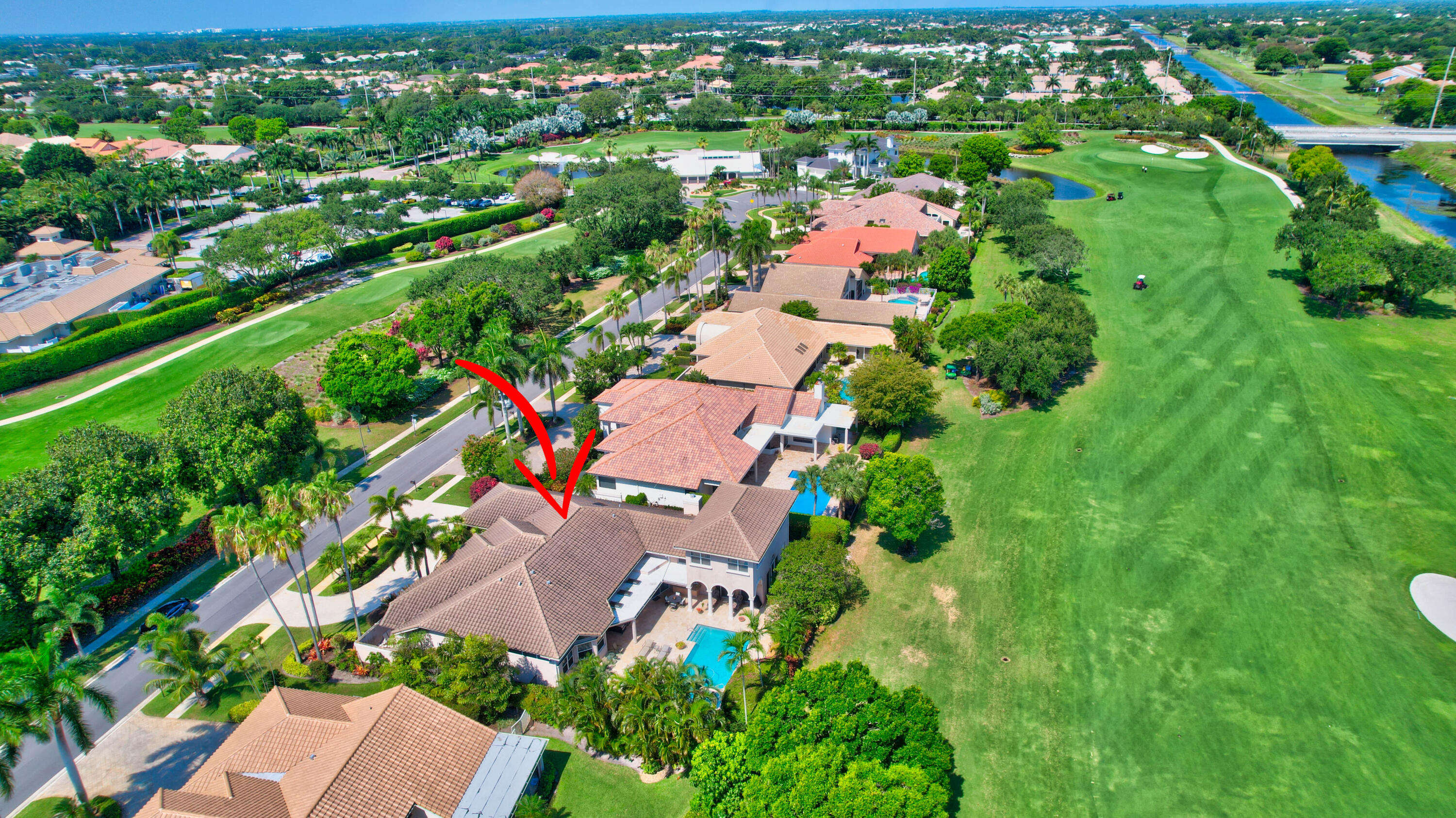 Amazing! Over 5000 square feet with 6 bedrooms overlooking the serene 2nd hole in the back and 1st hole in the front! Main floor has 4 bedrooms (one used as an office)six bathrooms and two family rooms. Another two bedrooms & bathroom on second floor. NEW Impact windows & 14 foot high ceilings. Split bedrooms. Additional room off of laundry for exercise. Primary boasts two bathrooms and large custom closets. Stunning library. Perfect home for entertaining & easy living. Gorgeous huge backyard -NEW patio, and driveway, covered & open patio & grassy yard! Bocaire CC mandatory membership - 239 homes boasts resort style amenities, championship golf course, tennis, fitness, high end dining, small friendly community, A rated schools, close to beach, restaurants, shopping, houses of worship.