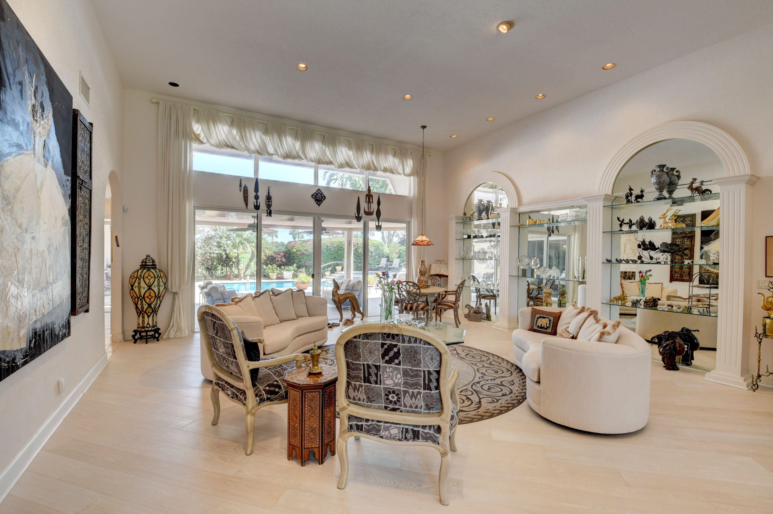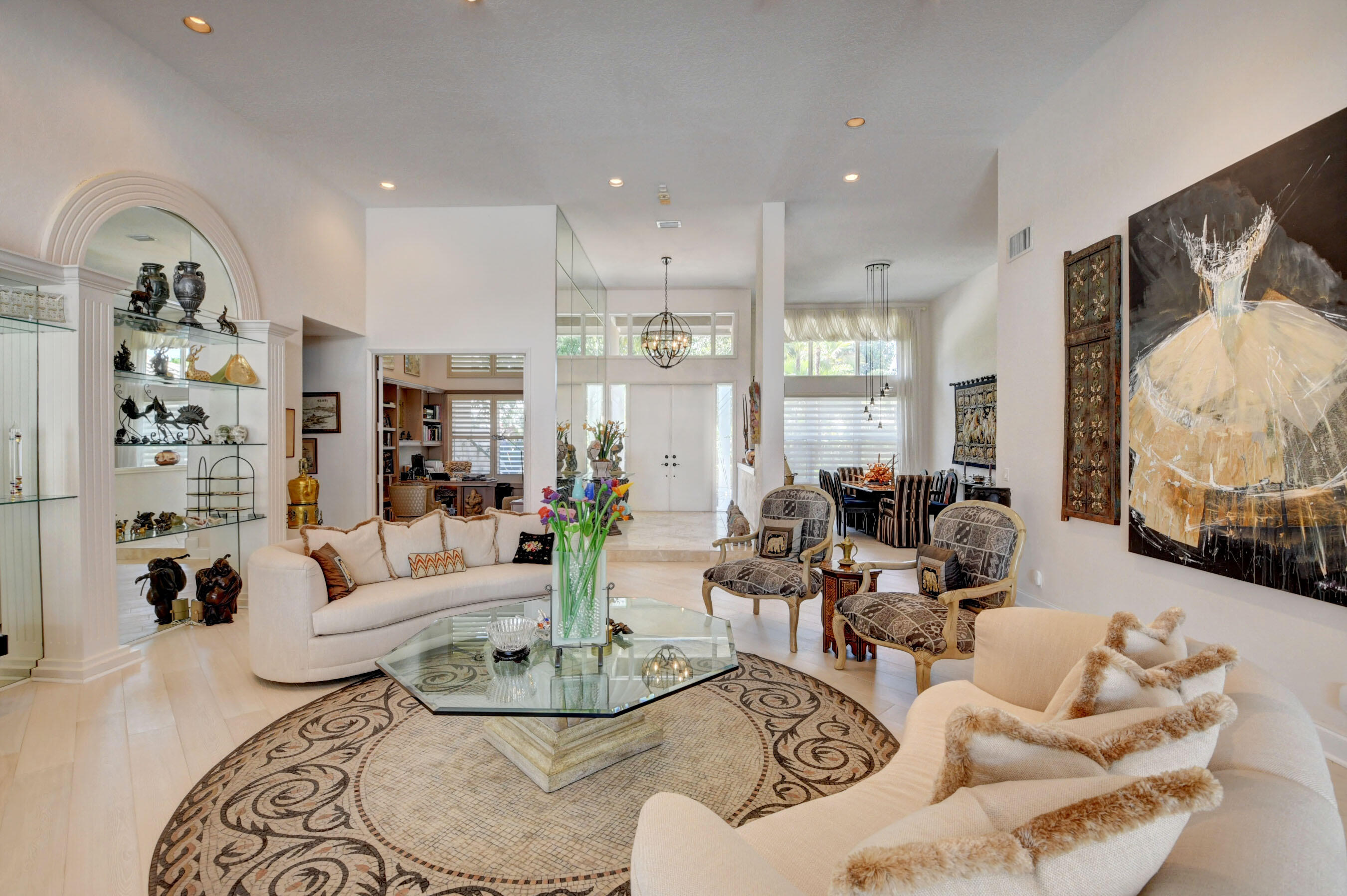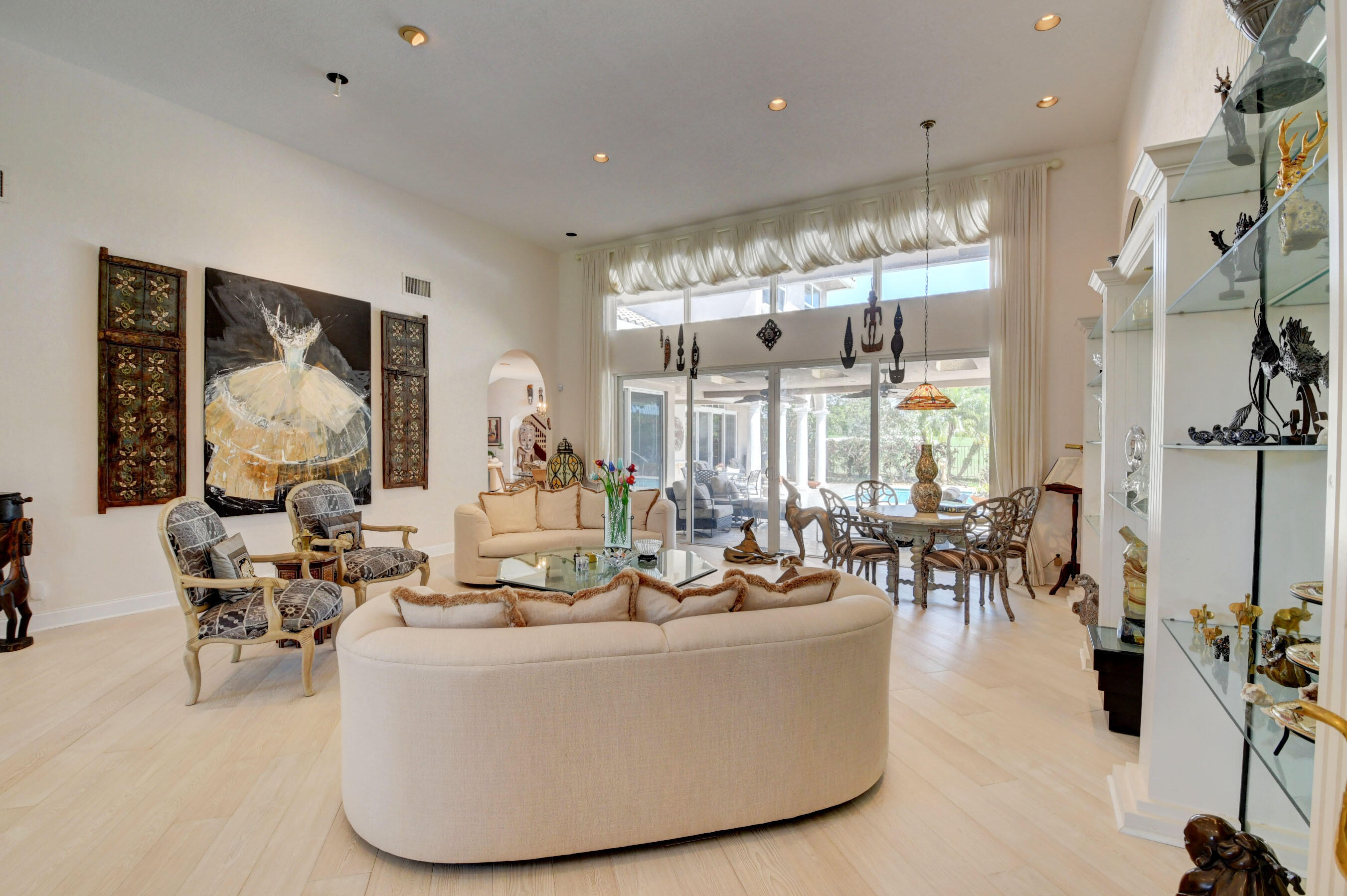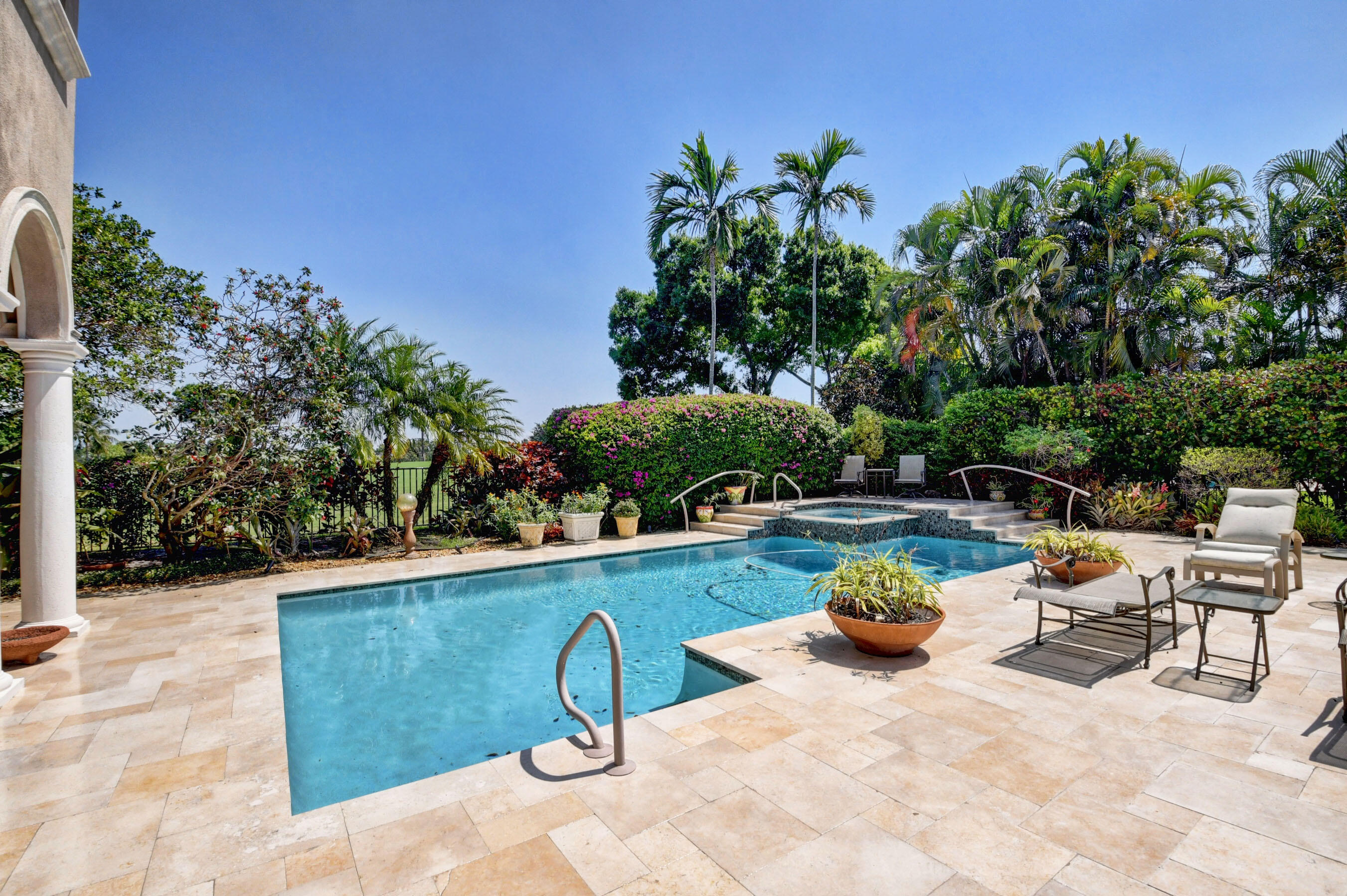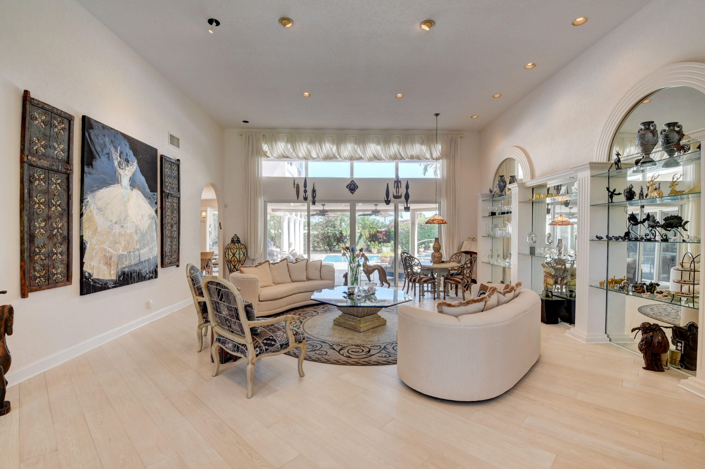 Amazing! Over 5000 square feet with 6 bedrooms overlooking the serene 2nd hole in the back and 1st hole in the front! Main floor has 4 bedrooms (one used as an office)six bathrooms and two family rooms. Another two bedrooms & bathroom on second floor. NEW Impact windows & 14 foot high ceilings. Split bedrooms. Additional room off of laundry for exercise. Primary boasts two bathrooms and large custom closets. Stunning library. Perfect home for entertaining & easy living. Gorgeous huge backyard -NEW patio, and driveway, covered & open patio & grassy yard! Bocaire CC mandatory membership - 239 homes boasts resort style amenities, championship golf course, tennis, fitness, high end dining, small friendly community, A rated schools, close to beach, restaurants, shopping, houses of worship.