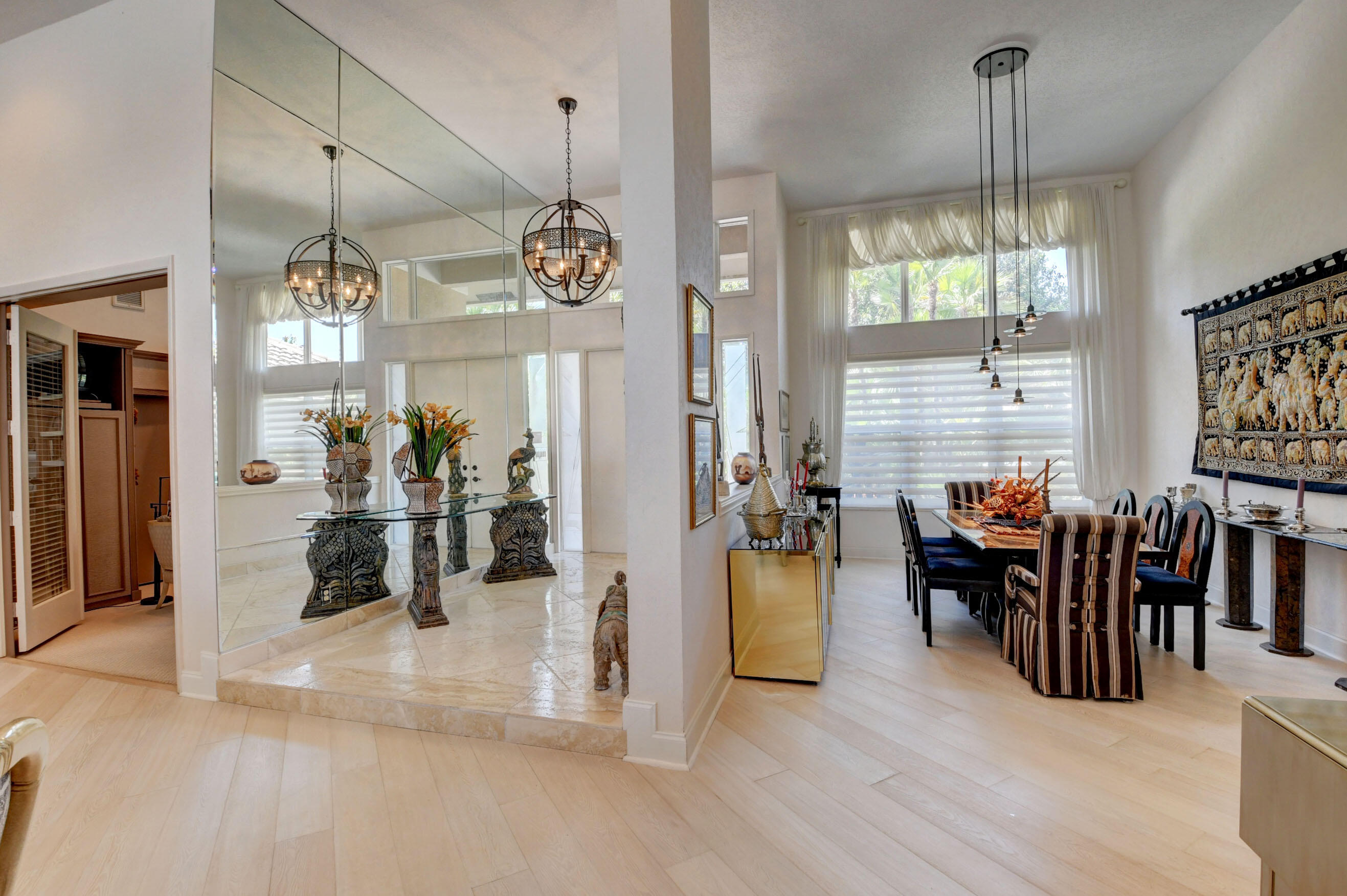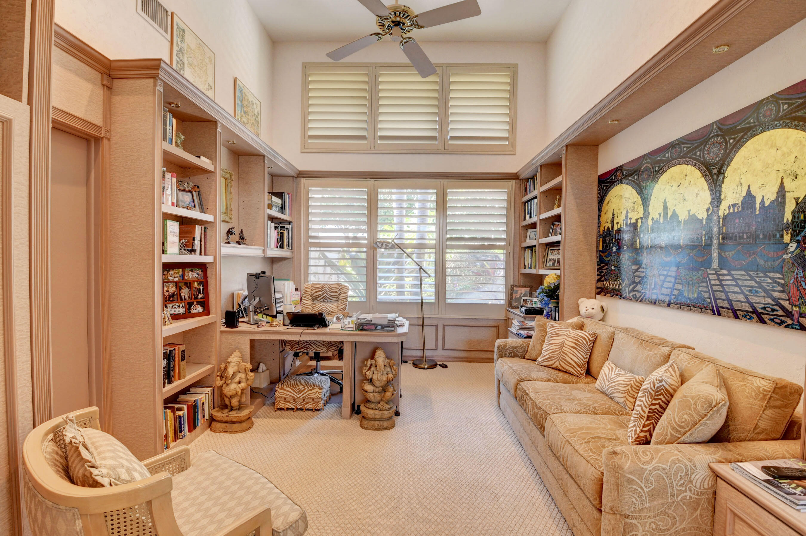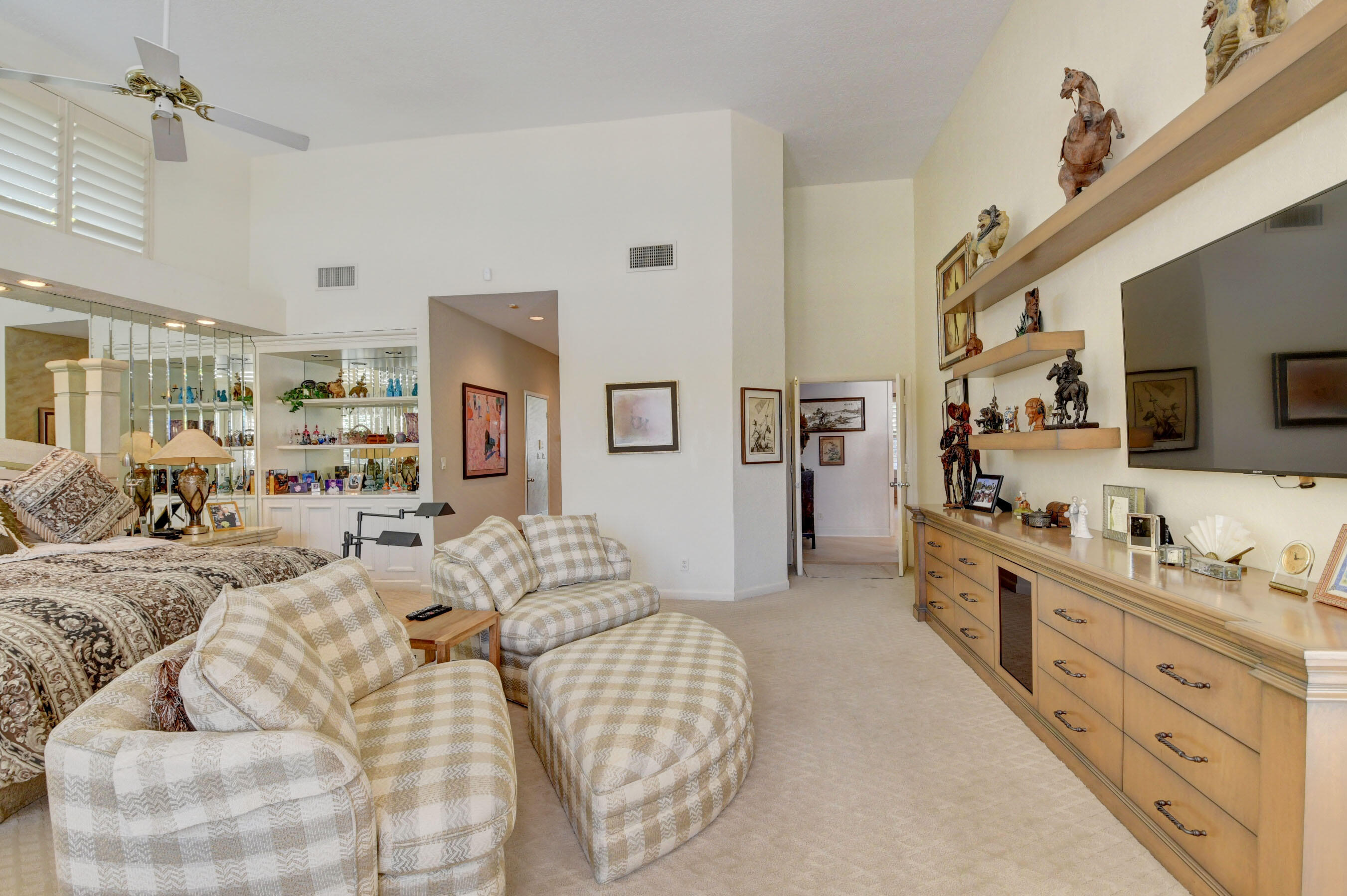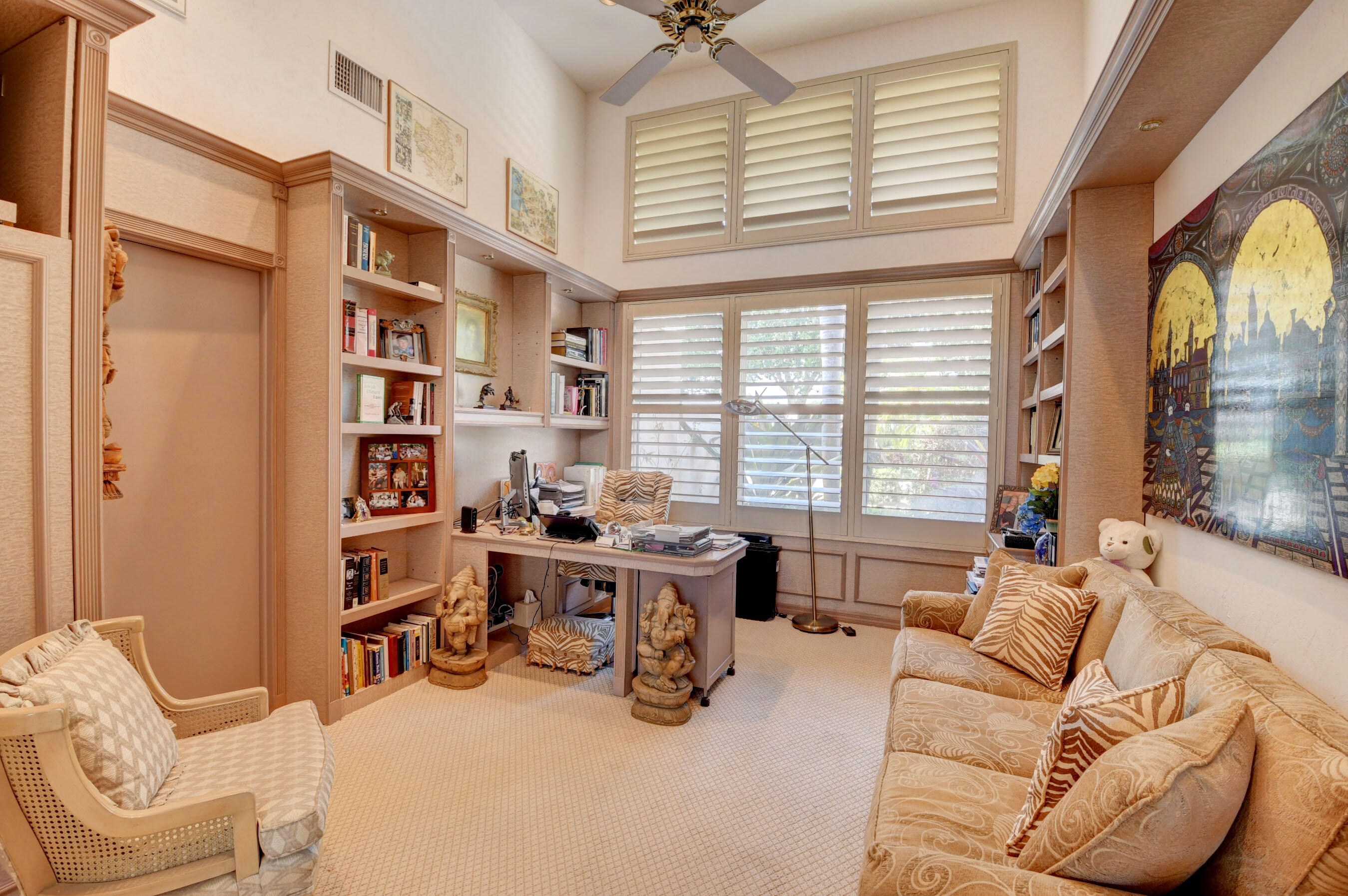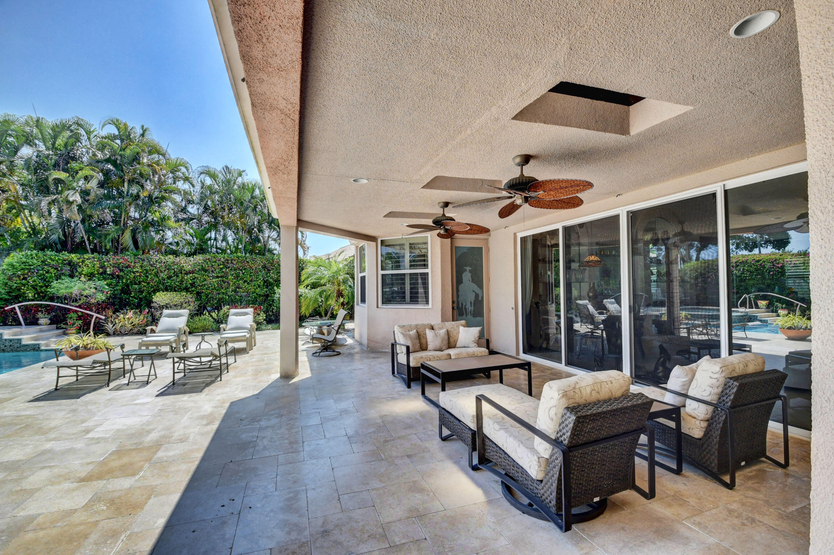 Amazing! Over 5000 square feet with 6 bedrooms overlooking the serene 2nd hole in the back and 1st hole in the front! Main floor has 4 bedrooms (one used as an office)six bathrooms and two family rooms. Another two bedrooms & bathroom on second floor. NEW Impact windows & 14 foot high ceilings. Split bedrooms. Additional room off of laundry for exercise. Primary boasts two bathrooms and large custom closets. Stunning library. Perfect home for entertaining & easy living. Gorgeous huge backyard -NEW patio, and driveway, covered & open patio & grassy yard! Bocaire CC mandatory membership - 239 homes boasts resort style amenities, championship golf course, tennis, fitness, high end dining, small friendly community, A rated schools, close to beach, restaurants, shopping, houses of worship.
