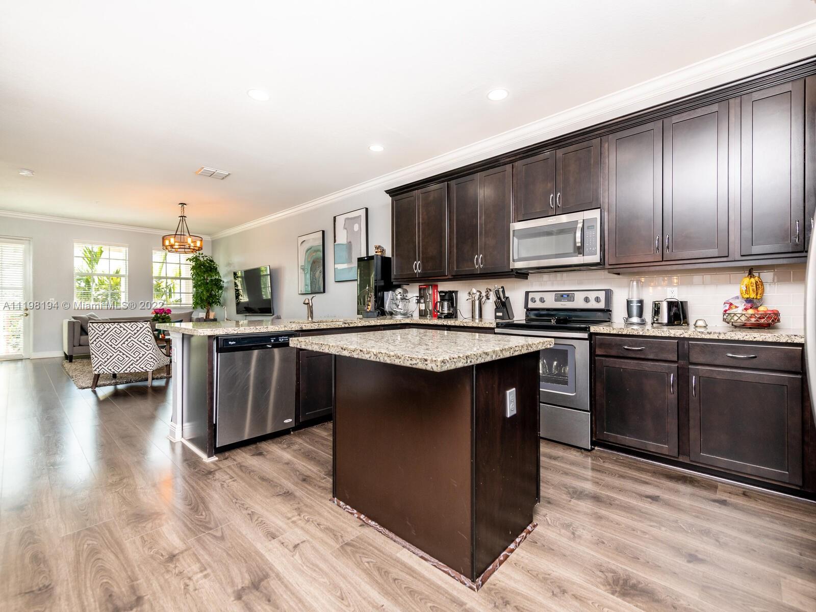 Beautiful townhouse with 3 bedrooms and 3.5 bathrooms. 1 of the bedrooms and a full bathroom are on the first floor. Updated kitchen features wood cabinetry, granite countertops, stainless steel appliances and an Island. The living area and the master bedroom have a balcony. The master bedroom has 2 walking closets. 2 car garage plus 2 parking spaces in front of the garage.