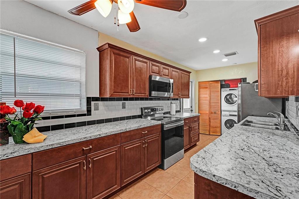 Want a great deal? Make an appointment to see this cute Hollywood home. Really nice house perfect for your personal touch. Good choice for first-time buyers or empty nesters. Spacious social area with neutral ceramic tile throughout. Kitchen and bath updated in 2018 with loads of cabinets, counters, appliances and lighting. Stackable (4.0) washer and dryer. Air conditioning system with updated electric and insulation, plus hot water heater installed in 2018. Roof 2007. Big, fenced yard. Walking distance to public transportation. Minutes to the airport, Hard Rock Casino and the beaches. Check it out!