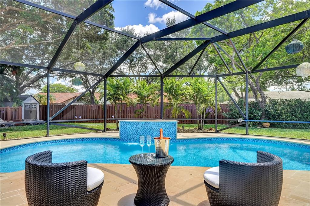 If you love to entertain outside this home is it, the lot alone is worth it. Step inside to this 4-bedroom 2.5 bath, split floor plan that has room to entertain. The kitchen is completely updated with a white marble breakfast bar plus a bar that opens to the outside. The living room, dining room and the family room are all large with vaulted ceilings. Master bedroom features French doors to the pool area and the master bath has a huge shower and a heart shaped tub. The backyard has a 36x9 covered patio with an outdoor wet bar, pool & best part the entire entertaining area are screened. Outside of the screen there is a putting green and room for a swing set. Located in Cypress Glenn, walking distance to Riverside & Taravella.