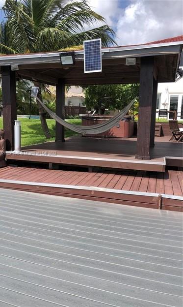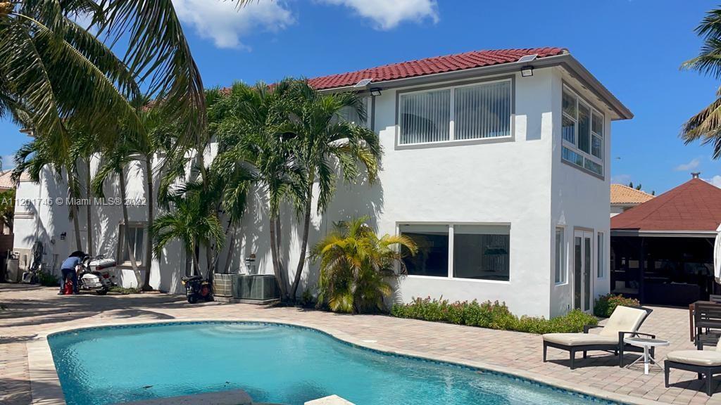 Beautiful 4 bedroom 3 bathroom house in the heart of Doral. Tastefully upgraded with sleek kitchen, modern bathrooms, spacious living area, separate dining room, laundry room and its own movie theater room. The backyard features a large pool, a build in BBQ area, bar, cabana, jacuzzi and private dock with access to the lake. All this in your backyard! Gated community with tons of amenities and security. House needs no work, just bring your furniture and move in! Must see, won't last long!