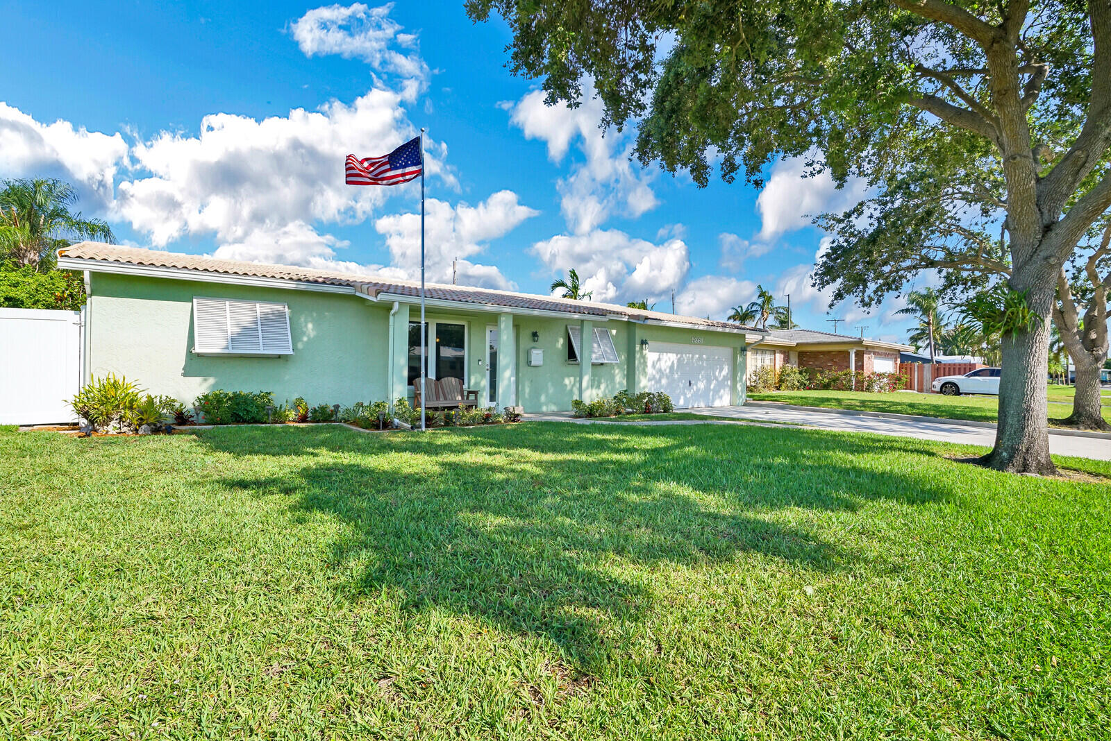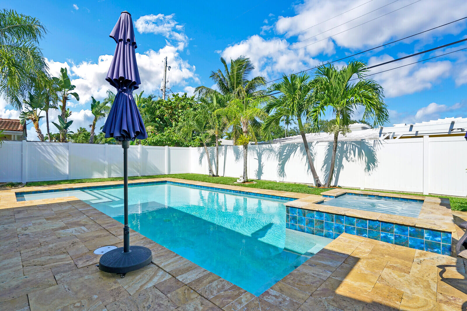 Welcome to your new home in Coral Ridge Isles, minutes from the beach and many trendy restaurants. This 3 Bedroom, 2 bath, 2 car garage boasts HURRICANE IMPACT doors and windows and a closed off spacious den which can be used as a 4th bedroom and newer kitchen appliances. The kitchen leads out to a fenced in utopia backyard. Enjoy family get togethers with your very own heated salt water pool with spa constructed 2014. Pool comes equipped with a handheld remote/sun shelf/bubbler fountain/LED lights. Back yards is complimented with travertine tiles & manicured landscaping. Even during rainy days you can enjoy the outdoors under your covered patio. Sprinkler system (on well) with rust guard system and timer and property comes equipped with security lighting - motion and timer.