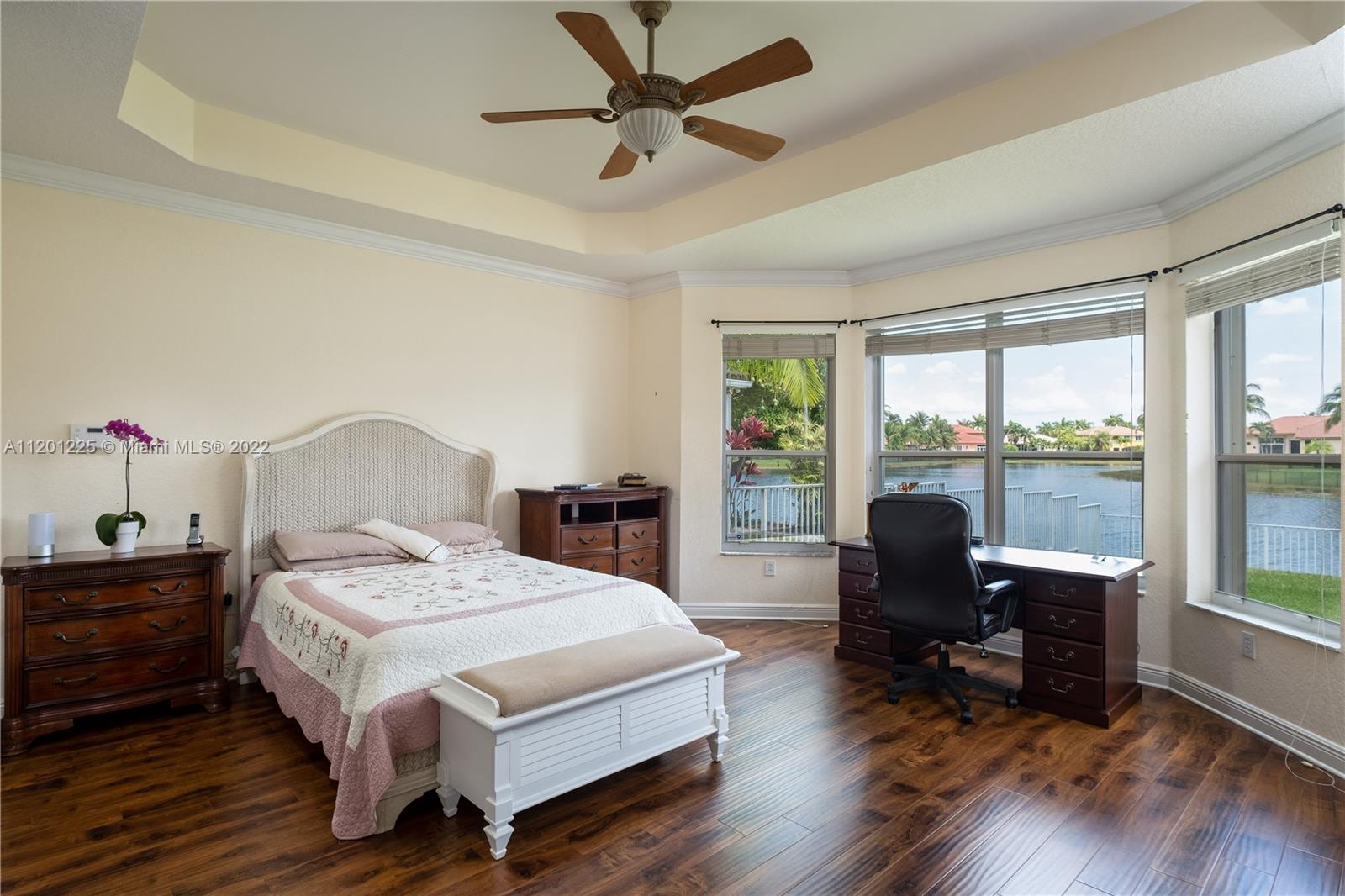 Beautiful one story, four bedrooms plus den, three full baths & 2-car garage. No neighbors in the back. Amazing lake view as soon as you open the door. Upscale community with resort-style amenities, tennis and basketball courts, pools, gym, Clubhouse, playground, dock, and much more. Great neighborhood, family-oriented, quiet & friendly. This house has been well kept and is ready to move in. Experience the tranquility of the water surrounding the landscaping-you’ll feel so peaceful and at ease. Elegant layout, well distributed with private family spaces discretely integrated into the social areas, ideal for entertaining. Spacious main suite w/ gorgeous views from your window, large bathroom, and double walk-in closest. Invited garden with plenty of space for a pool.Call before is too late.