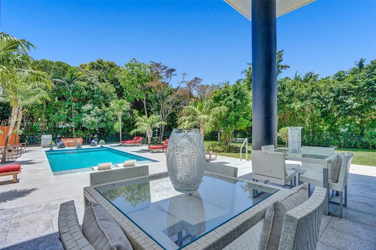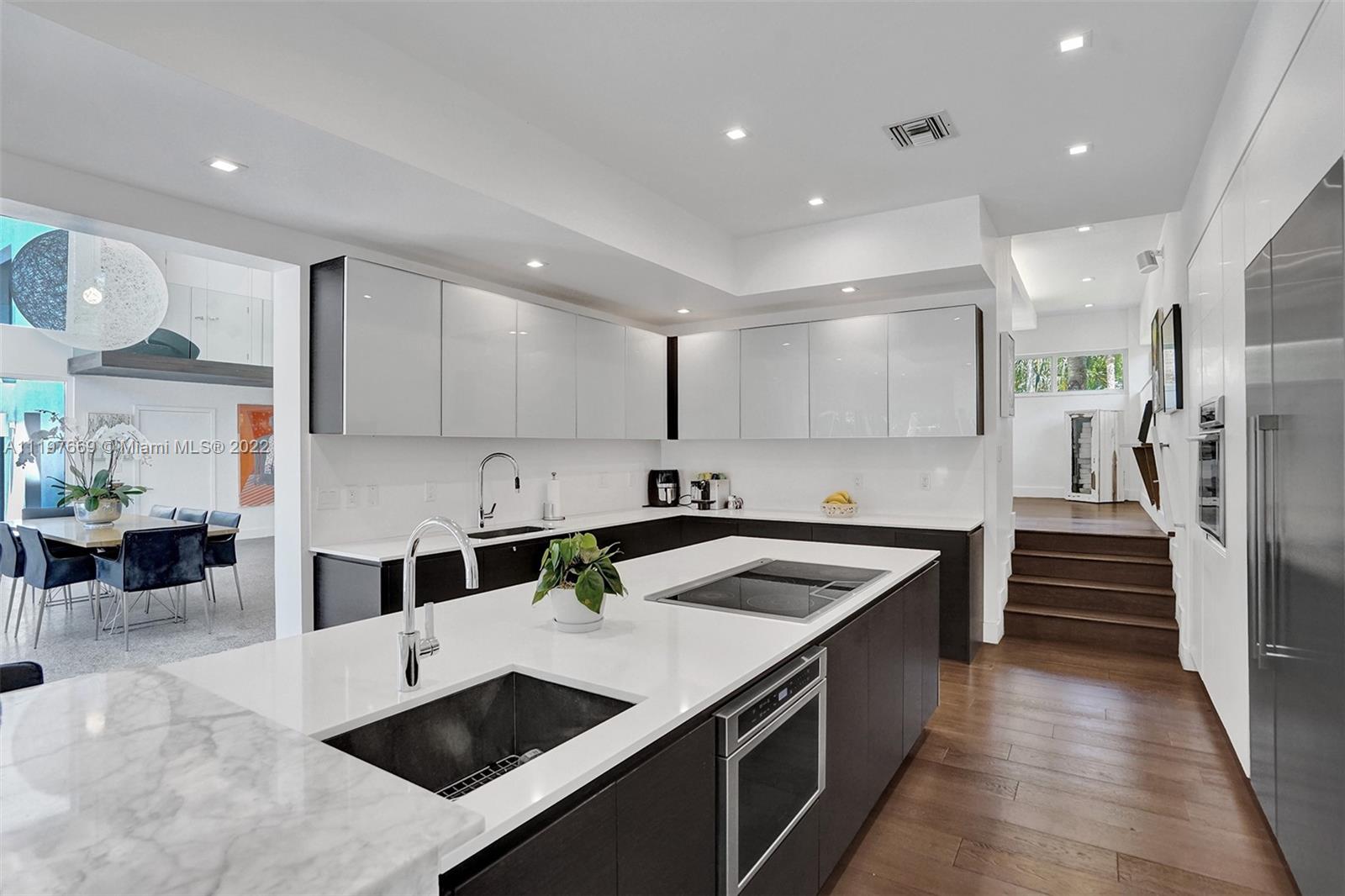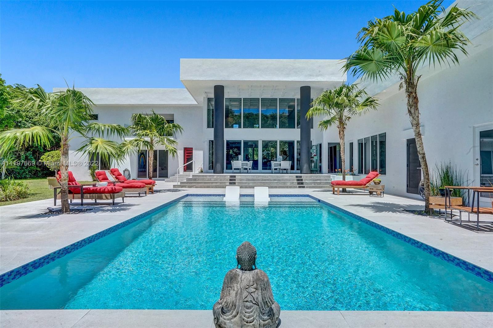 Presenting Casa Moderna in the Northern section of Pinecrest, Newly remodeled 6 bed/6.5 baths modern masterpiece starting with an oversized Porte-cochere entrance with beautiful water features greeting you as you enter this mammoth living/dining area with over 20ft ceiling, fireplace that overlooks an oversized back yard with solar heated, salt water pool. Upstairs you will find your primary bedroom retreat & spa like bath with 2 e walking closets and second fireplace, Downstairs you have separate wing including 3 large bedrooms 2 bath and living room, office or den and walled in garden. Gourmet kitchen with top of the line appliances, 3 car garage with space for 3 more if needed. Nanny suite, brand new roof, impact windows/doors, home generator, new septic tank.