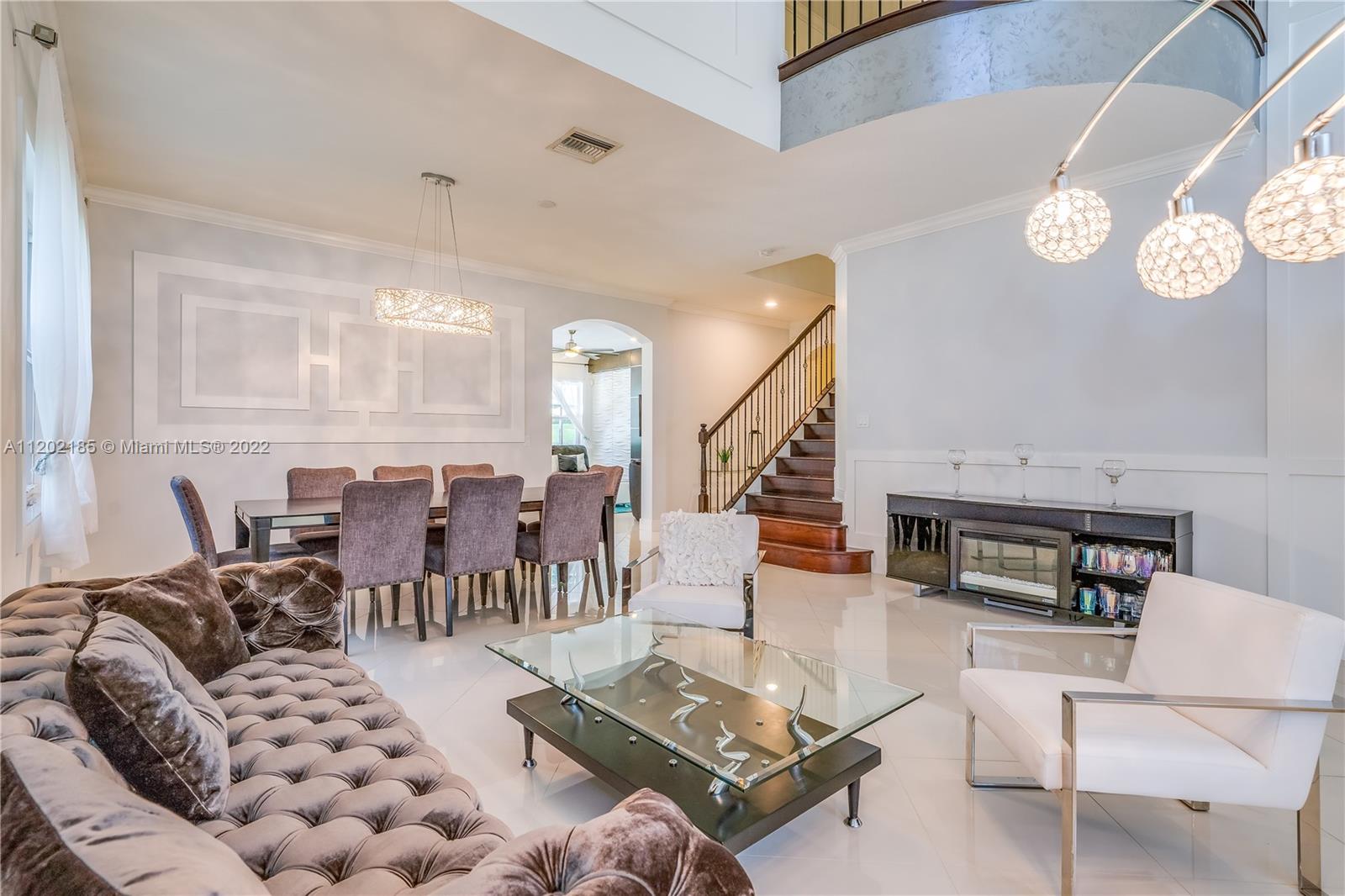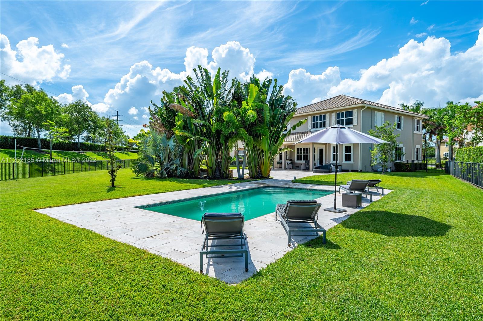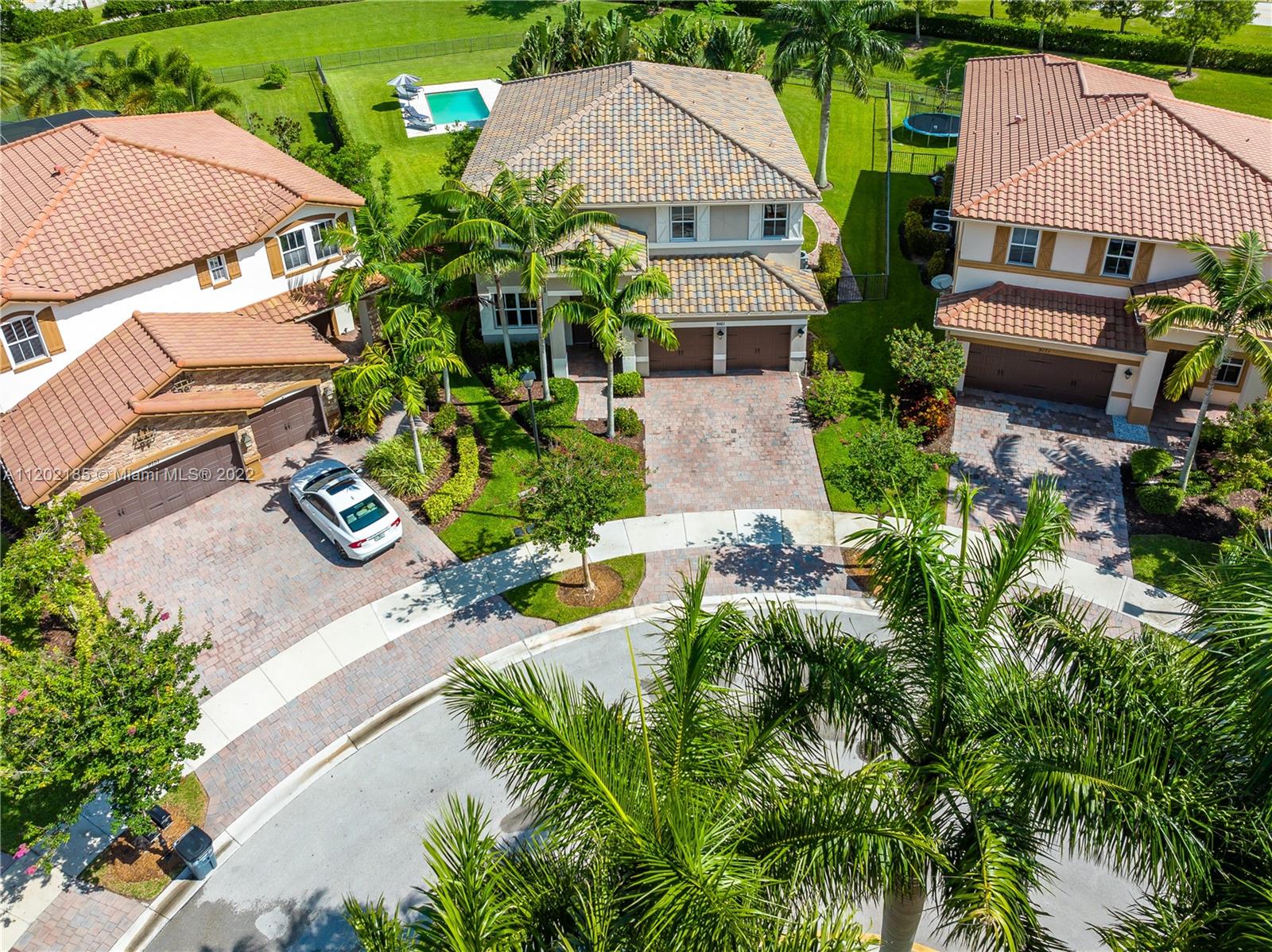 Price Improvement in this Beautiful 2014 Miralago at Parkland Home with 5b/4 Full Baths nestled in a Rare to Find 16,000+ sq ft Cul-De-Sac Pie Shaped Lot. Some Premium Features are: 21" Ft. Ceiling in Living Room, 24" Porcelain Tile throughout First Floor, Wood Floors, Smooth Walls, Crown Molding Throughout, Gorgeous Custom Lighting, Wainscoting, Custom Designed Media Wall, Wood&Wrought Iron Staircase, Tray Ceilings. Kitchen offers White Wood Cabinets, Island, Granite, Glass Backsplash, SS Appliances & Gas Cooktop. Relax in the Beautiful Backyard with a 2020 Modern Pool w/LED Lights. Enjoy the Expansive Entertaining Area of 2,100+ sq ft Travertine Terrace, Stone Firepit & Volleyball Ct. Complete Impact Glass Windows. Two Resort Style Clubhouses at Walking Distance. HOA Includes Lawn Care.