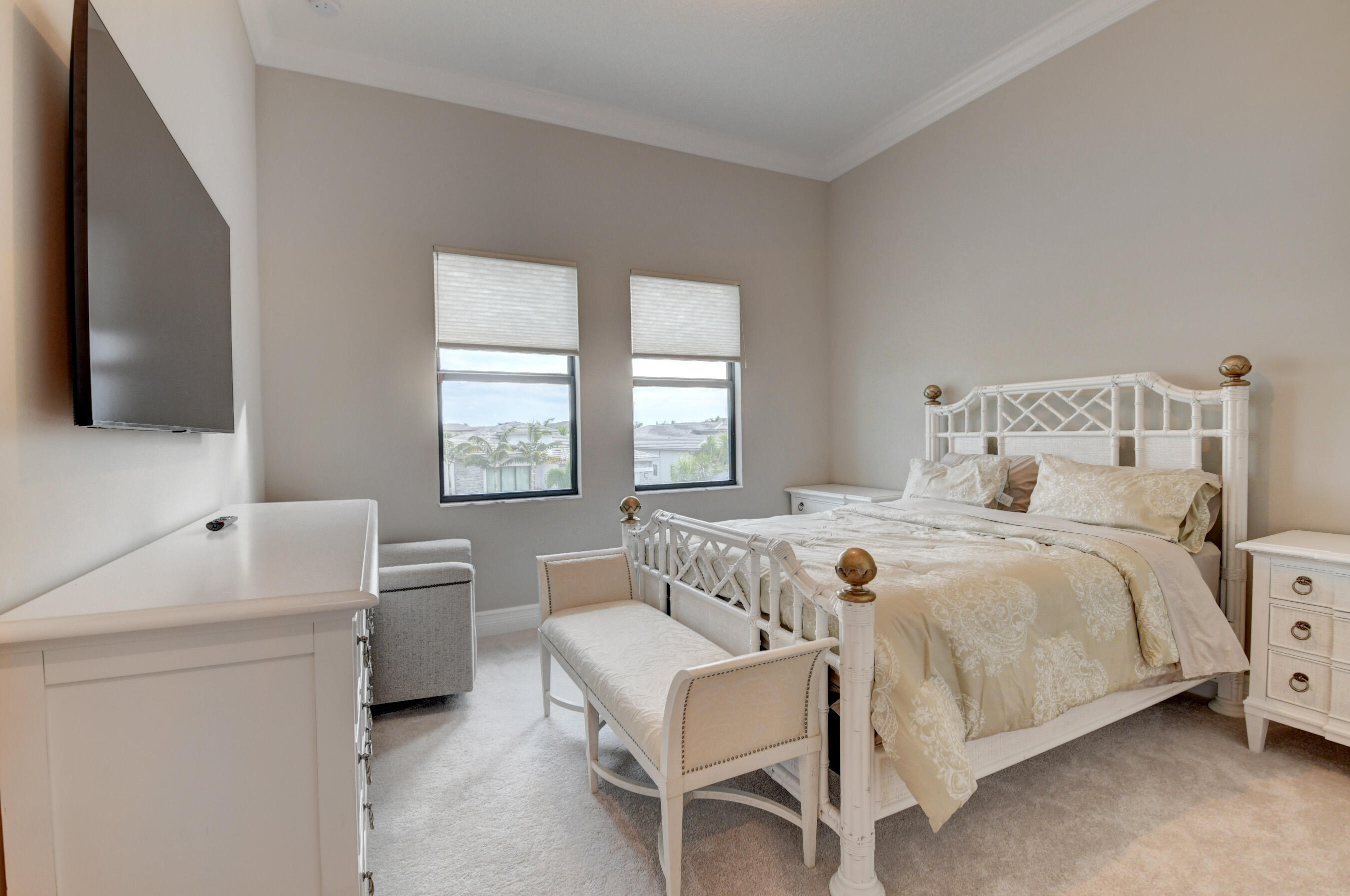 Amazing opportunity in Boca Bridges that is priced to sell. Purchase now and earn almost $200,000.00 in rental income. Tenant occupied until June 2023. Situated on one of the largest lots (over 9,900 sq. ft) with no rear neighbors this Sanibel Model spans over 5,330 living square feet with 5 ensuite bedrooms (1 down/4 up) and 6.5 baths. This luxurious home is less than one year old, is still under builders' warranty and the owner has spared no expense (over $450,000 in upgrades) to make this one of the nicest and is the lowest priced per square foot home in Boca Bridges. Living here is a breeze with you Google Smart Home, complete with Total Home Wi-Fi, Sonso System and Lutron Switches. The first-floor features 12' ceilings, your guest bedroom/gym, a separate large home office, formal