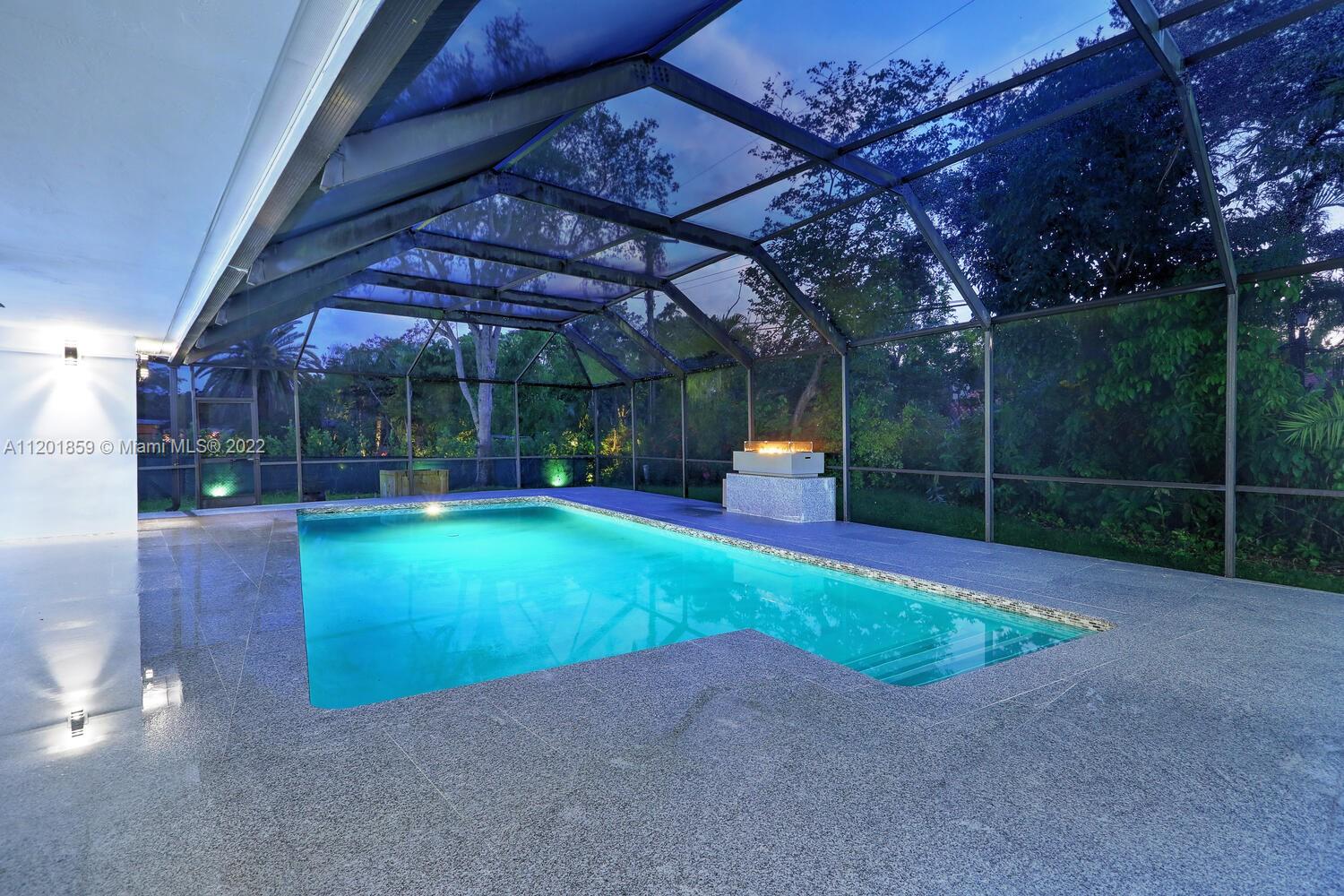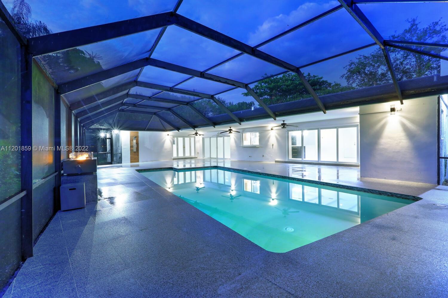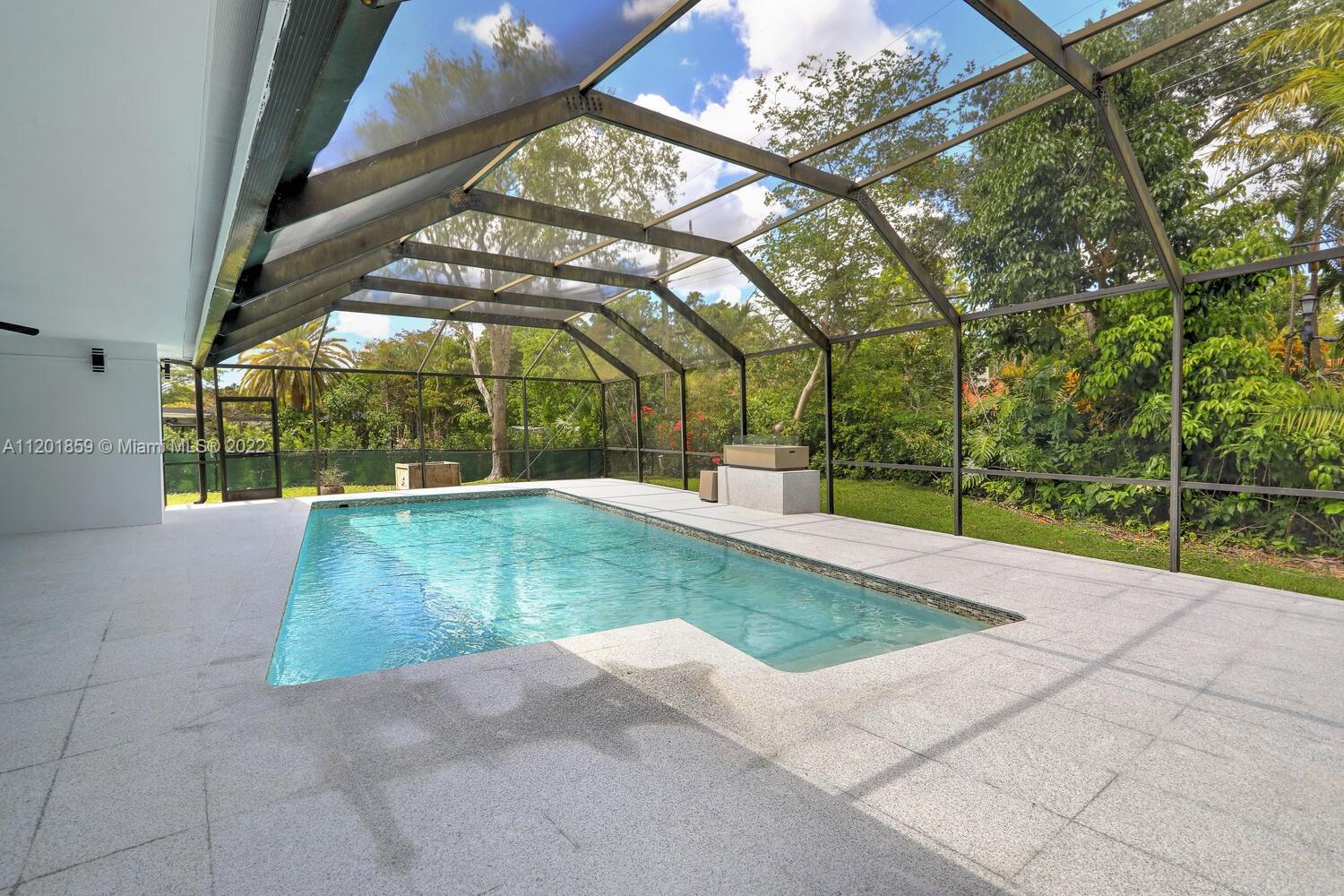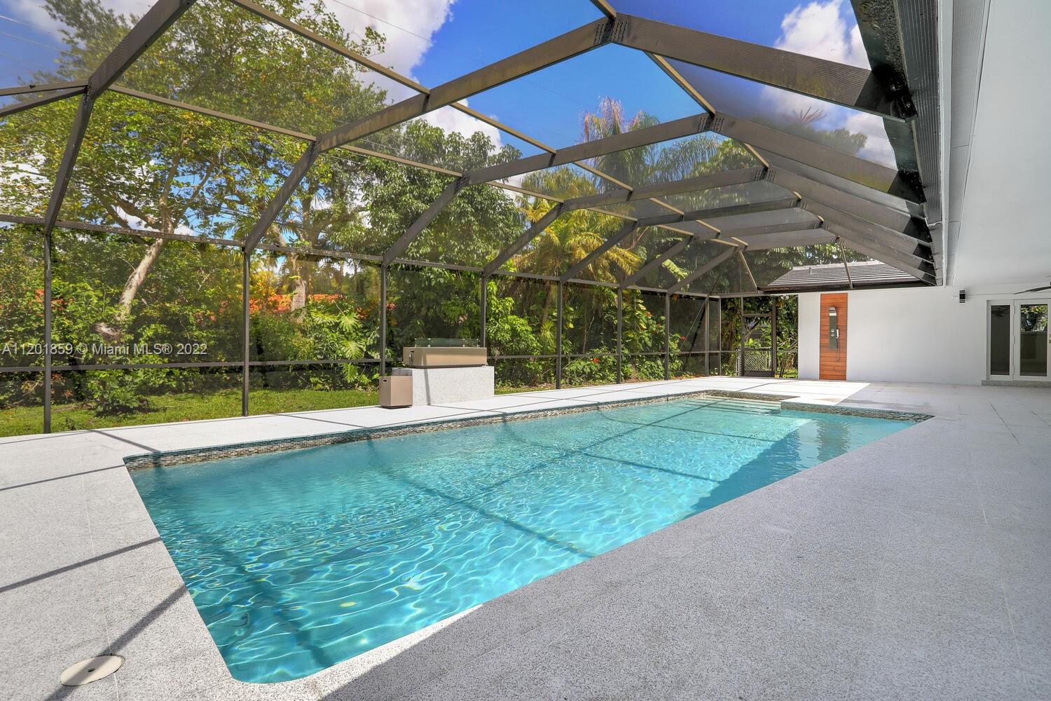 This turn-key 5/4 Pinecrest home sits on a 34,891 sqft lot. New tile roof & impact windows throughout. Features European porcelain floors, oak floors in living room, wood burning fireplace in family room & walk-in 220 bottle glass wine room in dining area of this open concept home. Oversized gourmet all Monogram kitchen boasts quartz countertops, gas range w/ griddle & oven, double French wall oven, under mount sink & drawer microwave. Primary bedroom w/ ample closets, spa bath complete w/ double shower & soaking tub. Additional four bedrooms include en-suite ideal for guests & a convertible home office w/ custom oak cabinetry. Bathrooms appointed w/ marble finishes. Outside areas w/ granite flooring including pool area ideal for entertaining. Gas powered fire feature and outdoor shower.