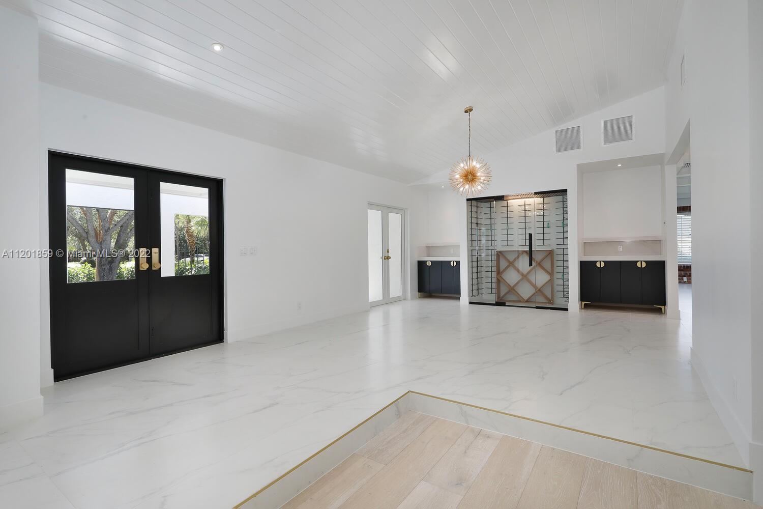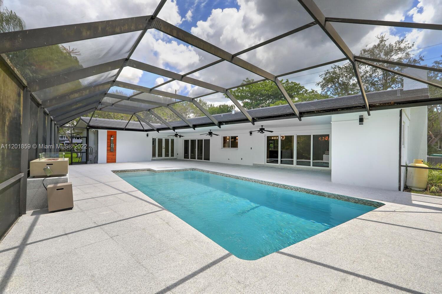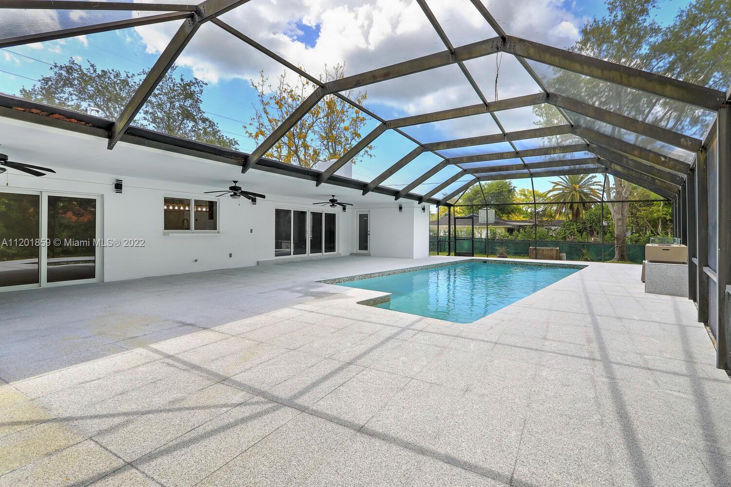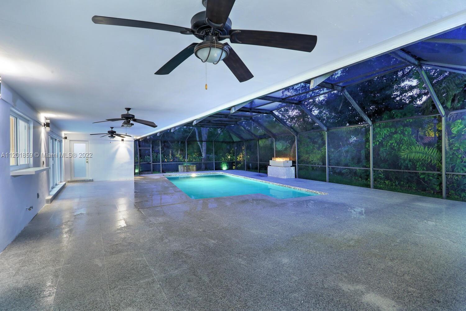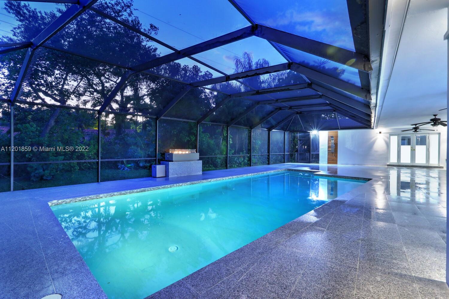 This turn-key 5/4 Pinecrest home sits on a 34,891 sqft lot. New tile roof & impact windows throughout. Features European porcelain floors, oak floors in living room, wood burning fireplace in family room & walk-in 220 bottle glass wine room in dining area of this open concept home. Oversized gourmet all Monogram kitchen boasts quartz countertops, gas range w/ griddle & oven, double French wall oven, under mount sink & drawer microwave. Primary bedroom w/ ample closets, spa bath complete w/ double shower & soaking tub. Additional four bedrooms include en-suite ideal for guests & a convertible home office w/ custom oak cabinetry. Bathrooms appointed w/ marble finishes. Outside areas w/ granite flooring including pool area ideal for entertaining. Gas powered fire feature and outdoor shower.