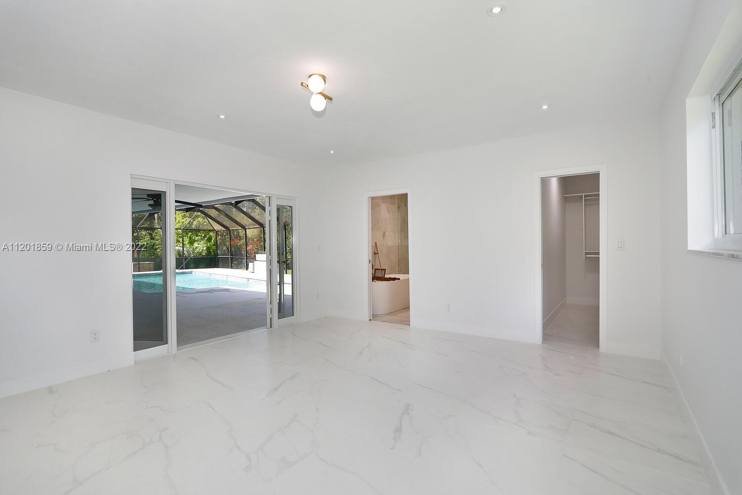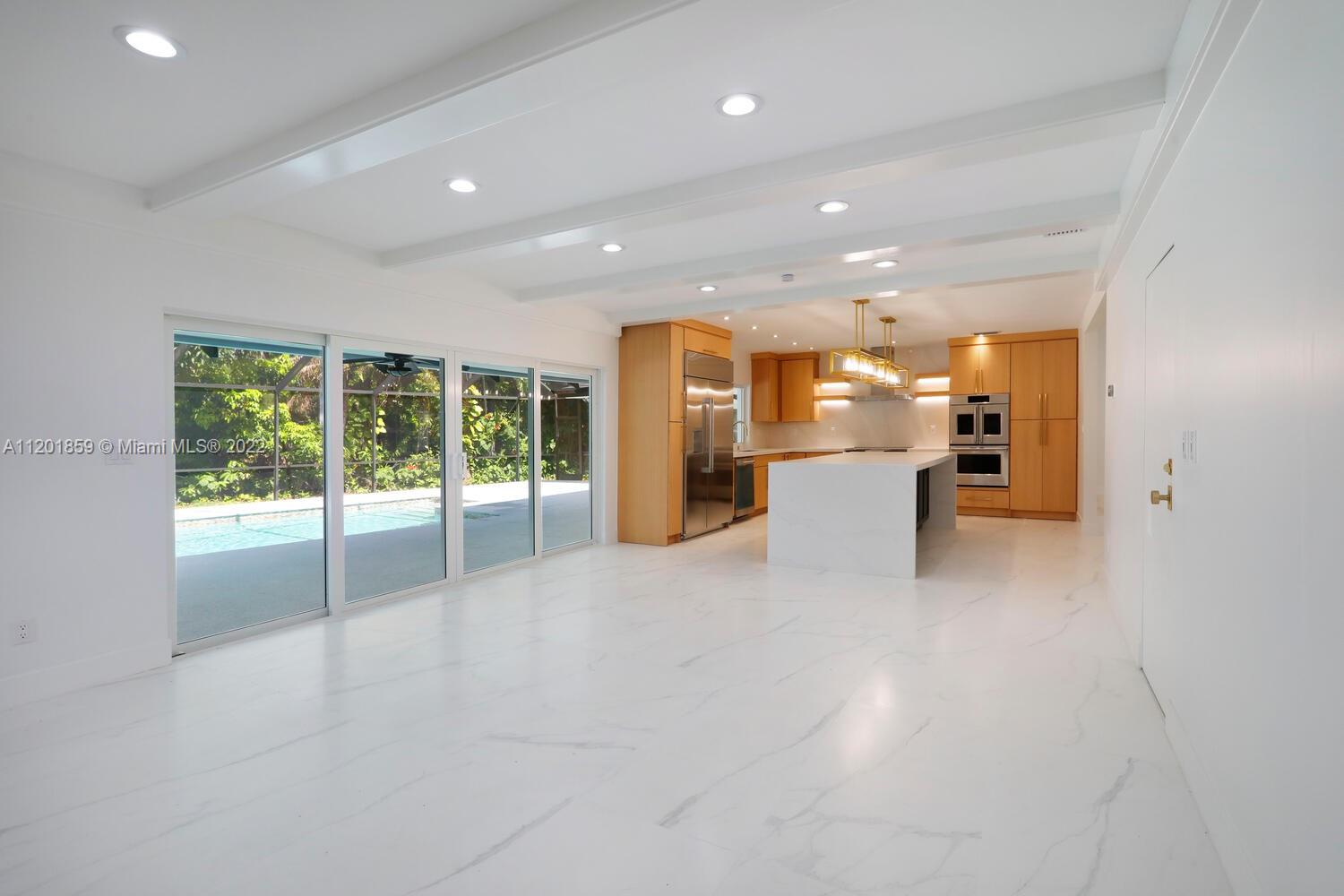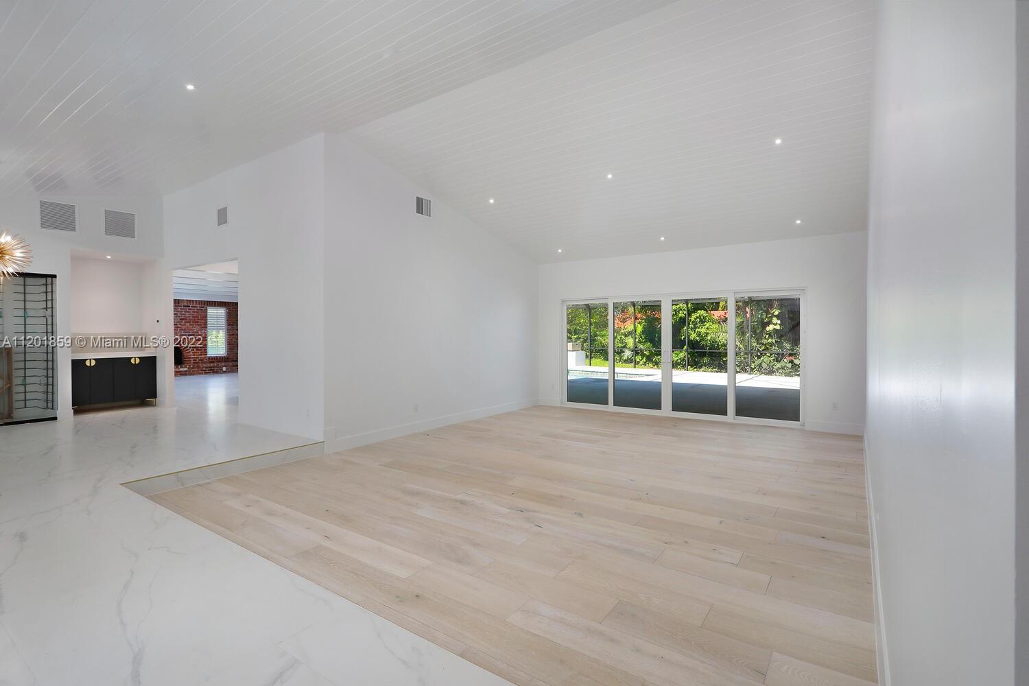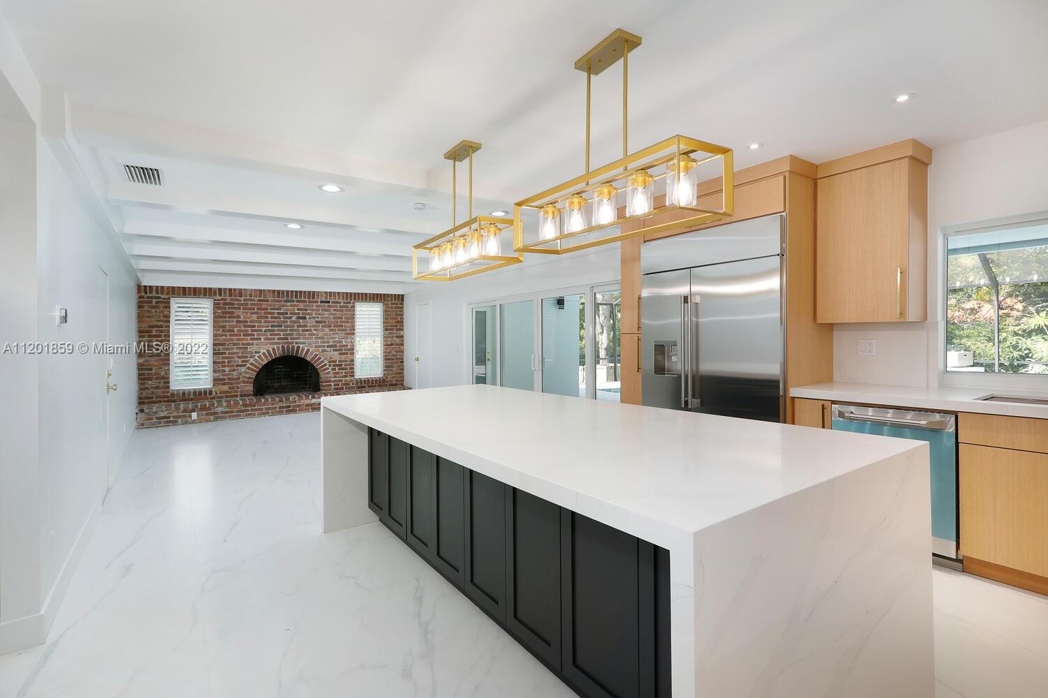 This turn-key 5/4 Pinecrest home sits on a 34,891 sqft lot. New tile roof & impact windows throughout. Features European porcelain floors, oak floors in living room, wood burning fireplace in family room & walk-in 220 bottle glass wine room in dining area of this open concept home. Oversized gourmet all Monogram kitchen boasts quartz countertops, gas range w/ griddle & oven, double French wall oven, under mount sink & drawer microwave. Primary bedroom w/ ample closets, spa bath complete w/ double shower & soaking tub. Additional four bedrooms include en-suite ideal for guests & a convertible home office w/ custom oak cabinetry. Bathrooms appointed w/ marble finishes. Outside areas w/ granite flooring including pool area ideal for entertaining. Gas powered fire feature and outdoor shower.
