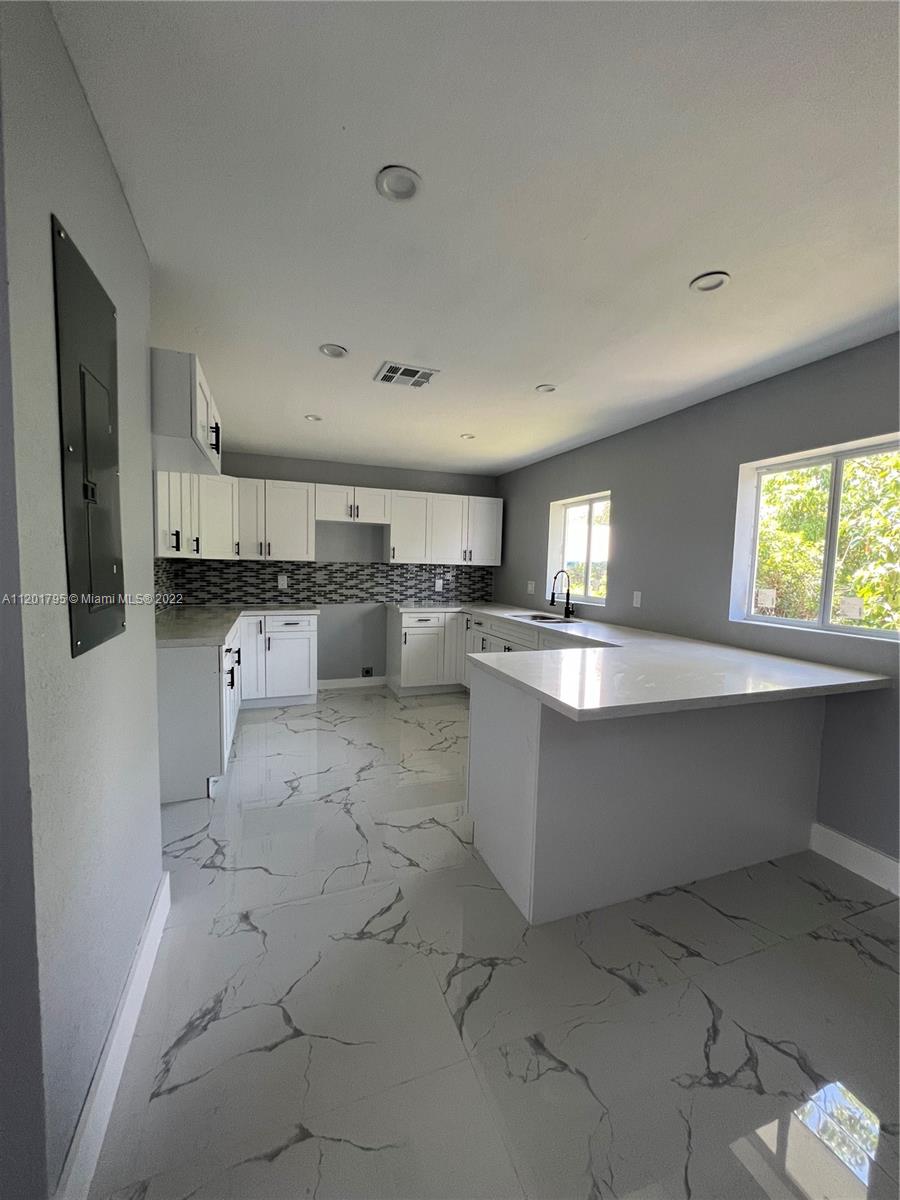 Be amazed by this ONE-OF-A-KIND legal 4-bedroom/ 3-bathroom home that has just undergone a major renovation! This house welcomes you with an updated porch that then guides you to an open floor plan home with, new 32x32 calacatta tiles in the entire house, state-of-the-art bathrooms, a contemporary open kitchen with calacatta quartz countertops, white wood cabinetry and ceramic backsplash, full-grown fruit trees (mango) and avocado, new roof, and new central AC system. Impact windows and doors. The house is setup as a 4/3 or 3/2 and 1/1 with a separate side entrance to make additional income. Perfect location close to downtown areas. Carport was enclosed legally in order to add more square footage to the property which doesn't reflect on tax records yet.