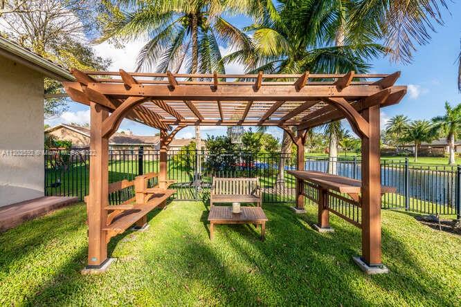 Gorgeous home located on one of the most prestigious communities in Davie “Laurel Oaks” The 4 beds, 3 baths plus den/office with 2 car garage, home sits on almost one acre, on largest cul-de-sac canals lots. This estate home features a very functional split floor plan. French doors lead outside to a beautiful entertaining area, with covered patio & bar. Living room with wet bar facing the view of the pool & waterfront yard with gazebo, through French doors. Large master suite, huge dining room & breakfast area. Family room with stone fireplace. Home is filled with charming features. Outside living offers a spacious pool newly resurfaced & new pump. 2 zone A/C and generator too. Enjoy your beautiful & tranquil property with best schools in the County, parks, open spaces, shopping & dining.