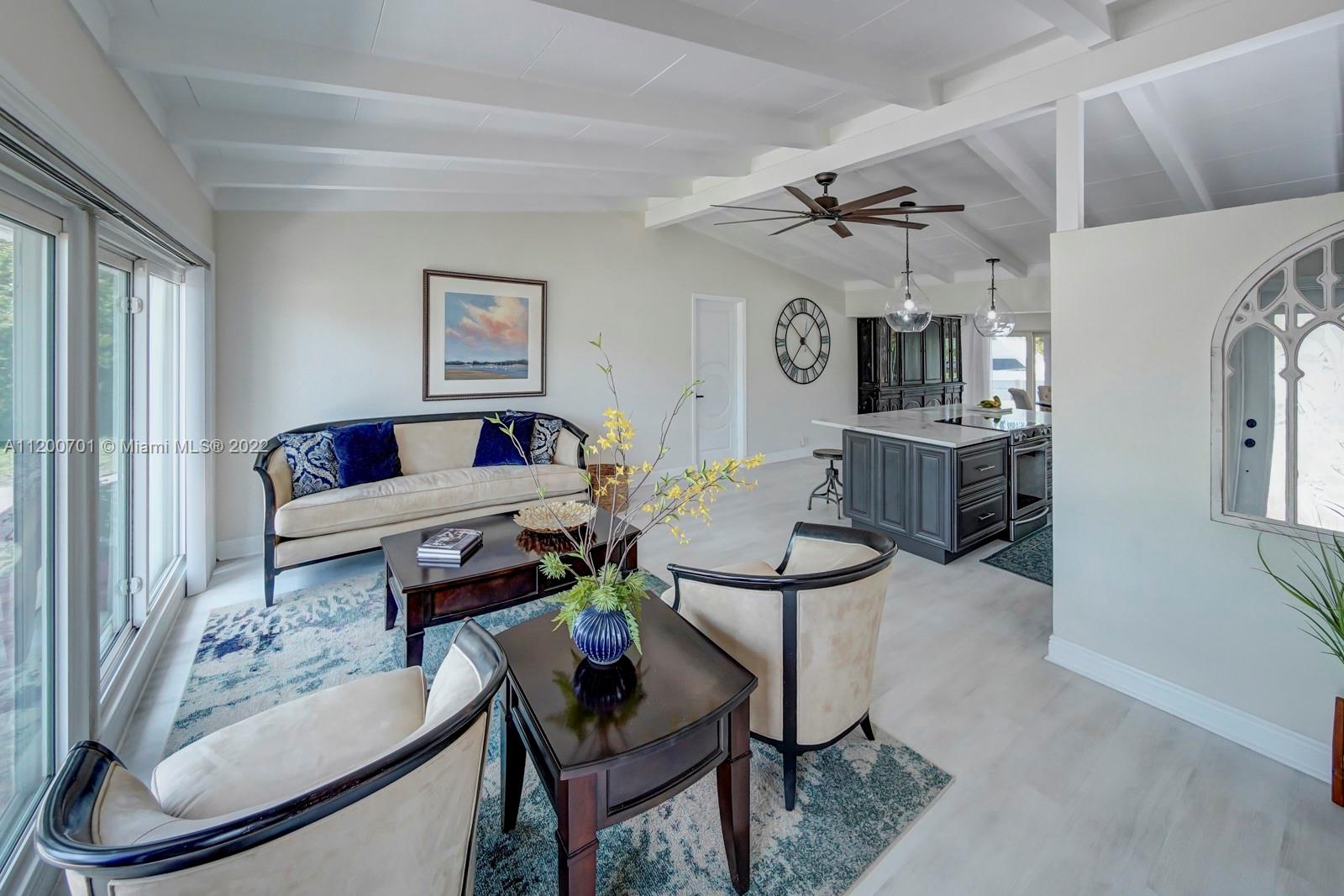 NEW PRICE! PRICED BELOW MARKET! PERFECT FAMILY HOME OR TURN INTO AN AIRBNB. This remodeled, deep water, no fixed bridges house! Featuring over 2395 sq ft this home has all the space you need to entertain. Vaulted exposed beam ceilings, all impact windows & doors. 2022 new roof, fresh paint interior & exterior, new lighting. Tankless WH, 2 new A/C's, new custom kitchen, oversized island w/ quartz countertops, high-end appliances w/induction cooktop. A tucked away master bed w/ seating area and a dreamy walk-in closet. Enjoy water views from your deck off the master while providing a covered patio below. Take a dip in the heated salt water pool/jacuzzi. 50ft dock with water and electric just redone. A short cruise to downtown Fort Lauderdale's best restaurants and historic landmarks.