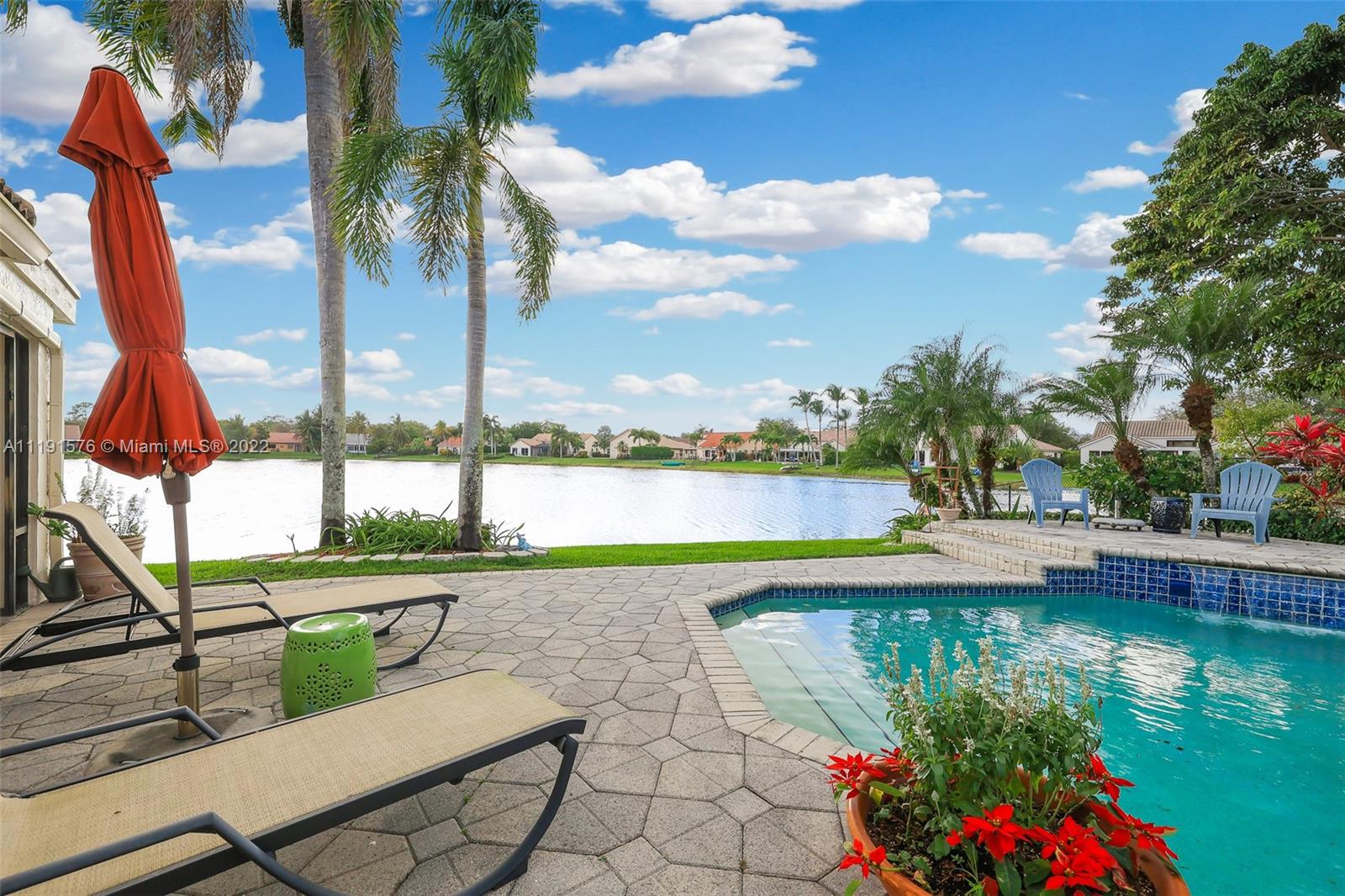 Located in highly desirable Forest Ridge – RARE ONE OWNER HOME, boasting a SPECTACULAR LAKEFRONT & POOL on a well maintained cul de sac with long term neighbors, this original 5 bed model has been customized, creating 4 beds 3 baths, expanding the family room & kitchen created by Wolf in the Woods w/ black gold granite, real wood cabinetry, double ovens, planning area & generous Island w/ wine cooler, etc. Unbelievable Florida Room Patio expansion, over 1000 SF, allows for huge gatherings overlooking the amazing lake & pool. An Estate series home on a superior oversized lot features wood floors, formal foyer, den w Hide-a-bed, Split bedroom floorplan, abundant storage including a built-out attic with drop down stairway for easy access; partial impact windows, ready for your special touch.