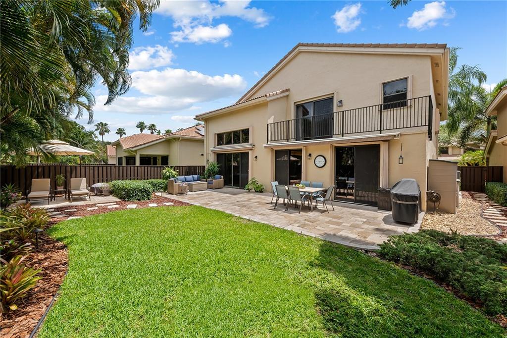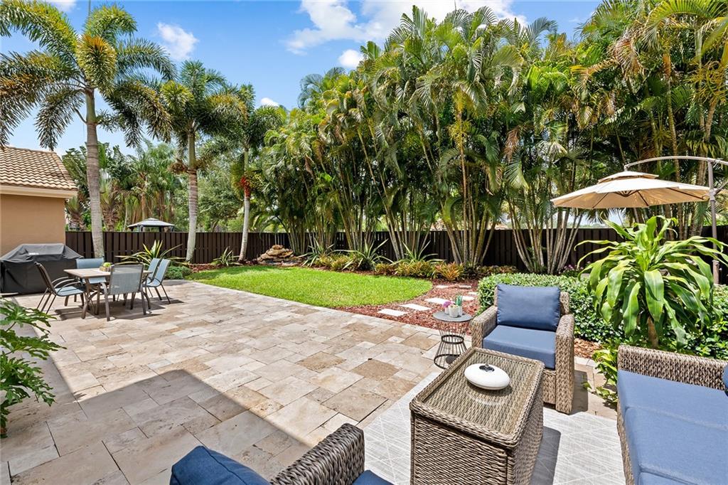 Exquisite home located on a quiet cul-de-sac street in Fountain Spring. Travertine walkway leads from the driveway to the double door entry. Spacious living area has buffet with granite countertop, glass fronted cabinets and wine cooler. Large master bedroom with balcony overlooking the backyard. Master bath has his and her sinks, separate tub/shower, and sitting area. The backyard is amazing with a travertine patio, lush landscaping, hardwired speakers, and 2 powered retractable awnings. Led lighting throughout the home, accordion shutters, impact garage door, landscape lighting and a wireless ADT security system. Fountain spring features a beautiful community pool and park with tennis courts, volley ball court and playground.