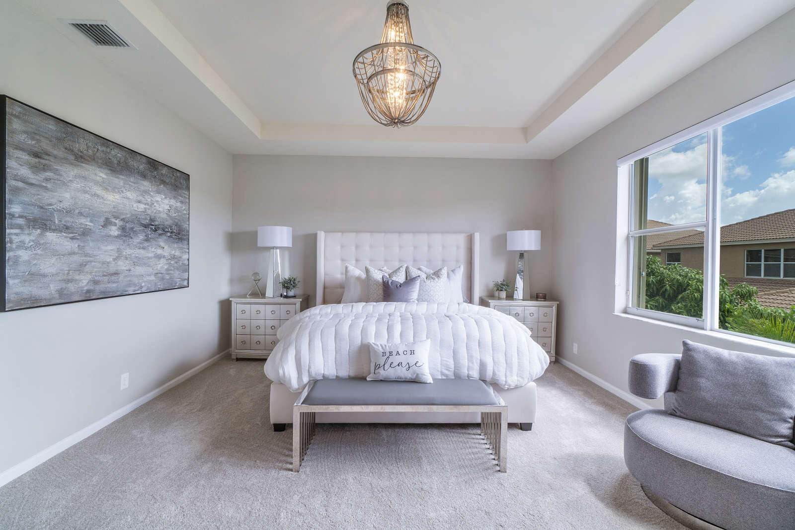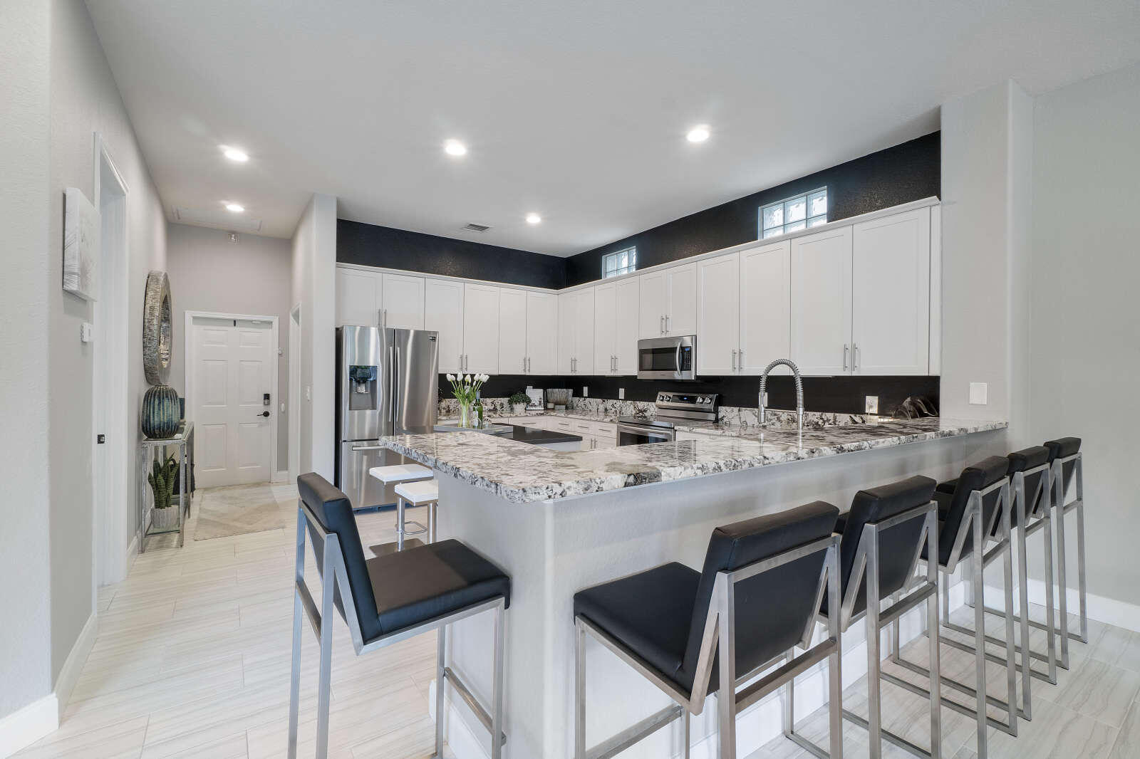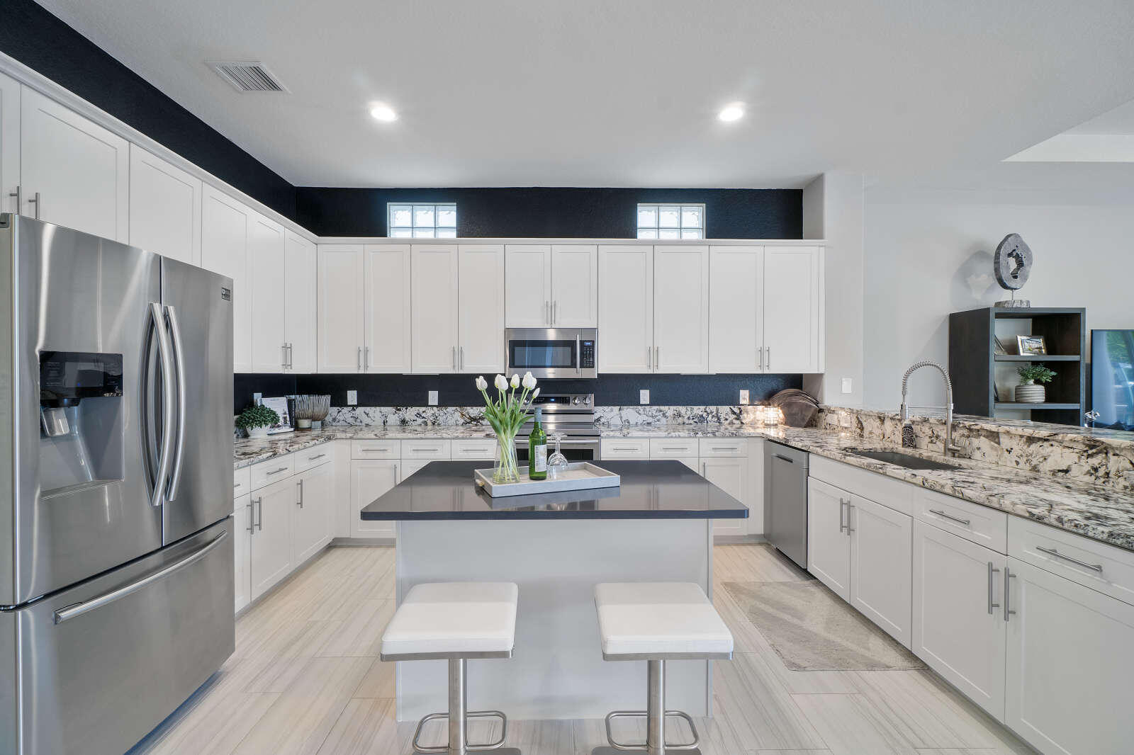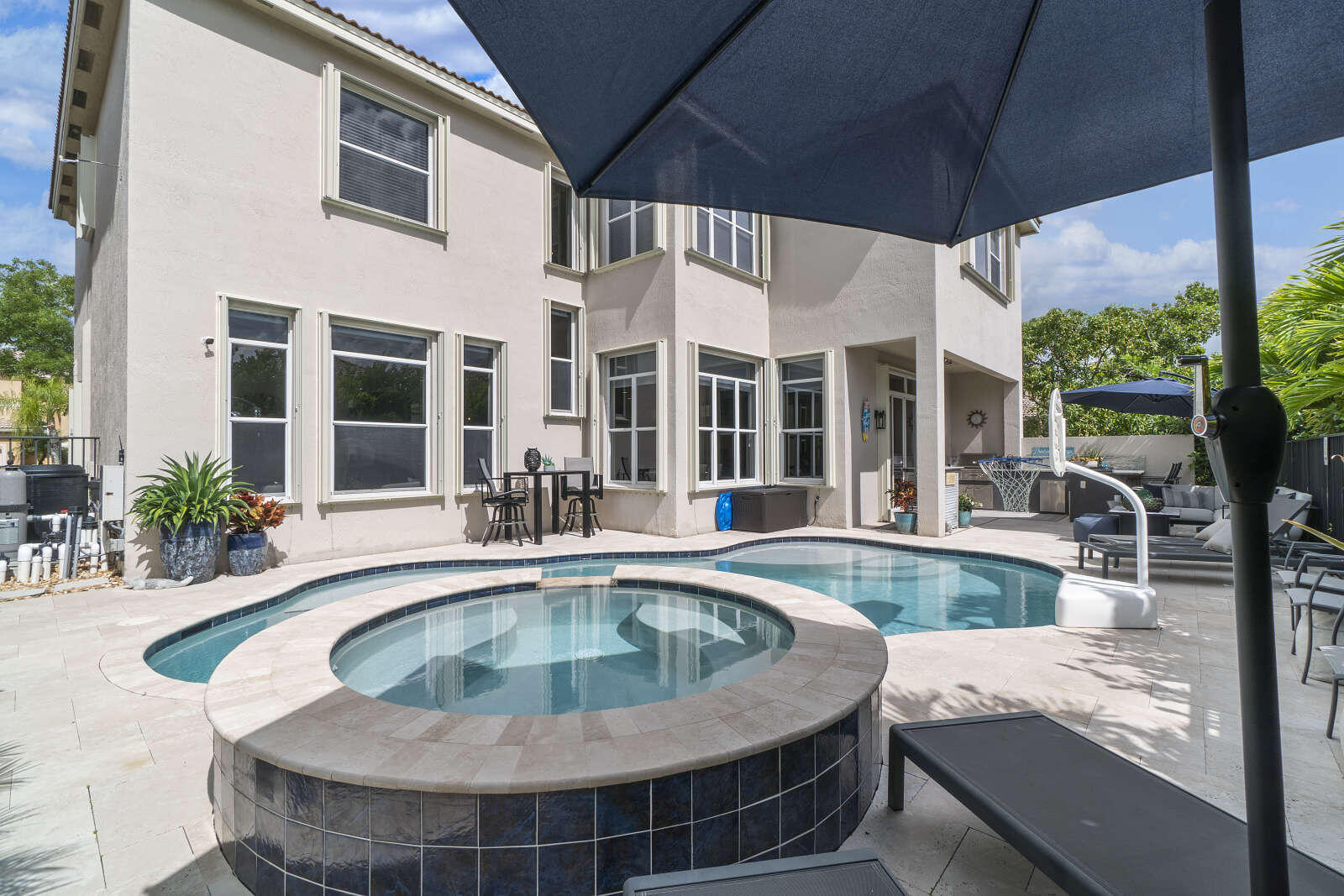 STUNNING turnkey home professionally decorated. Open concept floorplan leads out to patio with outdoor kitchen and heated pool/spa landscaped for privacy. 4 bedrooms, 3.5 baths, plus office/den, kitchen with Island and counter seating, family room, dining area, formal dining room, formal living room, laundry room, finished garage w/epoxy floor. Open stairway with loft area. Oversized Master Suite with separate living area that leads into His and Her large custom walk-in closets and gorgeous Master Bath with free standing tub and zero entry shower. Accordion shutters and impact glass front door. Professionally landscaped with lighting. Custom window treatments. Furniture negotiable. Low HOA Fee $255, Gated 24hr manned guard, clubhouse, fitness center, pool, tennis courts, kids play area.