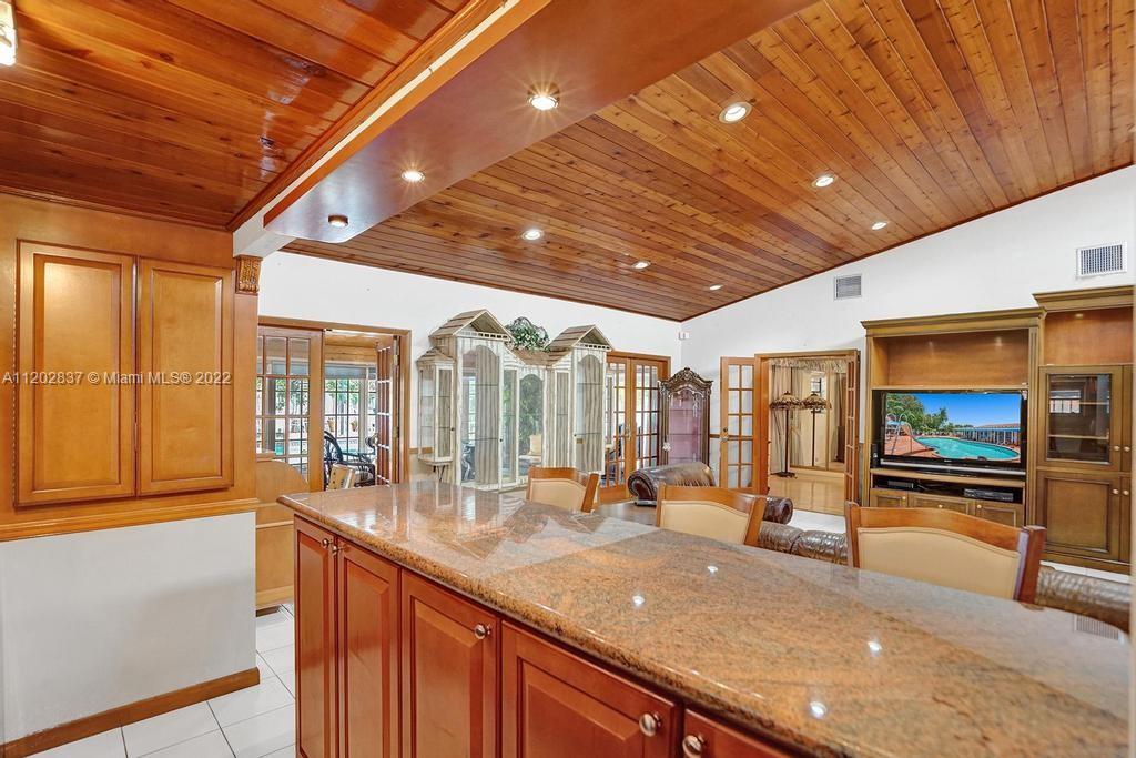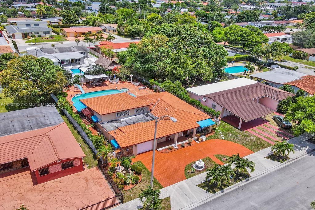 West Hialeah pool home on a 10,500 sq.ft lot. Over 2,800 sq.ft, all additions done with permits. The home also features an oversized one car garage with additional storage space and a separate laundry room. This special home is big enough for two families! The home features a wet bar with an added stove, and refrigerator boosting its function for easy entertainment and/or private in-law quarters. The wet bar opens to a spacious family room with vaulted ceilings covered with wood planks which adds a sense of charm and character to the space. French doors divide the family room and a sunroom which allows tons of natural light to stream inside while enjoying the view of the pool area. Lots of possibilities with so much space, this home can provide so many needs. Do not miss this opportunity.