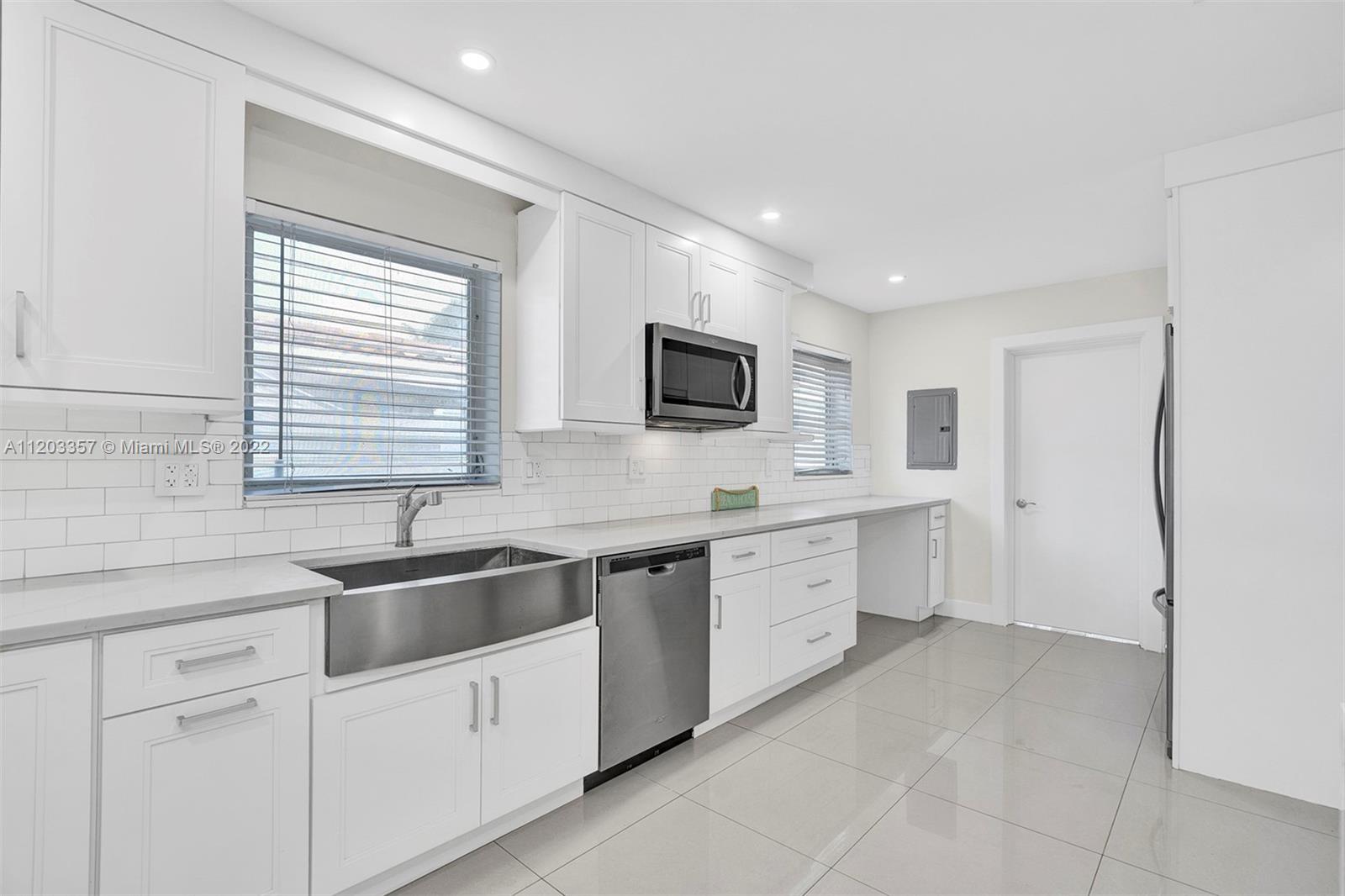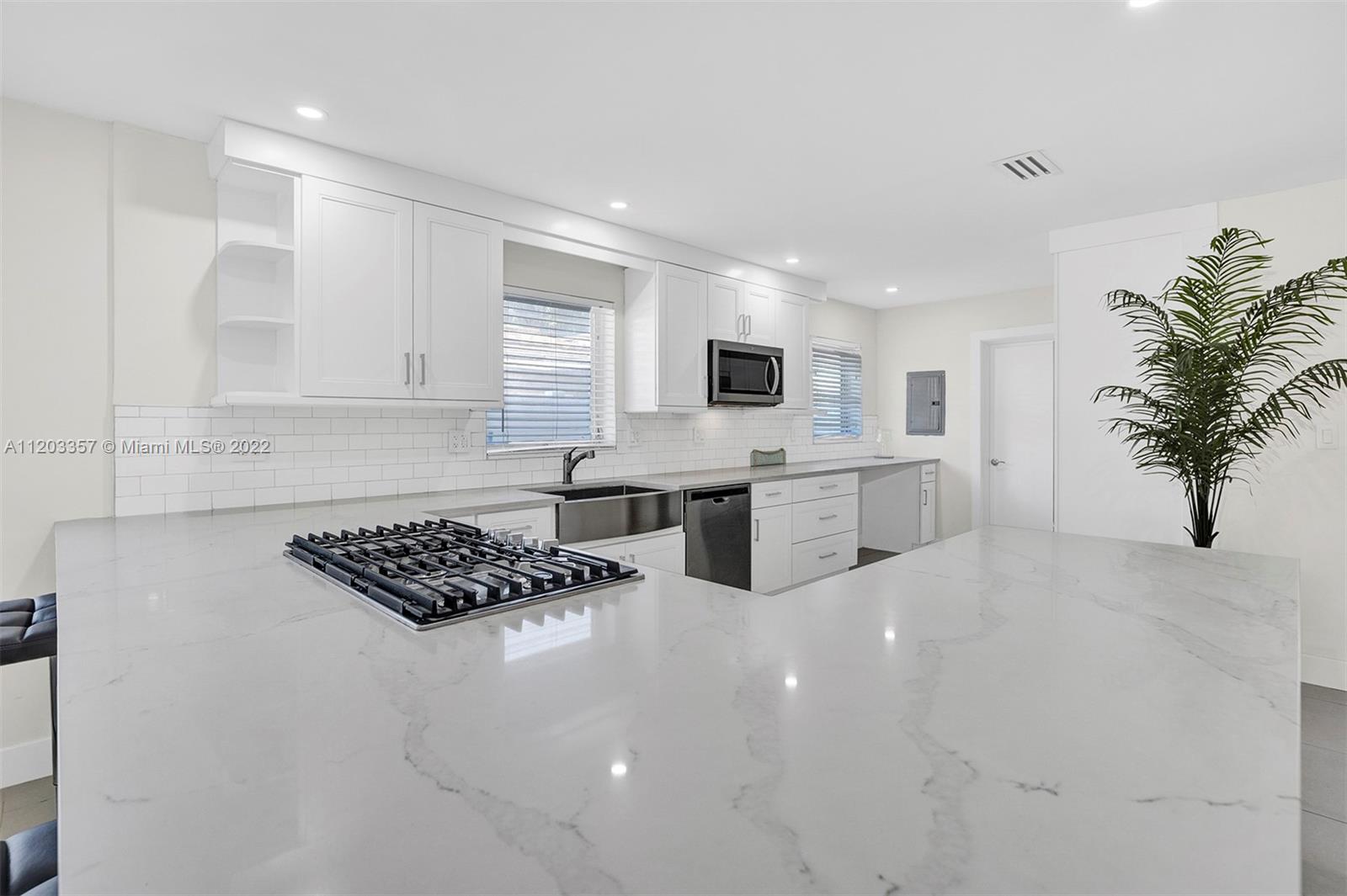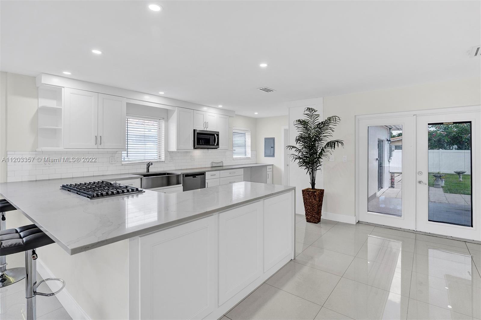 Just Reduced! Location Location. Immaculate 2 bed/2bath plus OFFICE/DEN home nestled on one of the best streets of Hollywood Lakes. Open concept floor plan offering a great abundance of natural light and great flow thru-out the home. Offering a NEW well designed peninsula kitchen featuring QUARTZ countertops w/waterfall edge, NATURAL GAS cooktop, brand new appliances, abundance of cabinetry w/soft close drawers, large single basin sink and more -a Chef's Dream. office/den can easily be converted to 3rd bedroom Immaculate 24x24 porcelain tile floors thru-out, recessed led lighting thru-out, generous sized bedrooms, recent coat/sealed roof -10 year elastomeric applied, updated electrical, PVC fence, room for POOL, rear driveway. Short distance to beach, golf, marinas, downtown and much more.