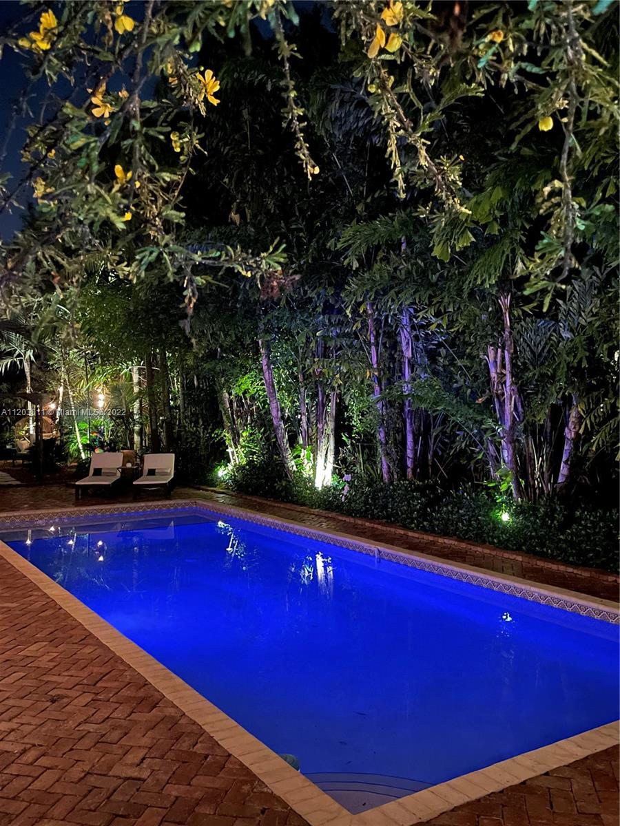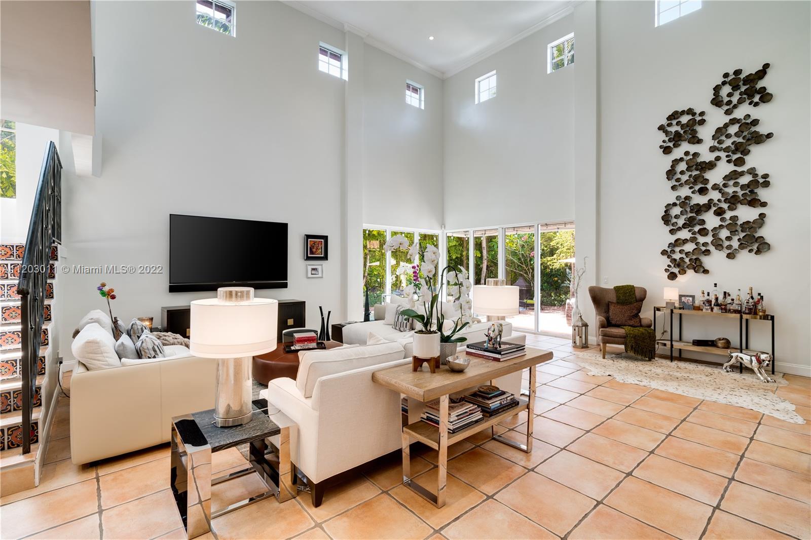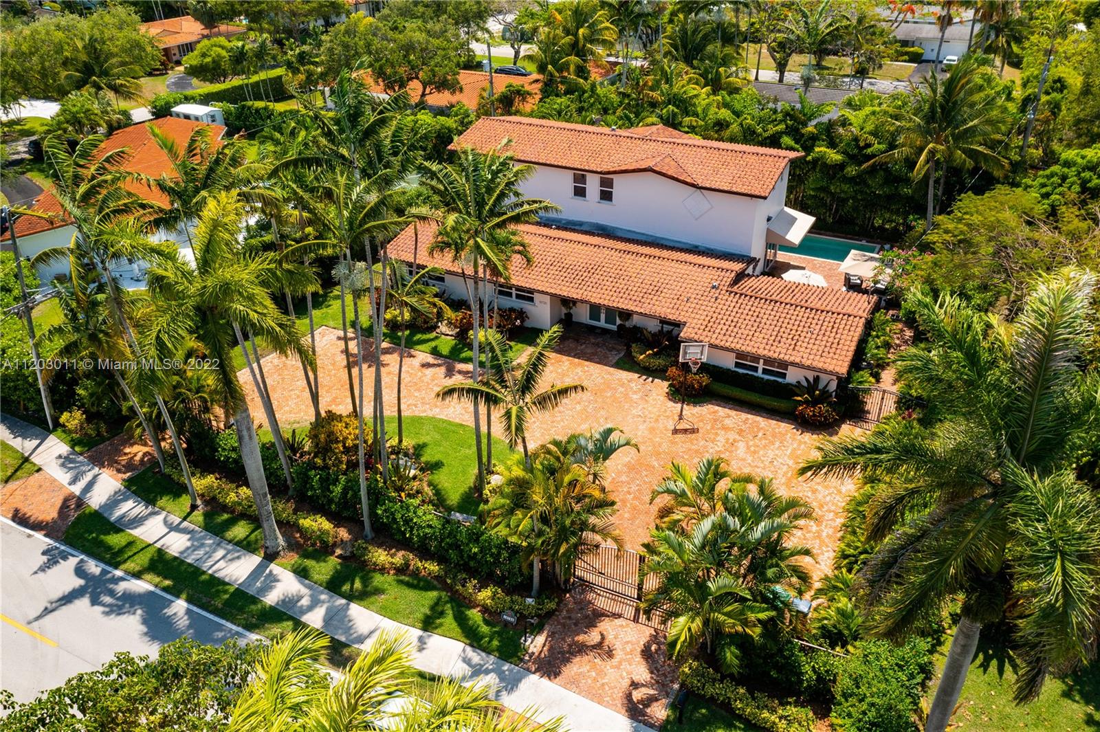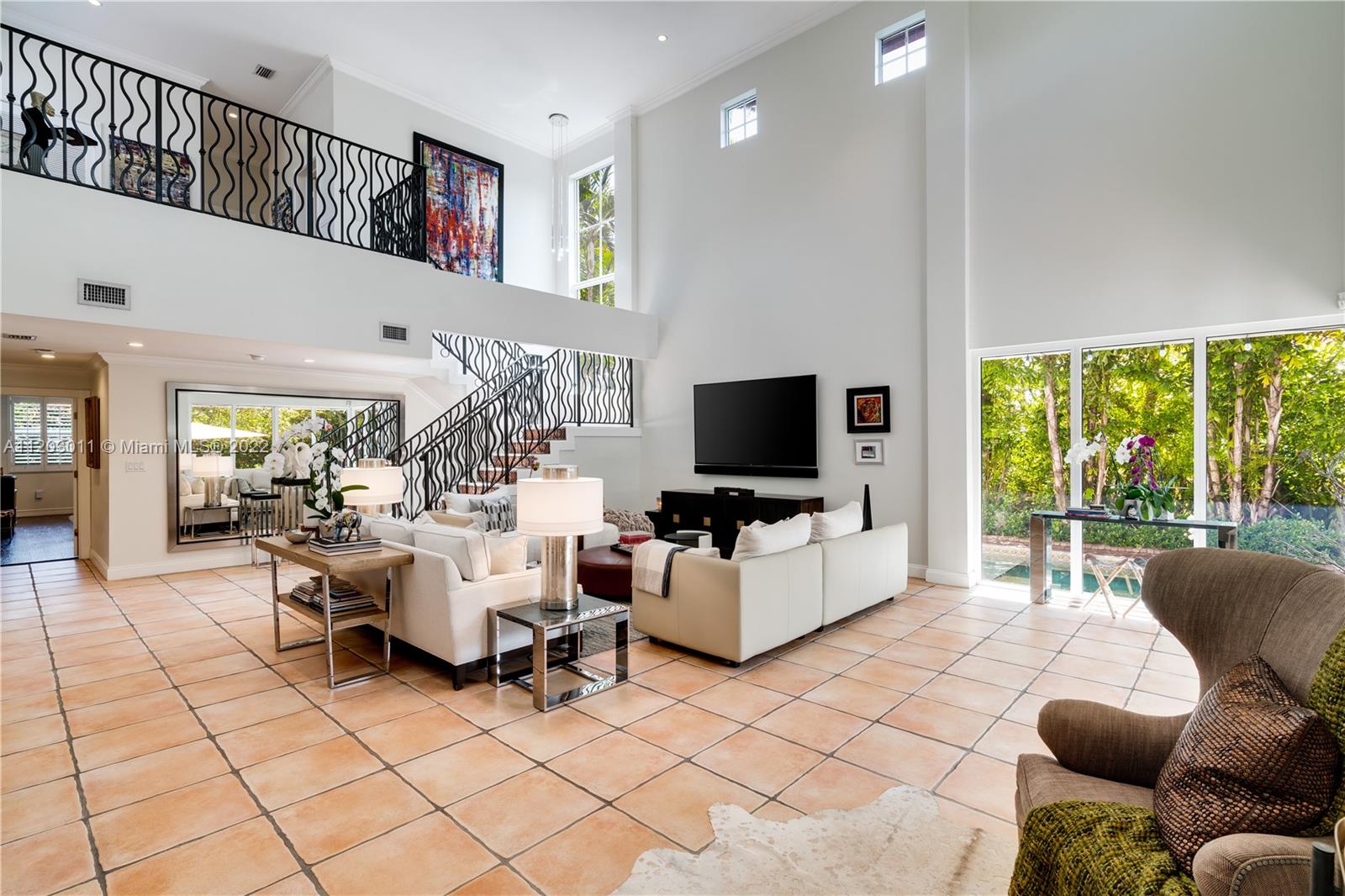 Stunningly remodeled in 2008, what a gorgeous six bedroom, two-story home this is! From the moment you step through the door, you sense the beautiful balance of elegance and space. The bright kitchen is anchored by a large island and bookended by a family room and dining room. A dramatic two-story living room, surrounded by panes of glass overlooks a lush, private pool and garden, an outdoors where all you can say is “wow.” The large primary suite includes a sitting area, spacious walk-in closet, and spa-like bath. This home has a tri-split floor plan…two bdrms upstairs, 4 bdrms downstairs split into two separate wings. 4,587 square feet under air, completely protected by impact glass. The sprawling brick driveway with double electric gates allows for ample parking. A Very Special Home.