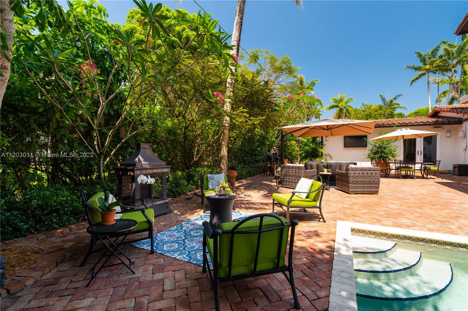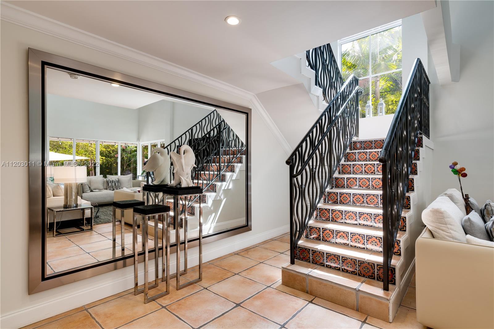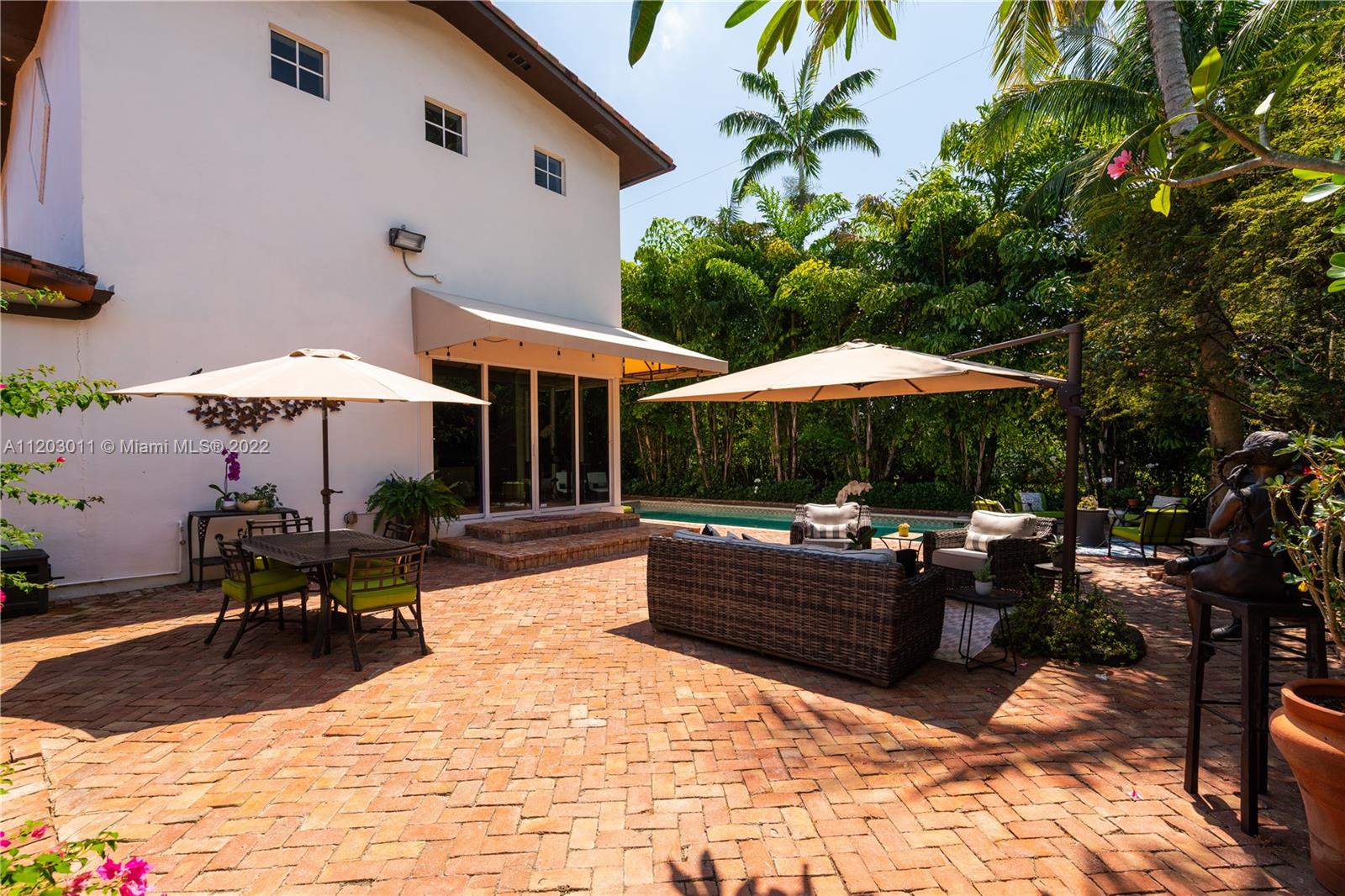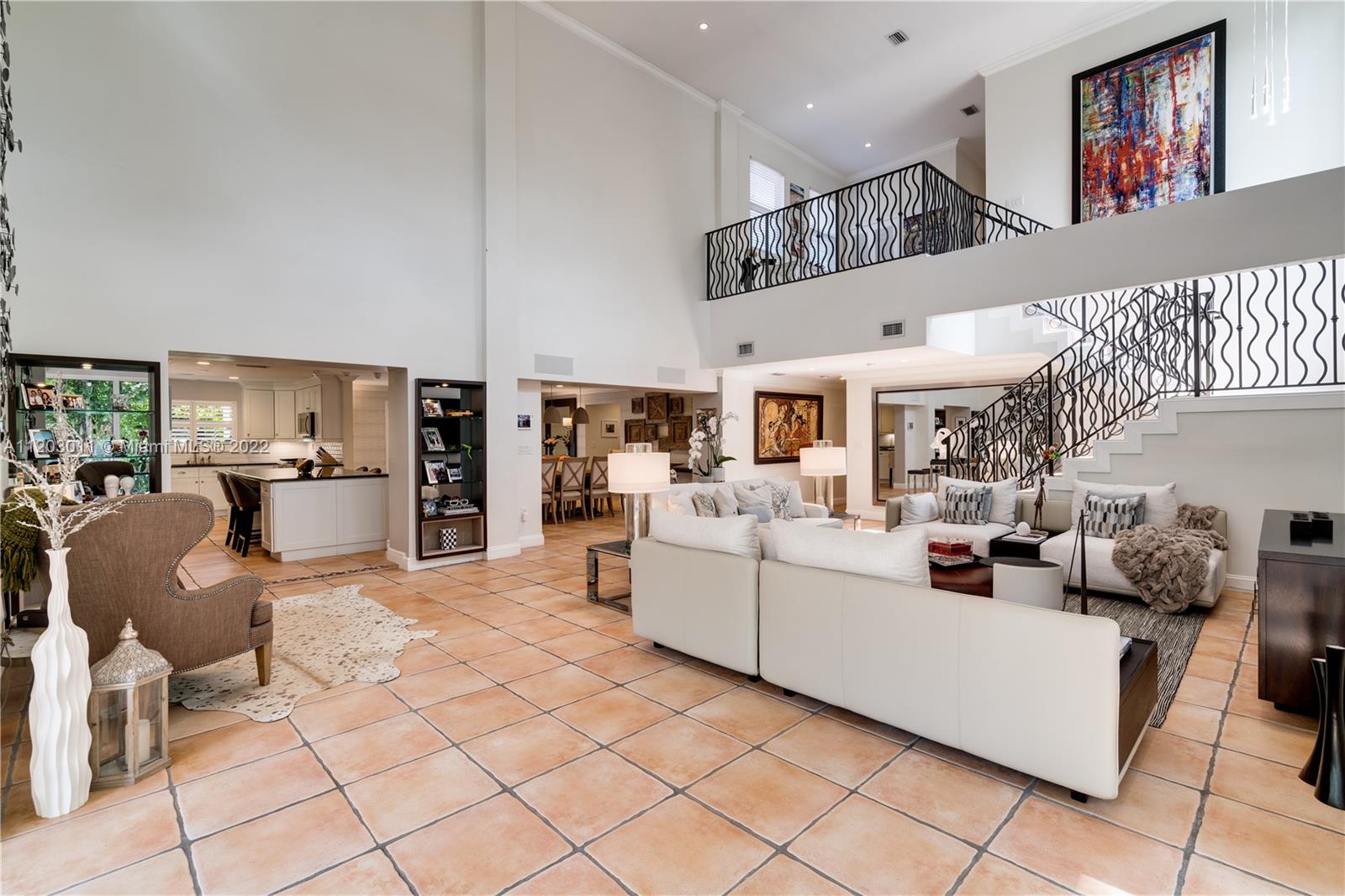 Stunningly remodeled in 2008, what a gorgeous six bedroom, two-story home this is! From the moment you step through the door, you sense the beautiful balance of elegance and space. The bright kitchen is anchored by a large island and bookended by a family room and dining room. A dramatic two-story living room, surrounded by panes of glass overlooks a lush, private pool and garden, an outdoors where all you can say is “wow.” The large primary suite includes a sitting area, spacious walk-in closet, and spa-like bath. This home has a tri-split floor plan…two bdrms upstairs, 4 bdrms downstairs split into two separate wings. 4,587 square feet under air, completely protected by impact glass. The sprawling brick driveway with double electric gates allows for ample parking. A Very Special Home.