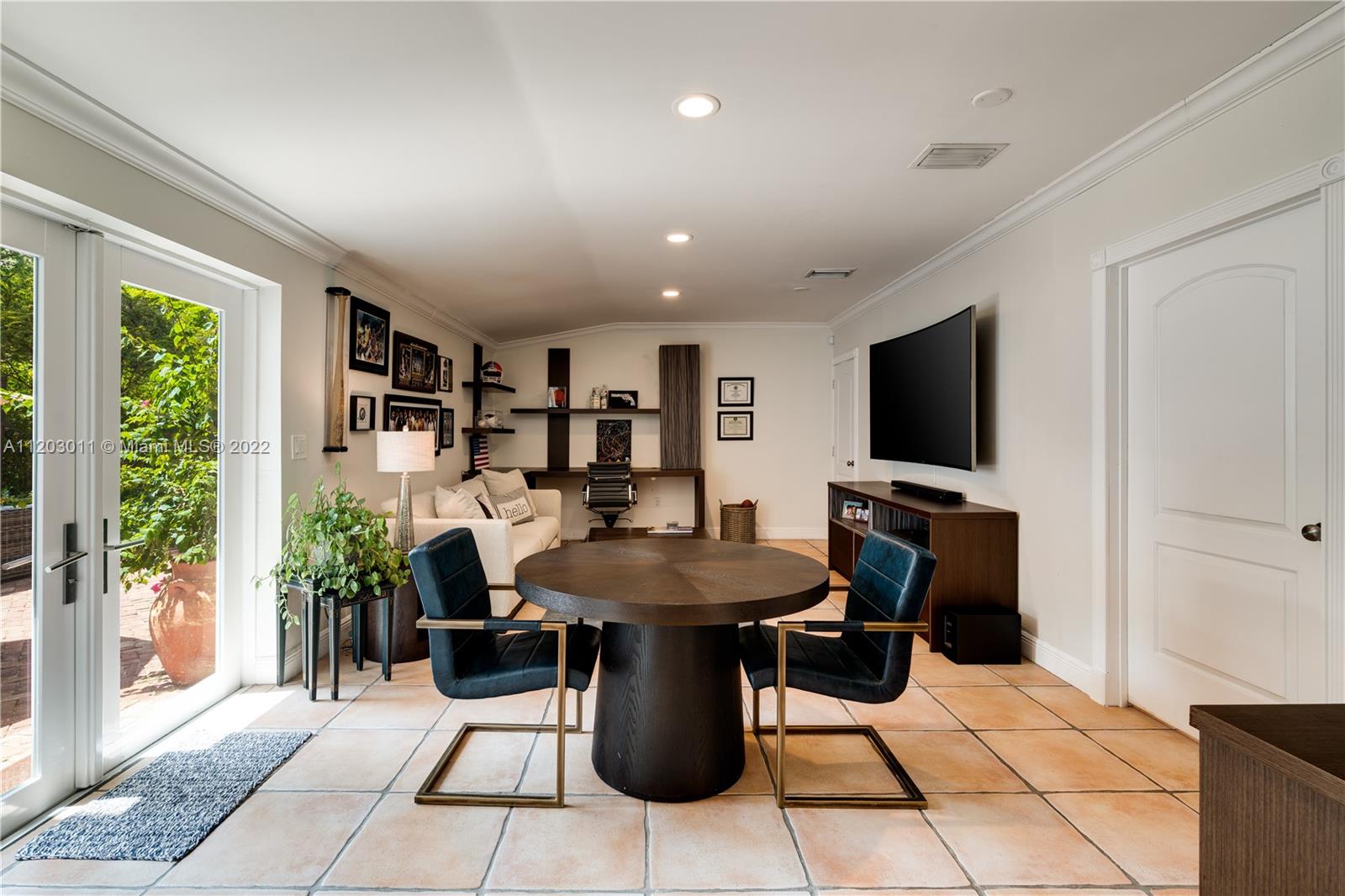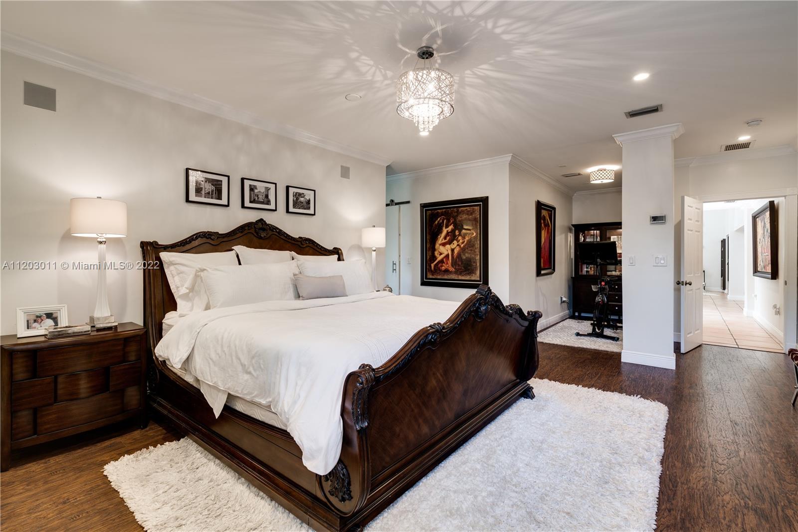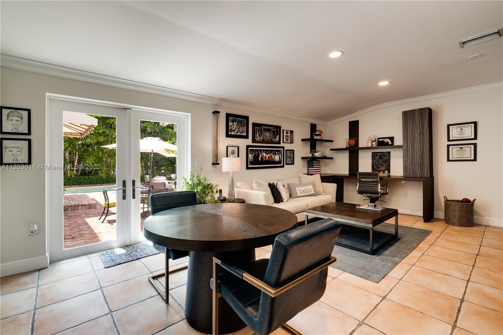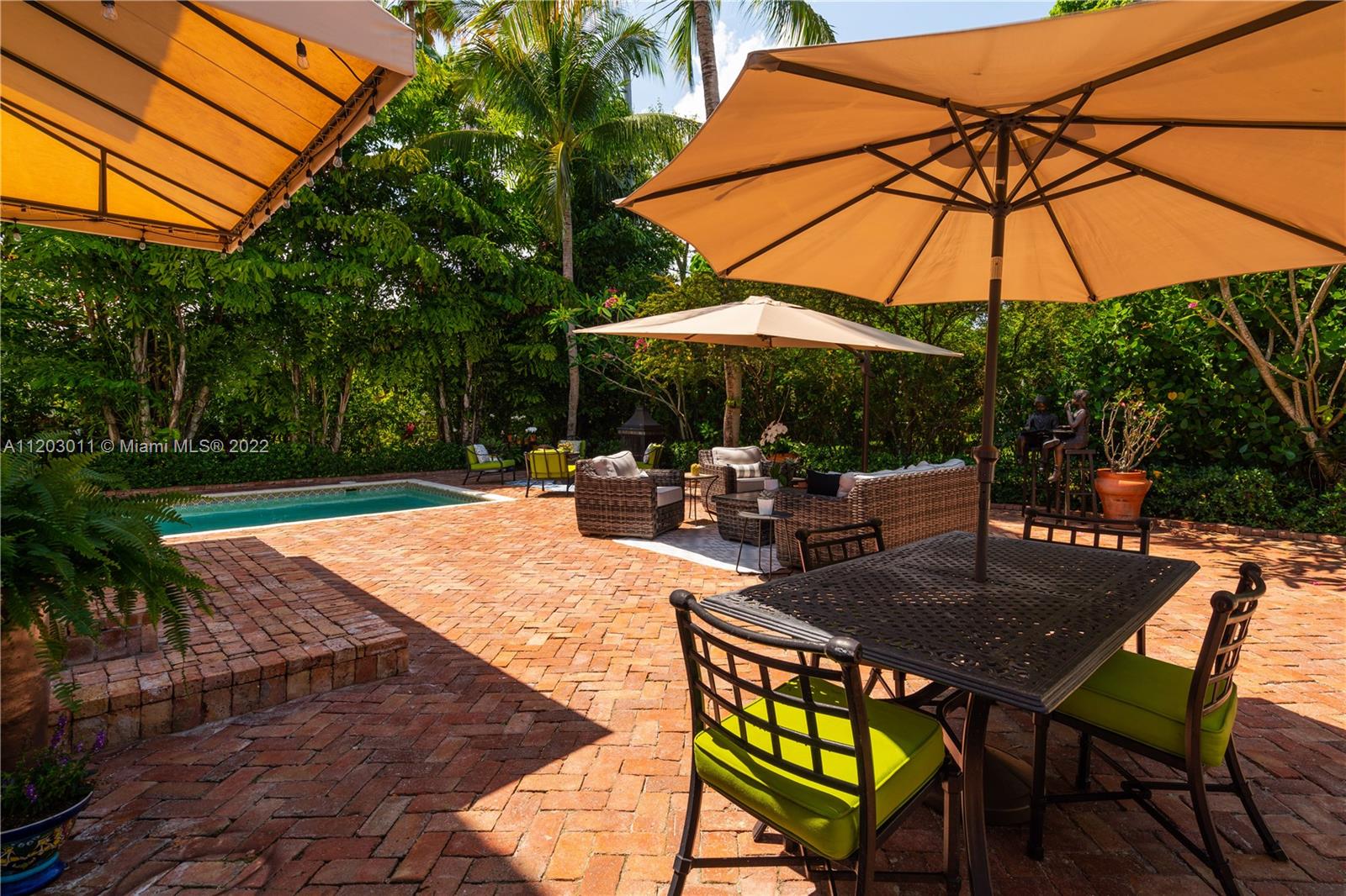 Stunningly remodeled in 2008, what a gorgeous six bedroom, two-story home this is! From the moment you step through the door, you sense the beautiful balance of elegance and space. The bright kitchen is anchored by a large island and bookended by a family room and dining room. A dramatic two-story living room, surrounded by panes of glass overlooks a lush, private pool and garden, an outdoors where all you can say is “wow.” The large primary suite includes a sitting area, spacious walk-in closet, and spa-like bath. This home has a tri-split floor plan…two bdrms upstairs, 4 bdrms downstairs split into two separate wings. 4,587 square feet under air, completely protected by impact glass. The sprawling brick driveway with double electric gates allows for ample parking. A Very Special Home.