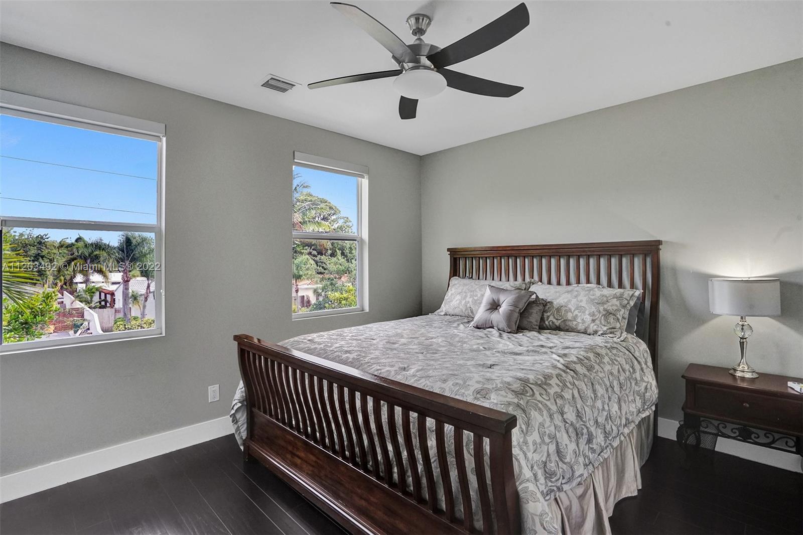 Beautiful townhouse in Croissant Park, Fort Lauderdale, over 2,500 sqft! Oversized 1.5-car garage provides space for a home gym, storage + vehicle. Large bedrooms, walk-in closets, bonus loft with wetbar, which can easily be converted to an office or 4th bedroom. Spacious fenced yard, room for pool or spa. Second level and staircase covered with opulent espresso hardwood. Property boasts high ceilings, custom-built closets installed throughout, and open floor plan, ideal for entertaining. Kitchen features huge island with luxurious quartz countertops, ample storage, & large walk-in pantry. Primary suite offers a spa-like bath with a separate oversized soaker tub and a private huge balcony. Whole Foods, restaurants & shops in neighborhood. Minutes from the beach, Las Olas & FLL Airport.