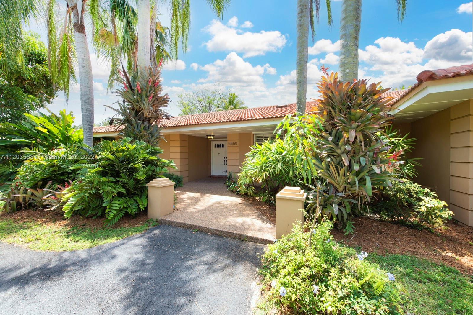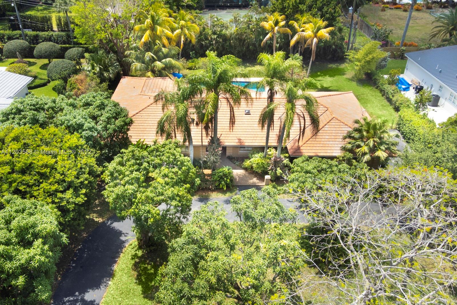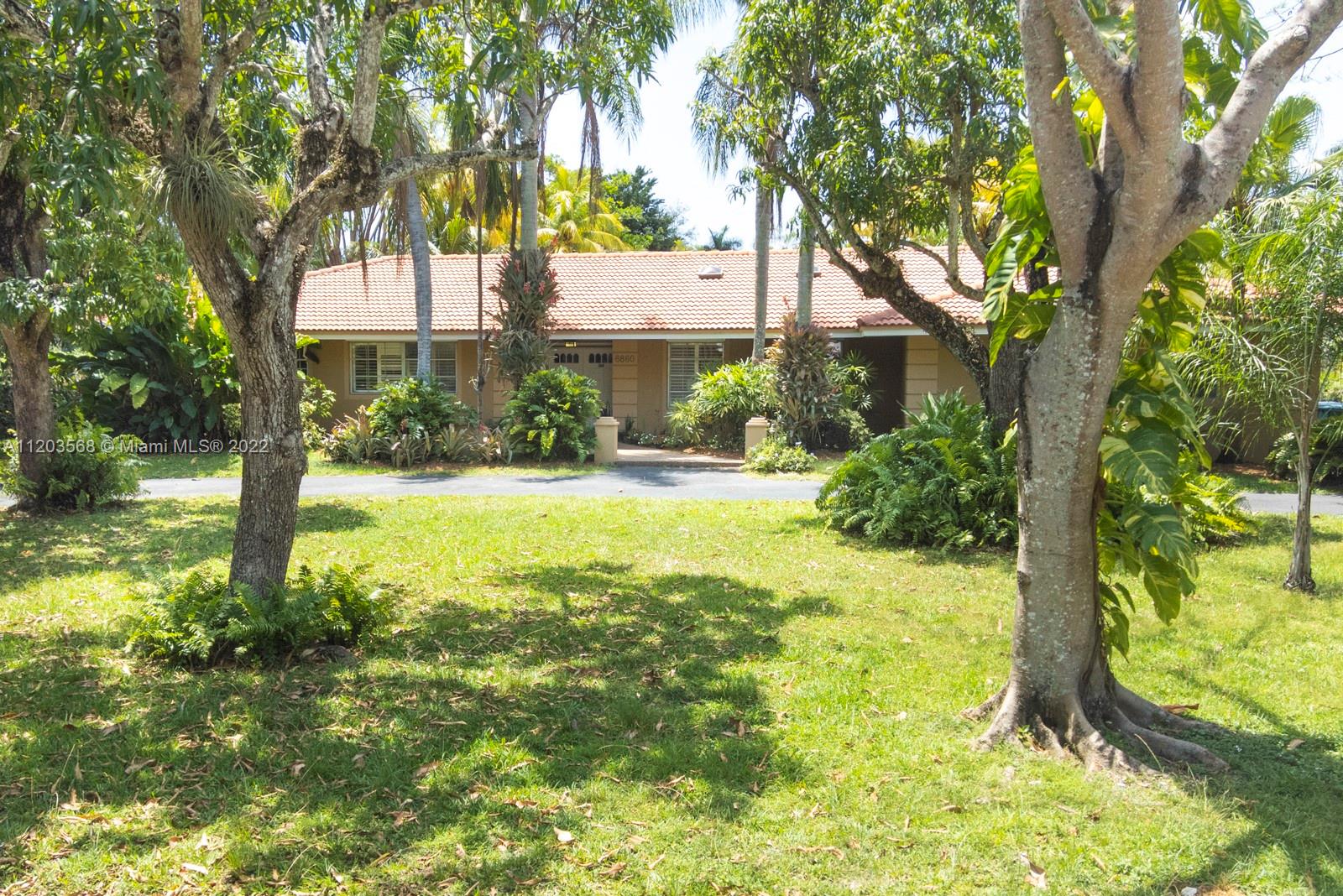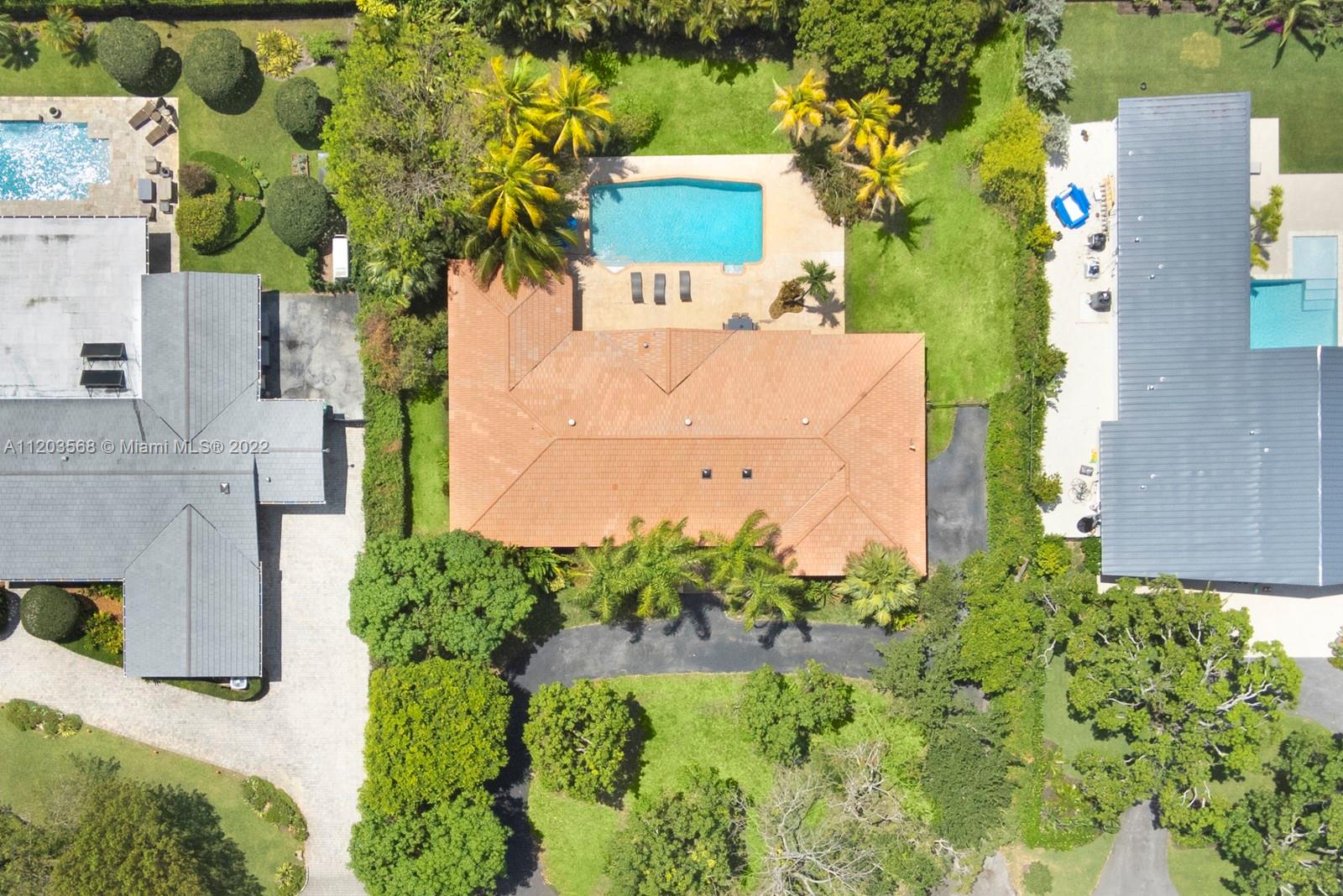Sought after and rarely found 5-bedroom family home on an oversized half acre lot on quiet no traffic North Pinecrest street. Split plan, tile roof, enlarged wood kitchen, wood flooring in bedrooms, 2 skylights. Great layout with 2-car garage, deep pool, large cantilevered overhang (no columns) , big yard and privacy. Hurricane shutters throughout (some impact glass windows) , flood zone "x" so no flood insurance required. Pinecrest Elementary.