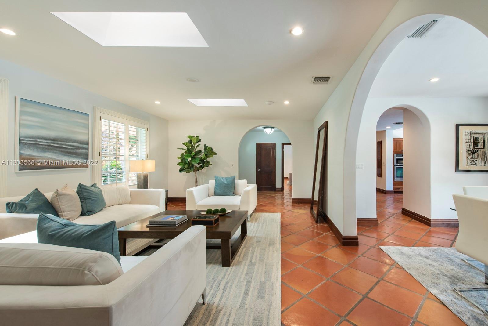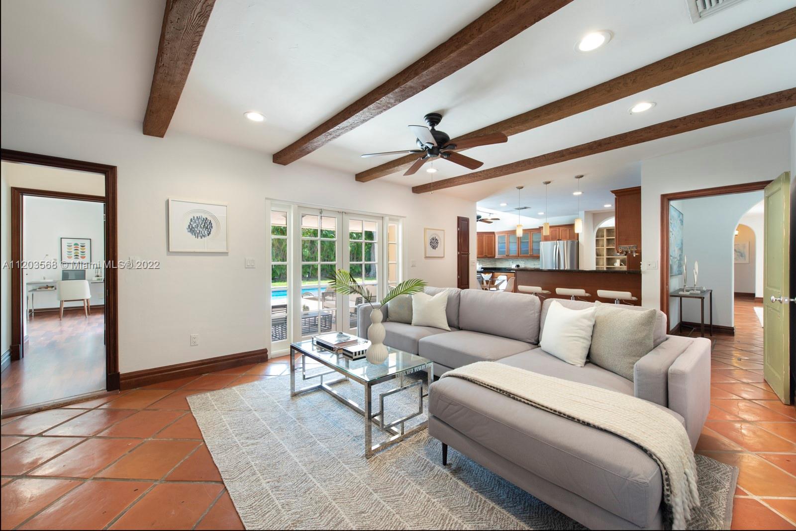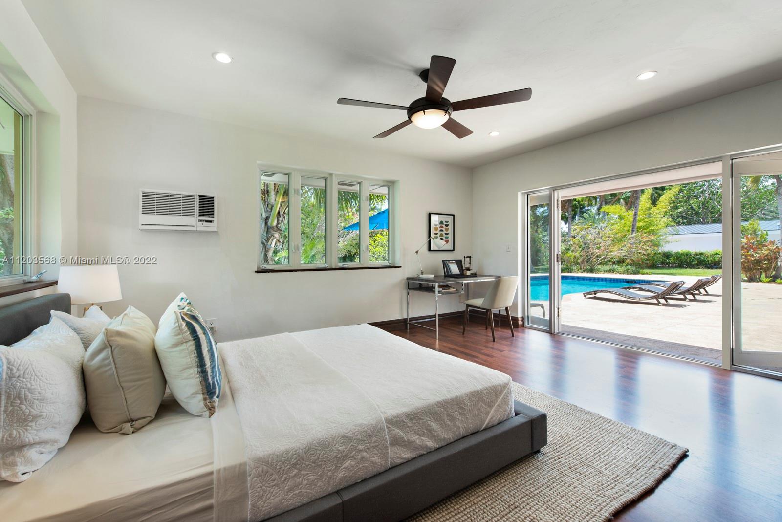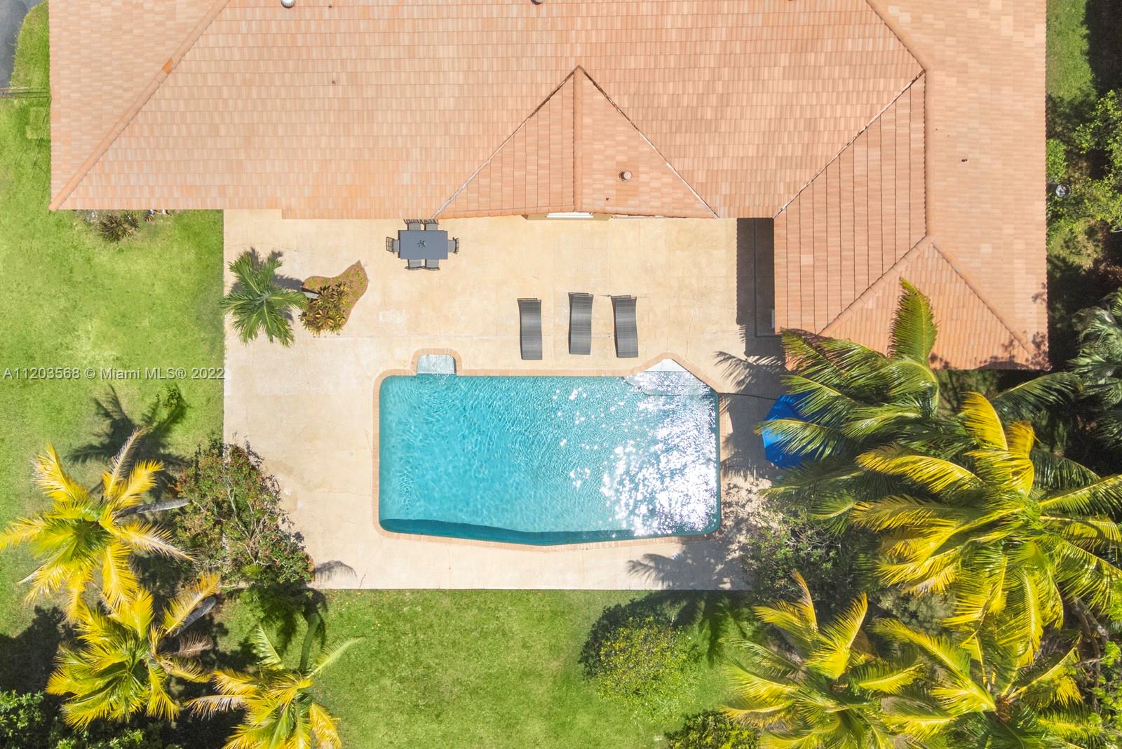 Sought after and rarely found 5-bedroom family home on an oversized half acre lot on quiet no traffic North Pinecrest street. Split plan, tile roof, enlarged wood kitchen, wood flooring in bedrooms, 2 skylights. Great layout with 2-car garage, deep pool, large cantilevered overhang (no columns) , big yard and privacy. Hurricane shutters throughout (some impact glass windows) , flood zone "x" so no flood insurance required. Pinecrest Elementary.