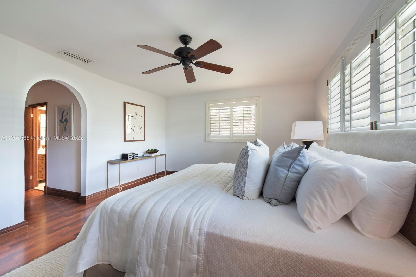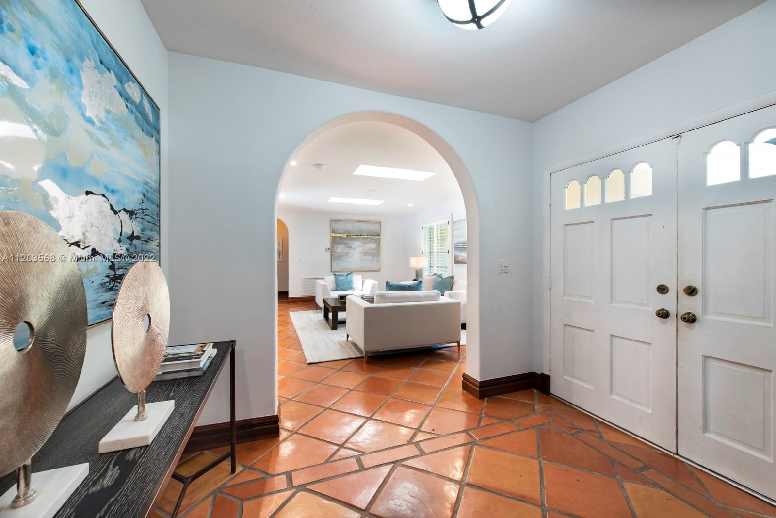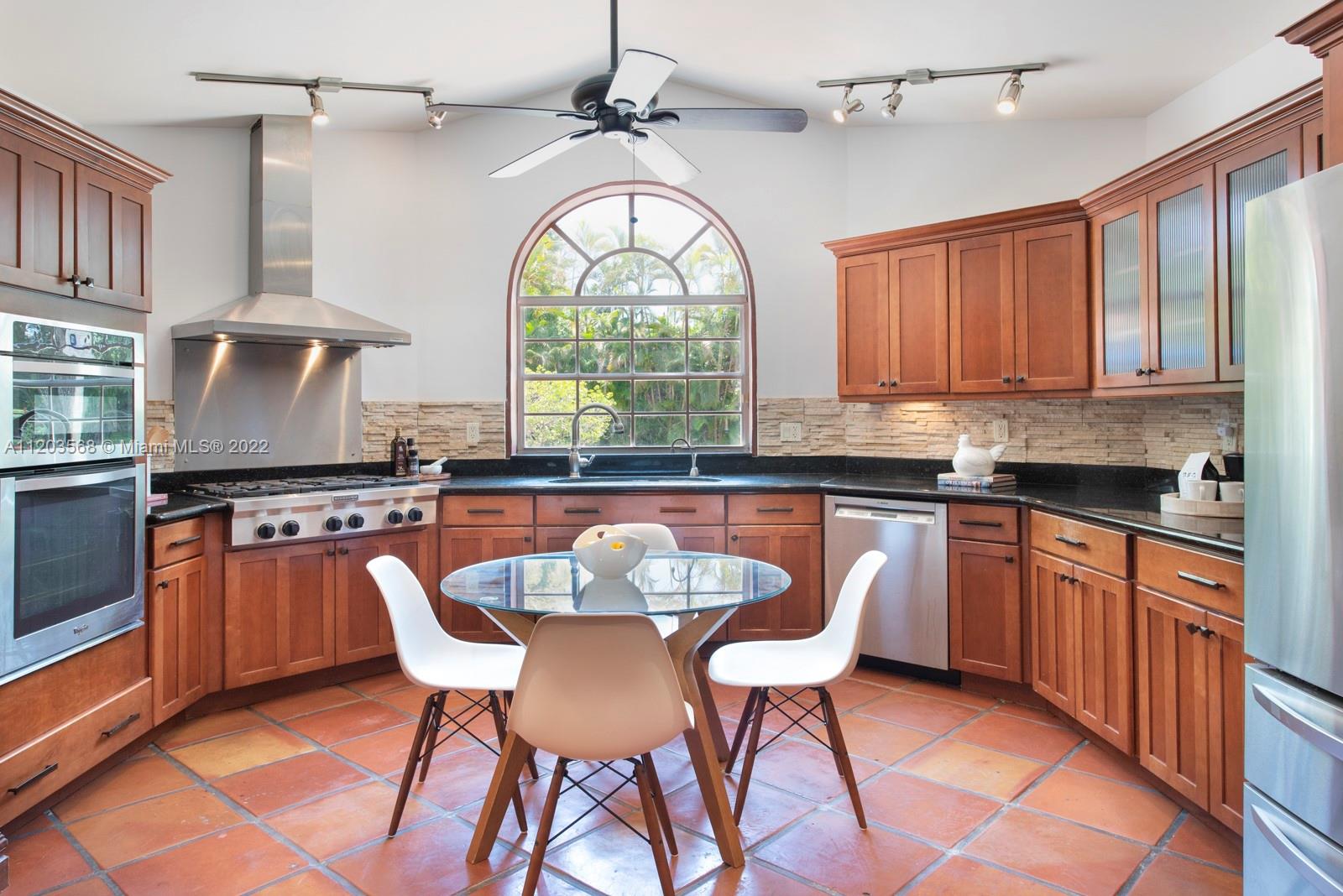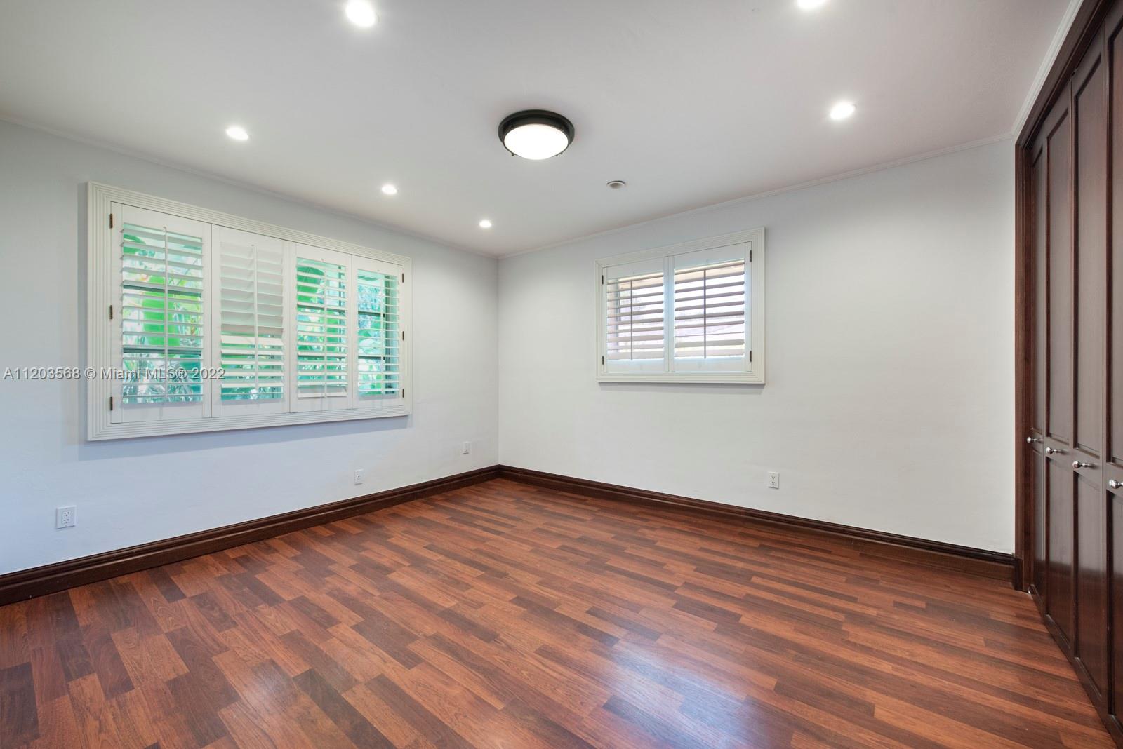 Sought after and rarely found 5-bedroom family home on an oversized half acre lot on quiet no traffic North Pinecrest street. Split plan, tile roof, enlarged wood kitchen, wood flooring in bedrooms, 2 skylights. Great layout with 2-car garage, deep pool, large cantilevered overhang (no columns) , big yard and privacy. Hurricane shutters throughout (some impact glass windows) , flood zone "x" so no flood insurance required. Pinecrest Elementary.