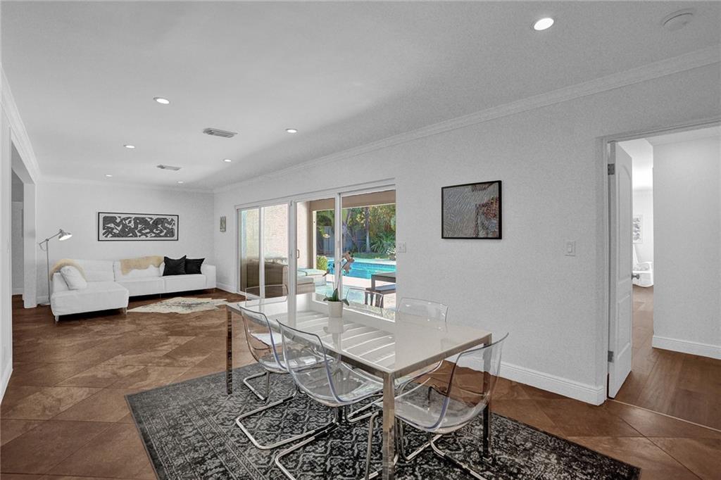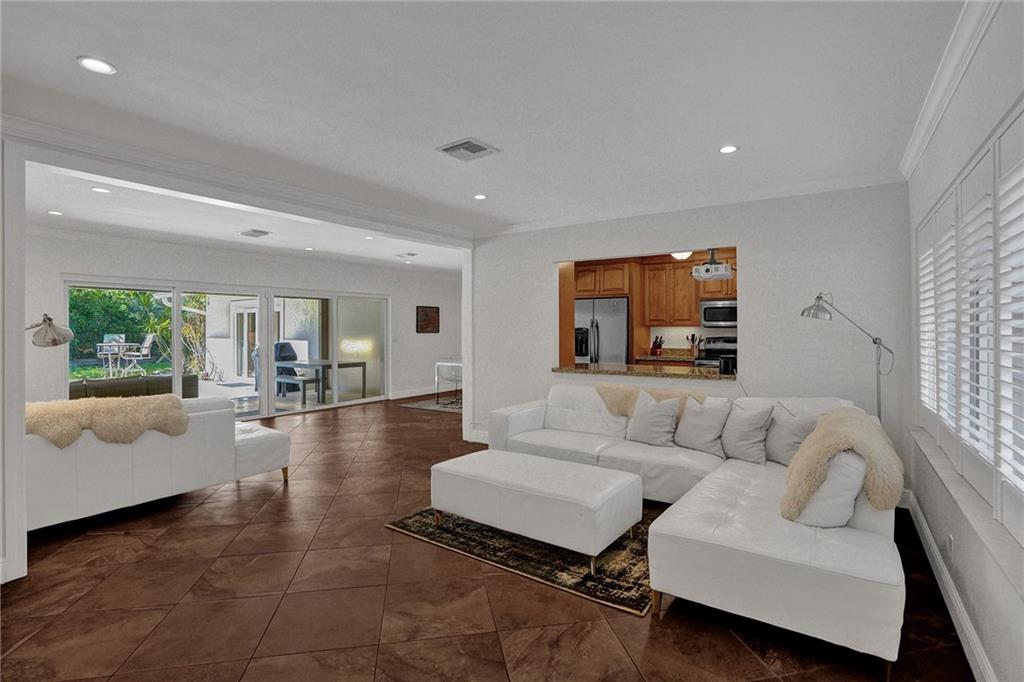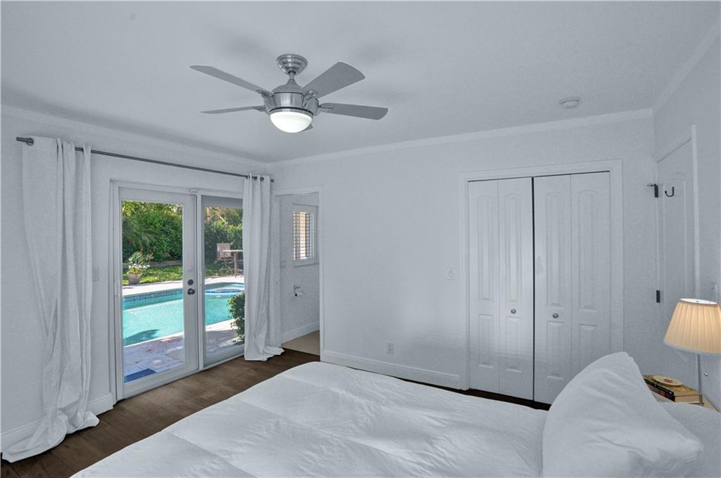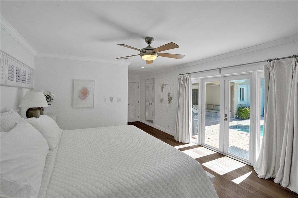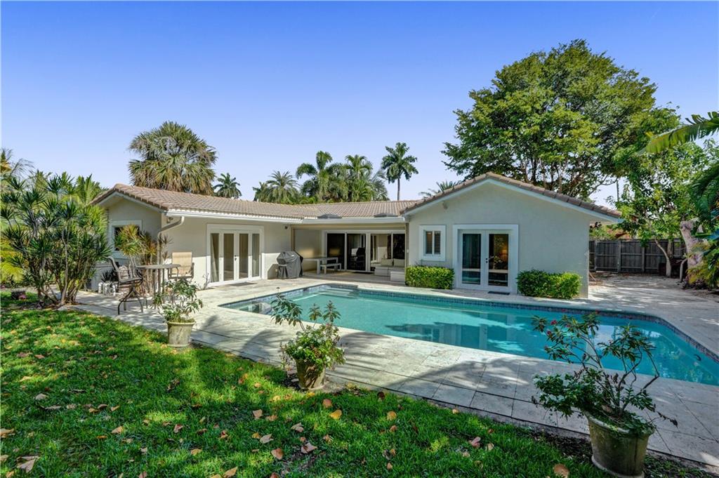 Nestled between the Atlantic Ocean and the Intracoastal, this beautiful and tastefully updated home is located in the sought-after and quiet beach side neighborhood of Dolphin Isles. Spacious open kitchen w/ granite counters and stainless appliances, impact glass throughout, stylish updated bathrooms and a cool combination of tile and wood flooring. Wonderful 3/3 floor plan with dual primary bedroom suites, both offer direct access and views to the oversized and totally private garden that adjoins Birch State park. Relax on your spacious lanai or cool down in the resort style salt water pool and spa. This unique corner lot offers total privacy with no neighbors to the east or to the south and boasts private neighborhood gate access to the park just a few feet away. Bayview school district!