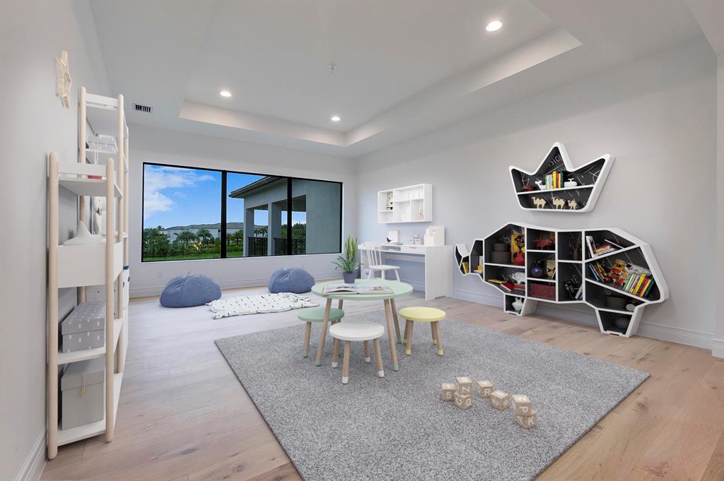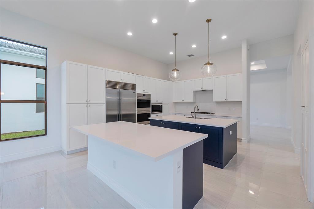 Brand new 2022 Palermo Contemporary spanning over 8,000 square feet in total on an oversized (12,400 sq foot) lakefront premium lot in the highly sought after community of Boca Bridges. This dream home offers the most ideal layout with plenty of living and entertaining space featuring 5 bedrooms, club room (opt. 6th bedroom), media room (opt. 7th BR), loft, TWO laundry rooms and a 4 car garage. Finished with thoughtful details including premium tile flooring throughout the downstairs and wide plank white oak wood flooring upstairs you will fall in love with all that this home has to offer. The upgraded kitchen boasts a double island, wolf and subzero appliances, a coffee/breakfast bar and a walk in pantry. Enjoy the lake view from your kitchen, breakfast