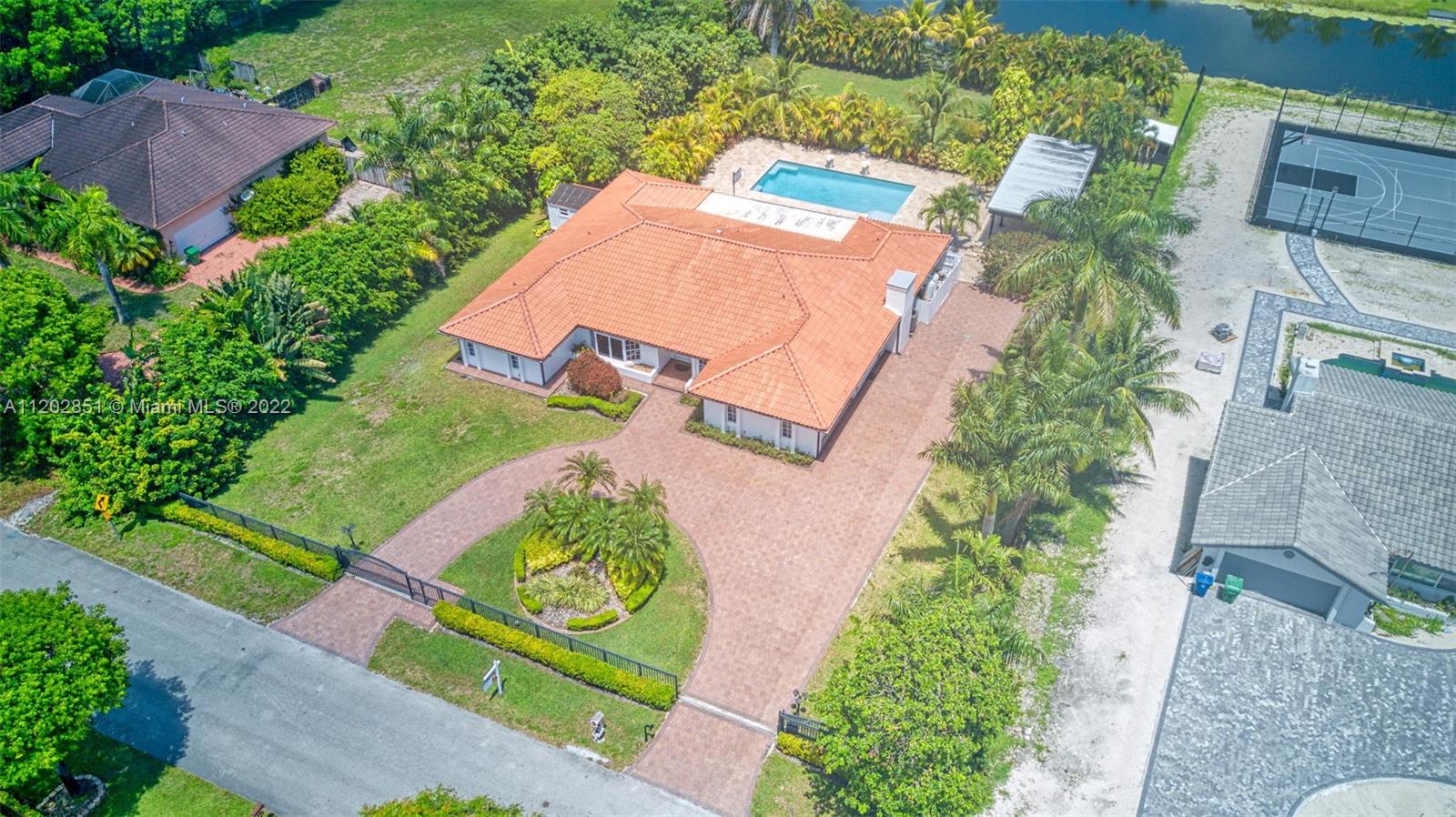 Magnificent opportunity to purchase a true gem in the exclusive community of Country Club Ranches. This house boasts a modern interior design and upgrades, including kitchen, bathrooms and bedrooms. The exquisite large outdoor area that surrounds the modern style pool makes this house perfect for entertainment and to spend quality family time. A large sized pergola makes the perfect complement for social gatherings and relaxation while the waterfront adds freshness to the air. A brand NEW ROOF (2022) offers potential savings on homeowners insurance. The property sits on a 1 ACRE LOT offering a large circular and expanded driveway with Tropical fruit trees and a lush landscaping. All of this in a prime location that combines city and country lifestyles in the proximity of Miami and Broward.