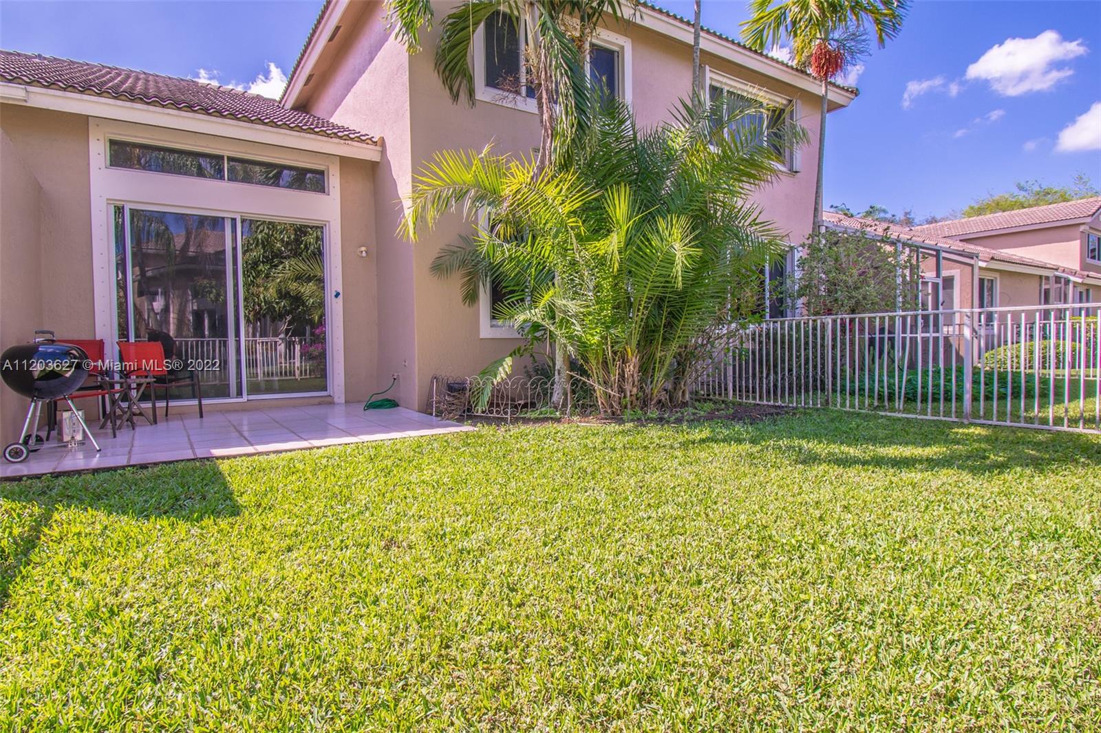 Awesome opportunity in The Courtyards of Grand Palms! Great 3/2.5 family home with 2 car garage & fenced back yard. This bright, spacious home offers newer appliances & a BRAND NEW ROOF (assessment pd in full by Seller). Completely tiled first floor offers generous living space & kitchen as well as both a dining area & space for either breakfast nook or potential office/study nook. All bedrooms upstairs, including large primary bedroom with great closets & en-suite bath. Within the sought after & guard gated community of Grand Palms, The Courtyards subdivision offers a community pool which is an easy walk from this home and there are walking paths throughout the golf course community. Great location near an abundance of shopping & dining options as well as easy access to I75. A must see!