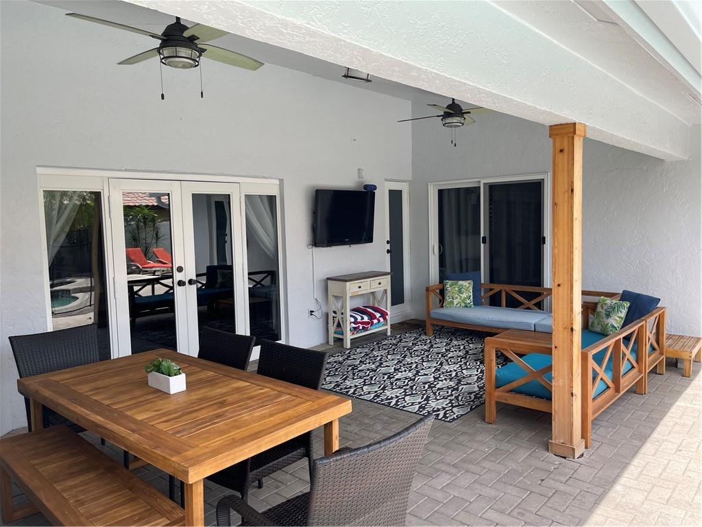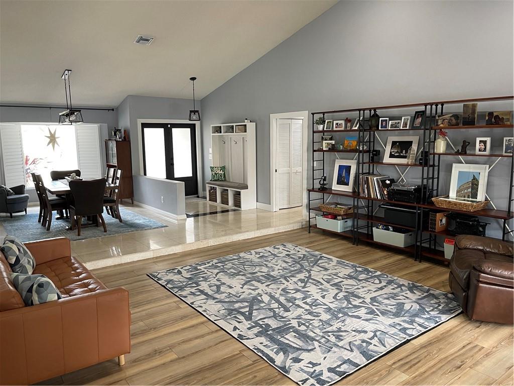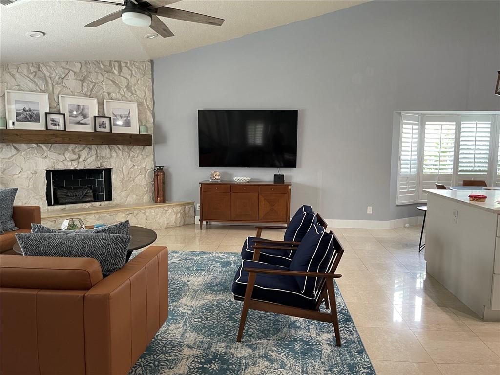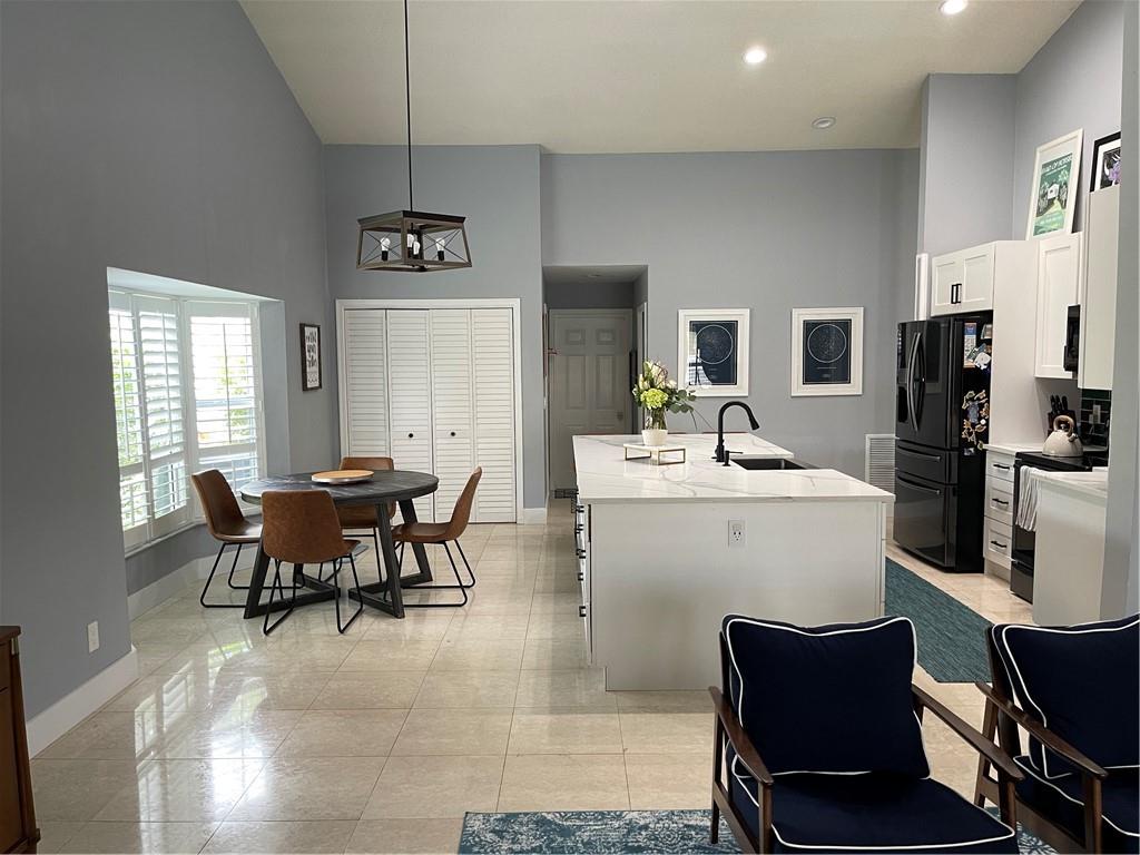 Beautifully remodeled single-family Home situated on an oversized corner lot. Enter into an airy open floor plan with 13 ft volume ceilings and view of sparkling pool and spa. Newly renovated eat-in gourmet kitchen with quartz courter tops and white cabinets. Luxurious marble tile and laminate floors add to contemporary decor. Master bedroom has an en-suite cabana bathroom and 2 ample walk-in closets. All bedrooms have laminate floors. 2nd bath has double sink and opens to patio and pool area. Impact windows and doors; most windows covered with Plantation Shutters. Paver tiles in entry and patio with shaded covered area. New White PVC fence for privacy that obstructs partial lake view. Wonderful central location with easy access to great schools, parks, shopping, restaurants.