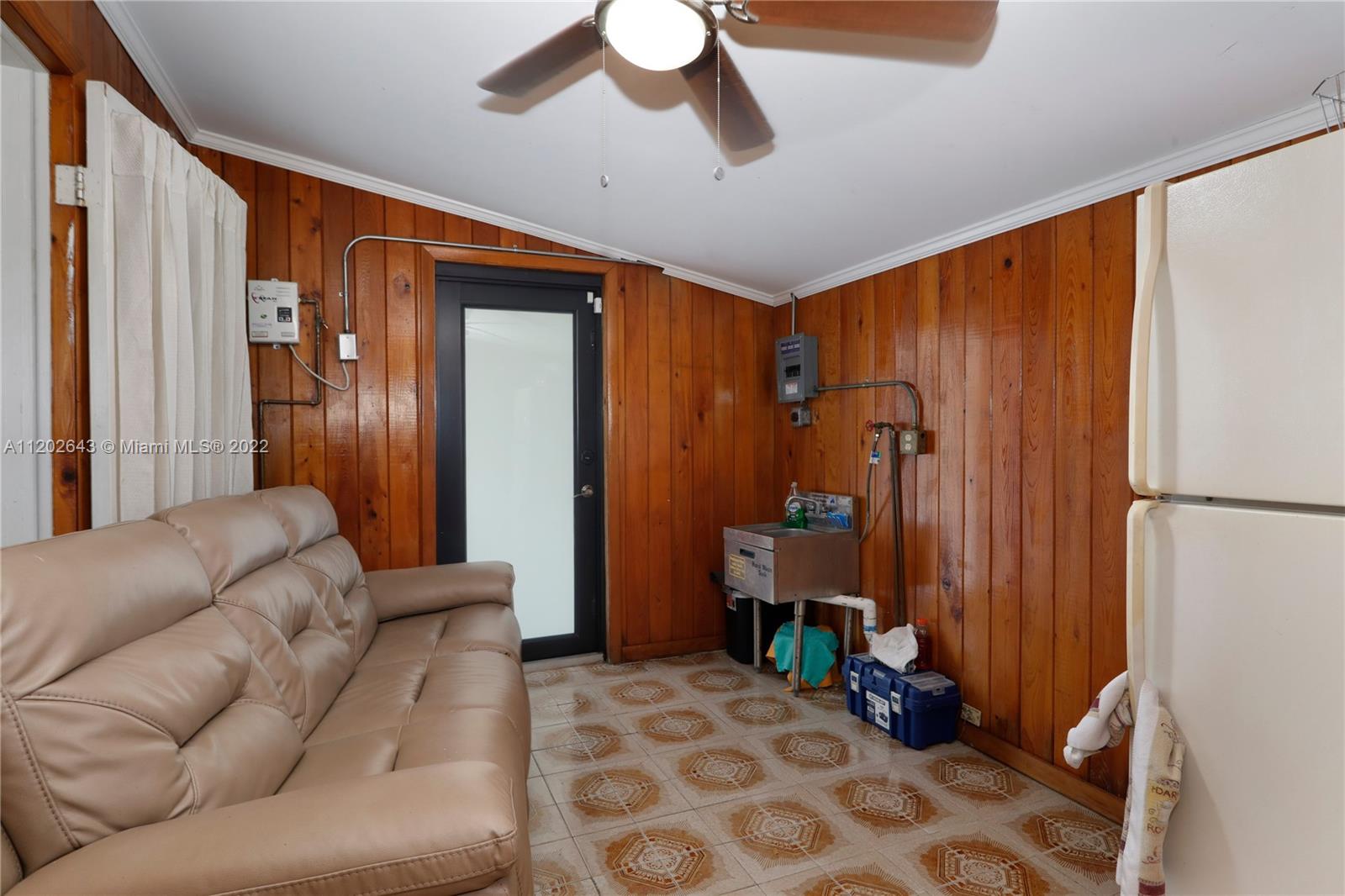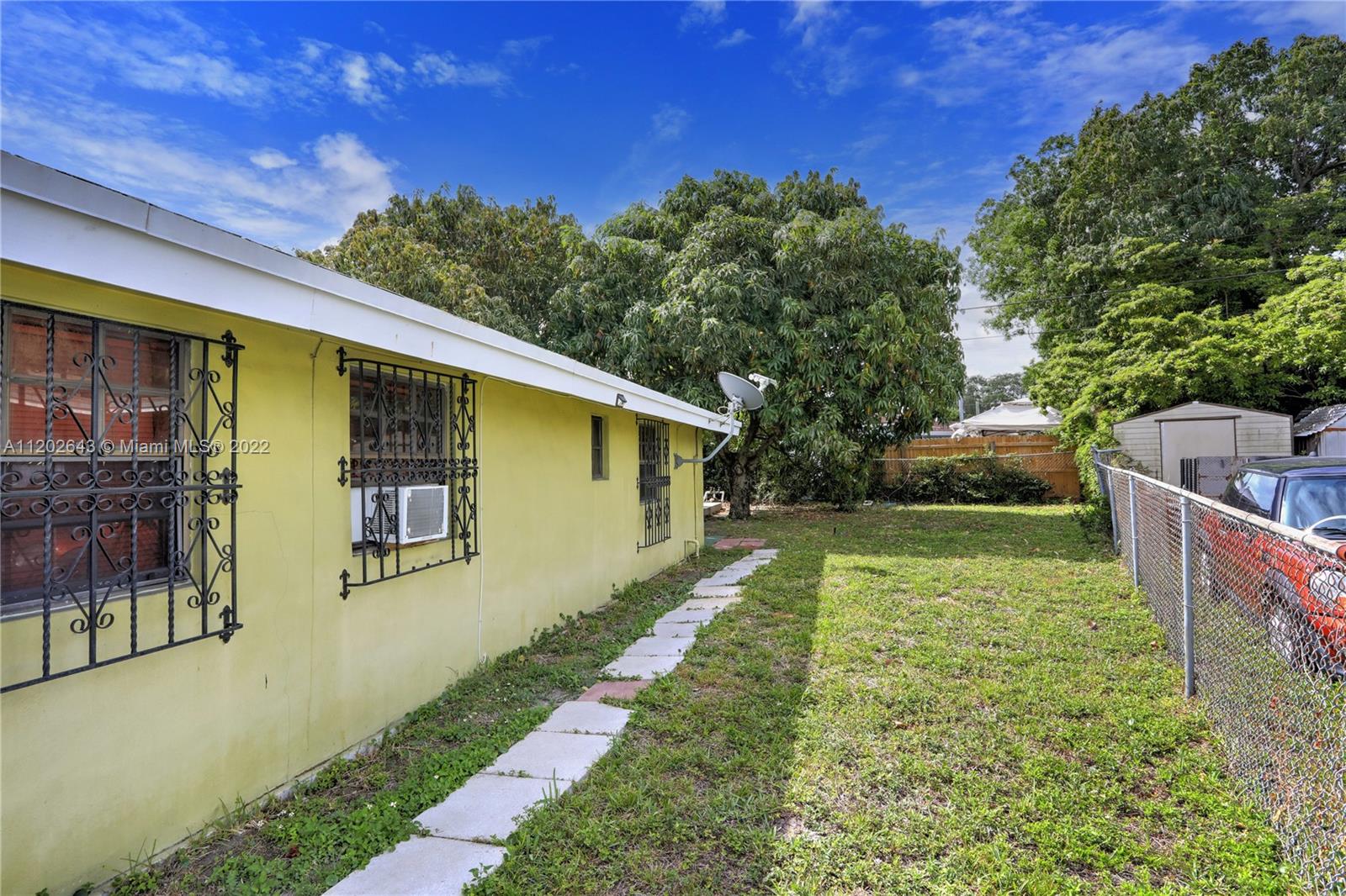 Fantastic Location in SE Hialeah! This 2 Bedroom & 2 Bath home with 2 bonus rooms one currently used as a Den & the other an oversized large laundry/utility room. This property has lots of potential and is located minutes to Miami International Airport, major expressways, and area restaurants and shopping. Open kitchen, newer central AC (Hi efficiency Rheem) newer titan water heater, large concrete patio, 2 storage sheds, 2 mango trees. Property will need some TLC. Home is owner occupied and showings are by appointment only.