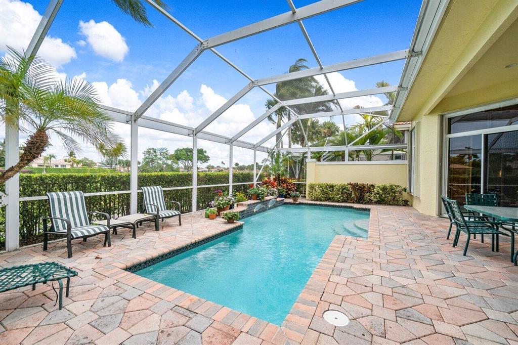 Membership prices increase JULY 1st by $25,000! Great opportunity to own a 3 bedroom, 3 bath single family home with a pool and 2.5 car garage! The most popular model in Falcon Green, this layout offers an open concept living space. High ceilings, crown moldings, updated kitchen, neutral window treatments, lots of closet space. Newer roof (2015) and accordion hurricane shutters! Lovely, screened patio area, pool with fountains, and a beautiful golf/water view! Eastern exposure! 2.5 car garage with new epoxy flooring. Come live the Ibis lifestyle!