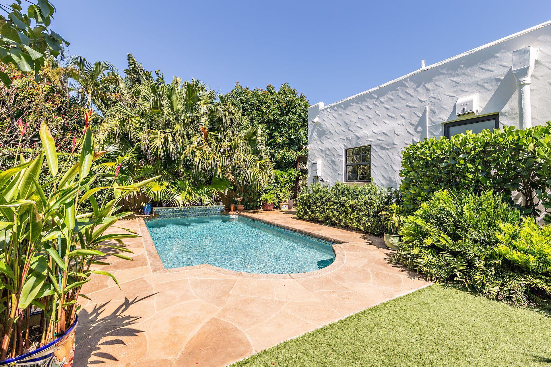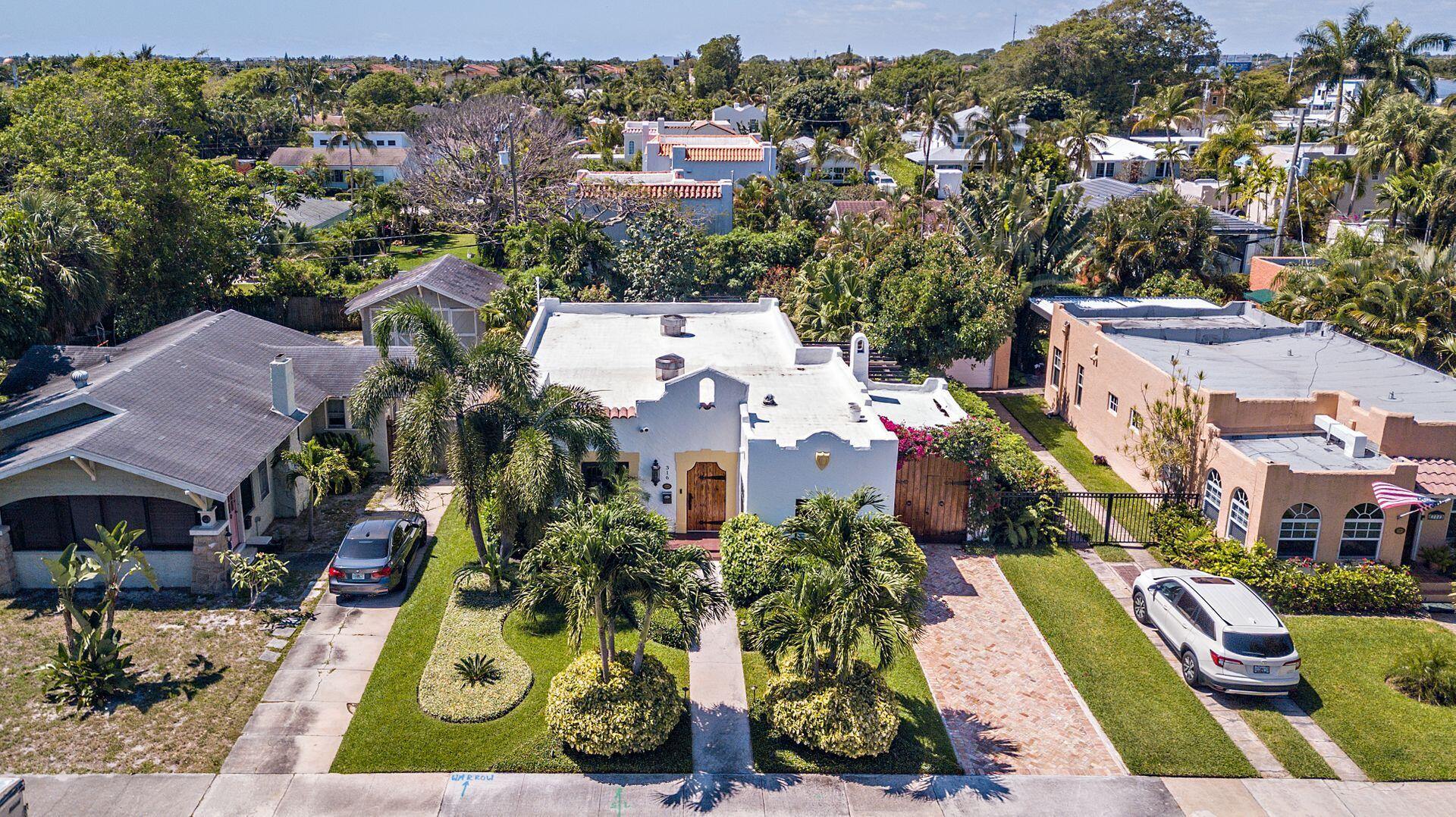 Located in Southland Park, (north of Southern Blvd), rests this charming completely renovated and redesigned Spanish mission home. Boasting 1,810 sq ft with 3 bedrooms and 2 bathrooms this home is move-in-ready and is equipped with every modern amenity one could imagine. Featuring full impact rated windows and doors (excluding the historic pecky cypress front door), an oversized private master bathroom with a new large shower and double sinks, full-sized washer & dryer, a 2022 total home generator, engineered tongue and groove hardwood floors throughout, plantation shutters, tankless hot water heater, a new massive kitchen island and a tranquil lush backyard with private swimming pool, covered eating area with new awning and much more. Close to area beaches, Flagler Drive bike path, I-95