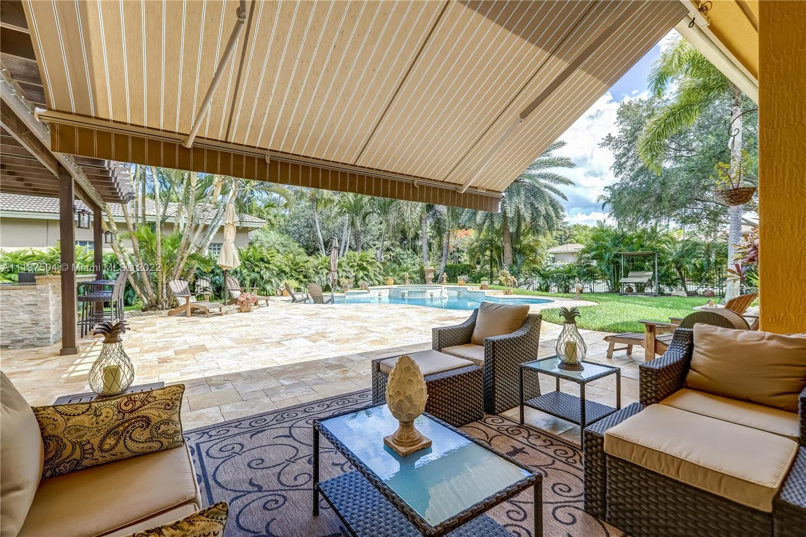 Come home to your tropical entertainers paradise in Lago Plantation one of Plantation's hidden gems with only 18 homes, Soaring volume ceilings throughout each & every room. Open floor plan featuring tile flooring in main living areas & master bedroom, & hardwood floors in the secondary bedrooms. Large master suite featuring double trey ceilings, dual walk-in closets, & grand master bath with marble floors, spa soaking tub & separate shower. Big secondary bedrooms with hardwood flooring. Kitchen features granite counters, wood cabinets, & s/s appliances that overlook the expansive family room. Amazing heated saltwater pool/spa surrounded by travertine pavers, lush landscaping, & beautiful summer kitchen. Whole house generator, impact windows/accordion shutters, & the list goes on