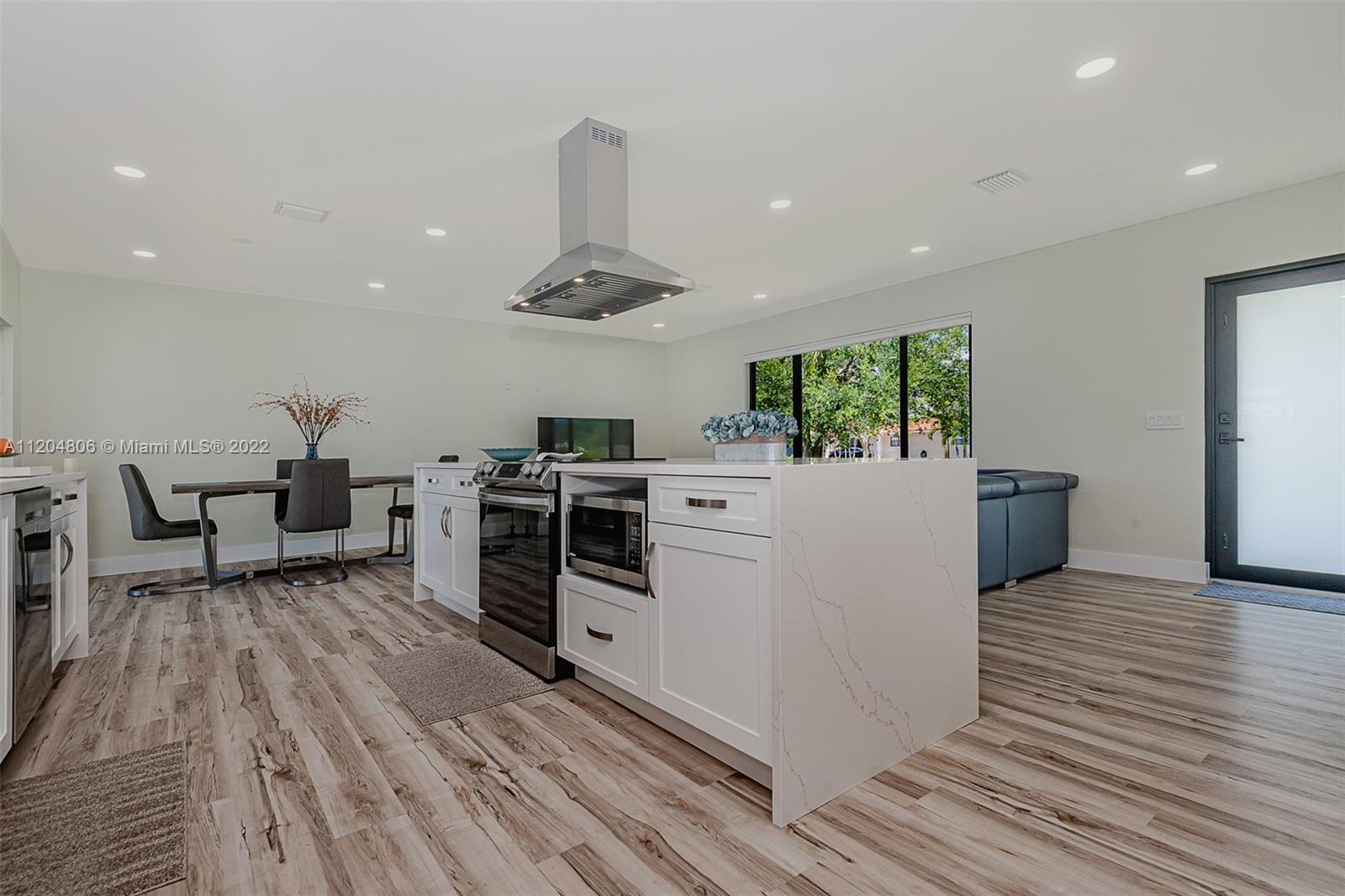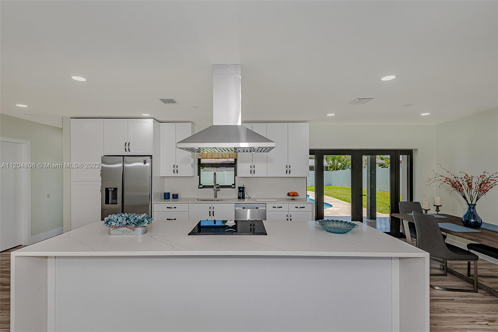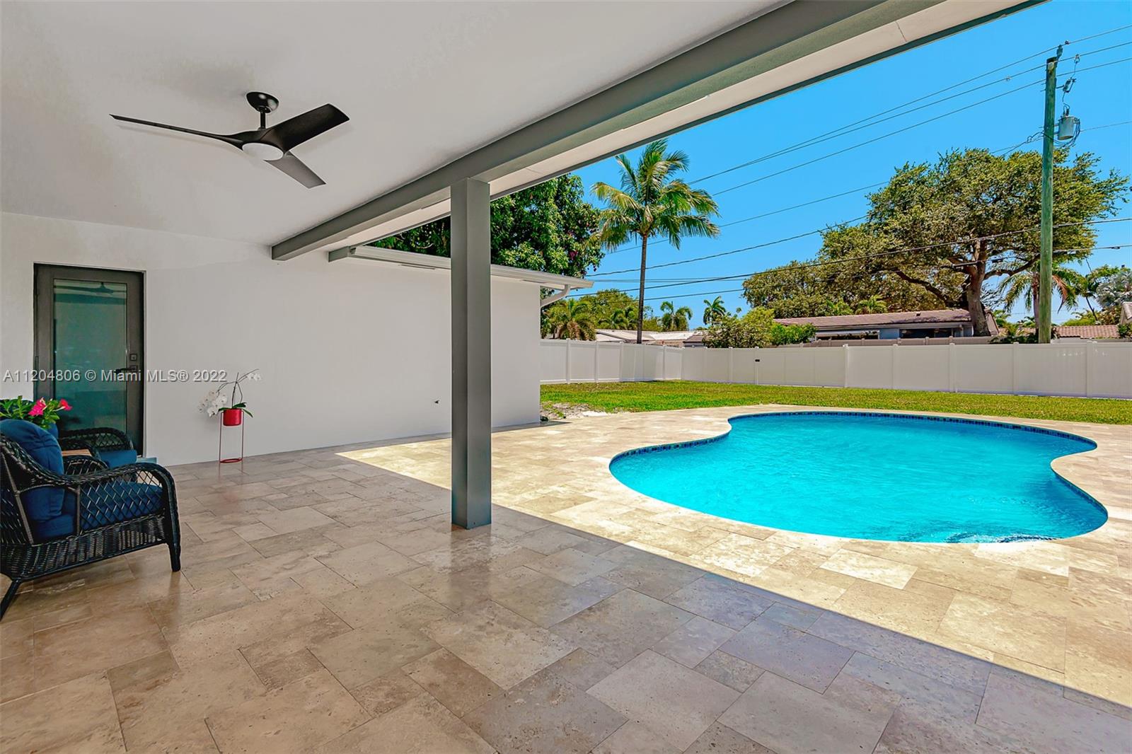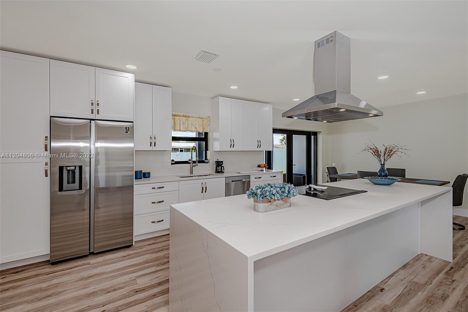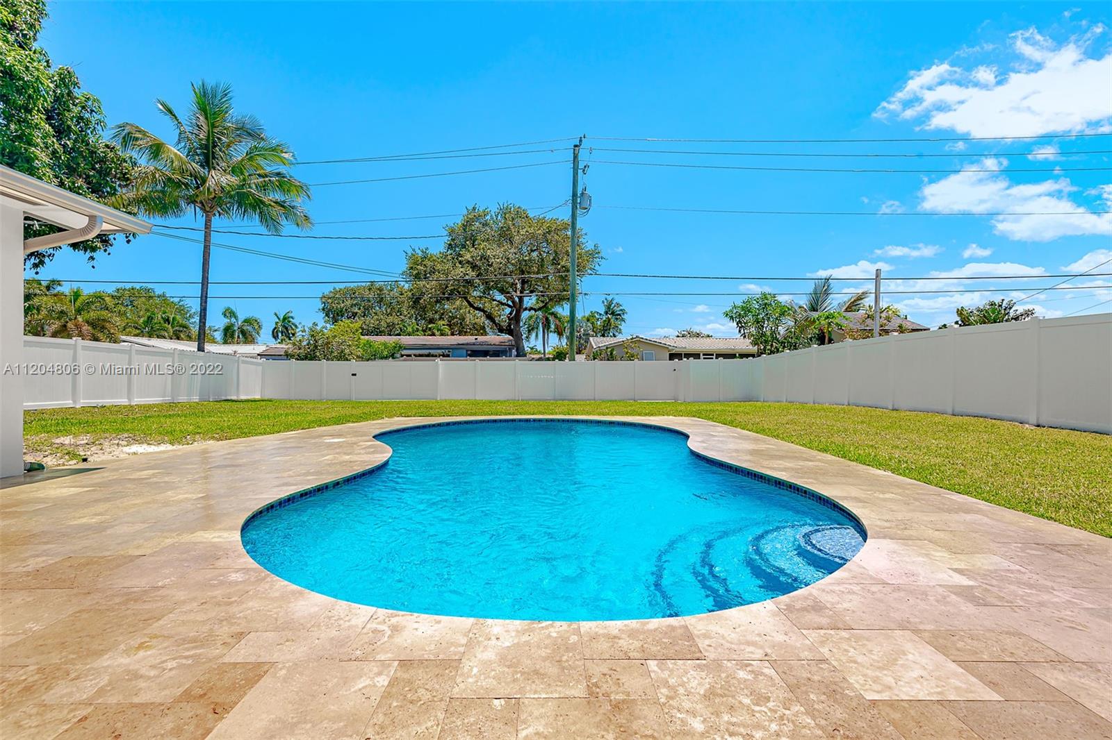 Fully remodeled Hills 3/3 gem on oversized fenced lot with stunning pool. All new with high impact windows and doors, new plumbing including source and drain lines, all new beautiful flooring, full slab quartz counters in kitchen including island and baths. New HVAC system, recessed lighting plus a newly refinished pool complete with gorgeous new sealed French pattern marble pool deck and front entry. Full three bedrooms with ample closets. All new high end stainless appliances including updraft outdoor venting range hood. Solid hardwood cabinets throughout. All new 3rd full bath is cabana, perfect for outdoor family entertaining. New high quality white PVC fencing on oversized lot with double gate from back alley - great for boat or RV access. Adj sq ft is Living sq ft per Seller.